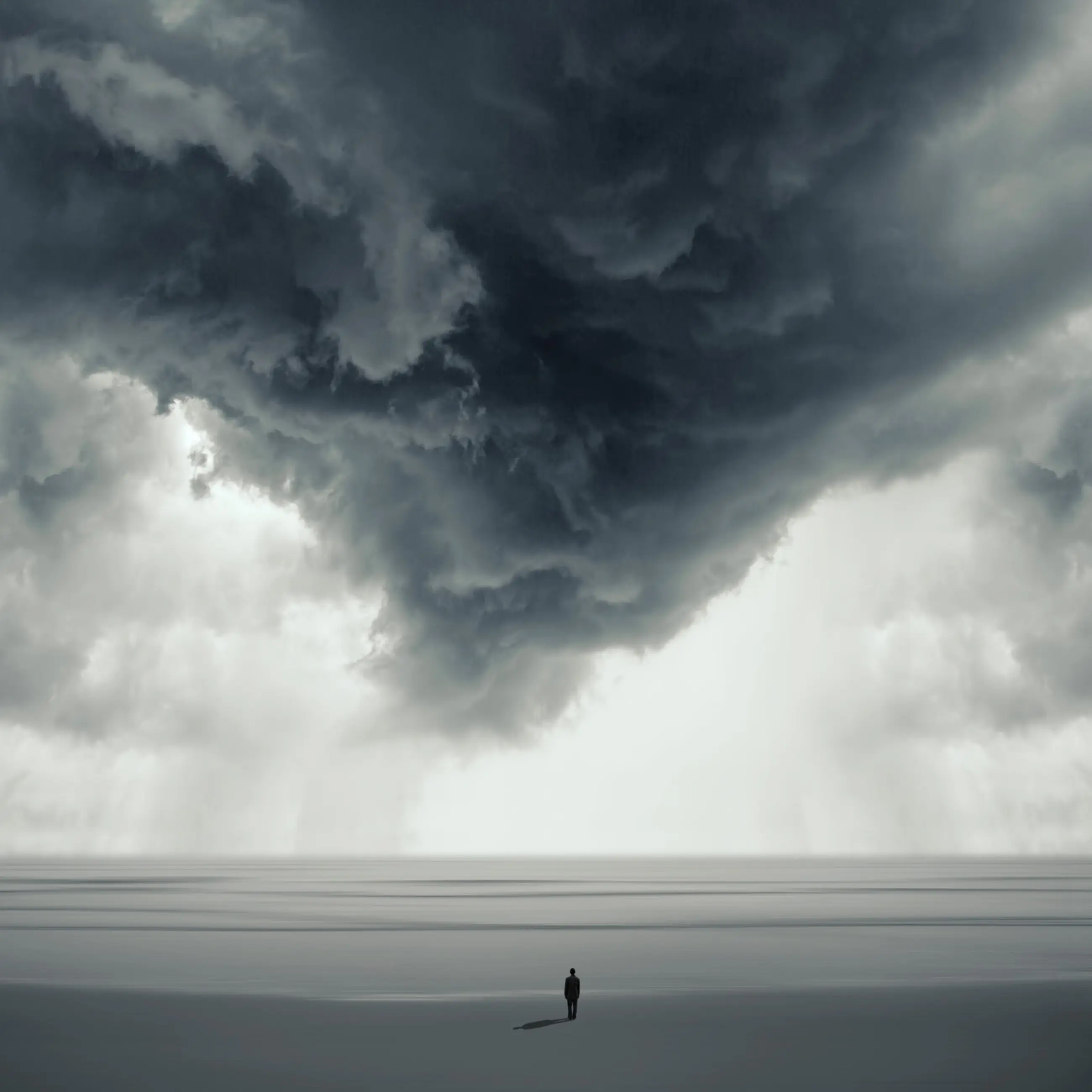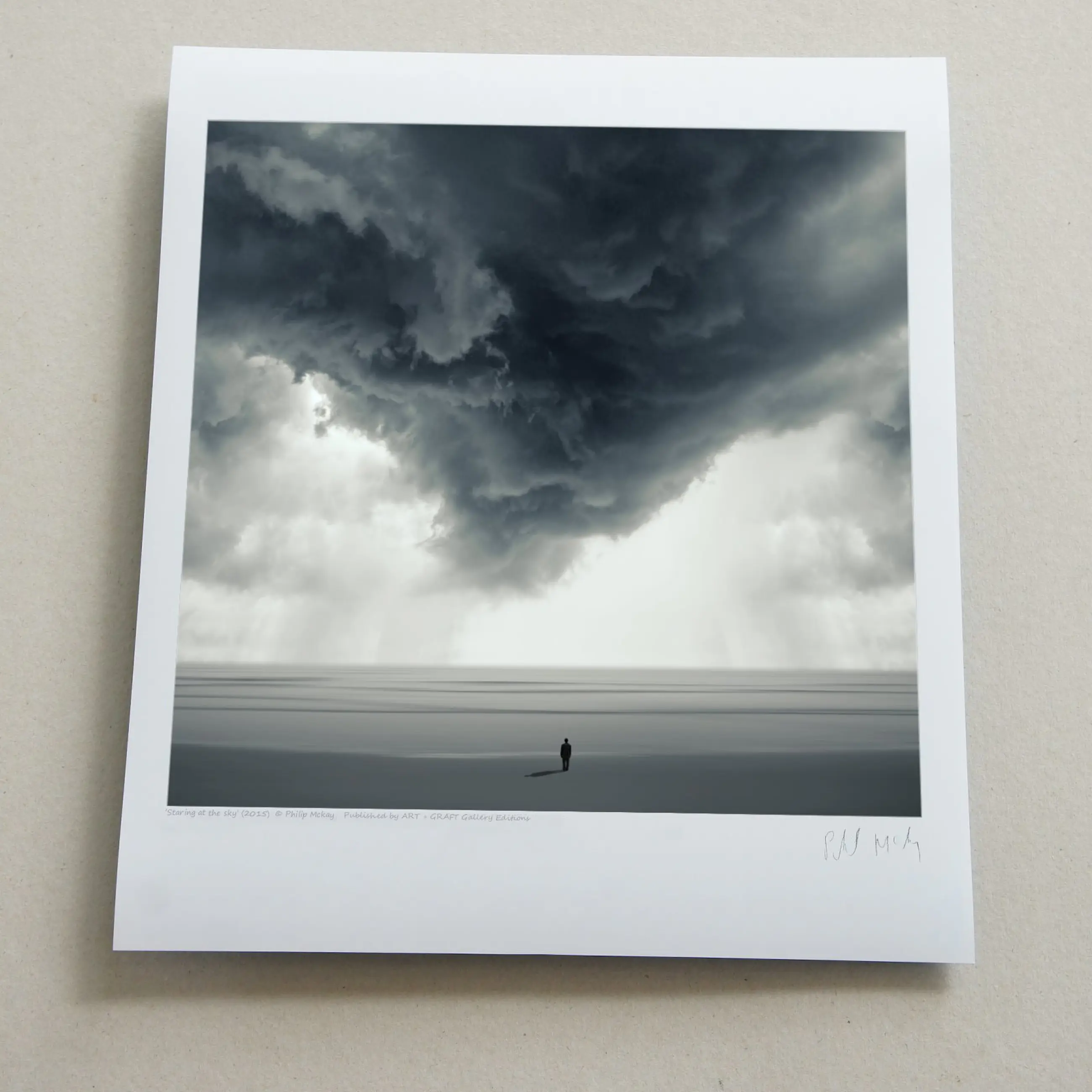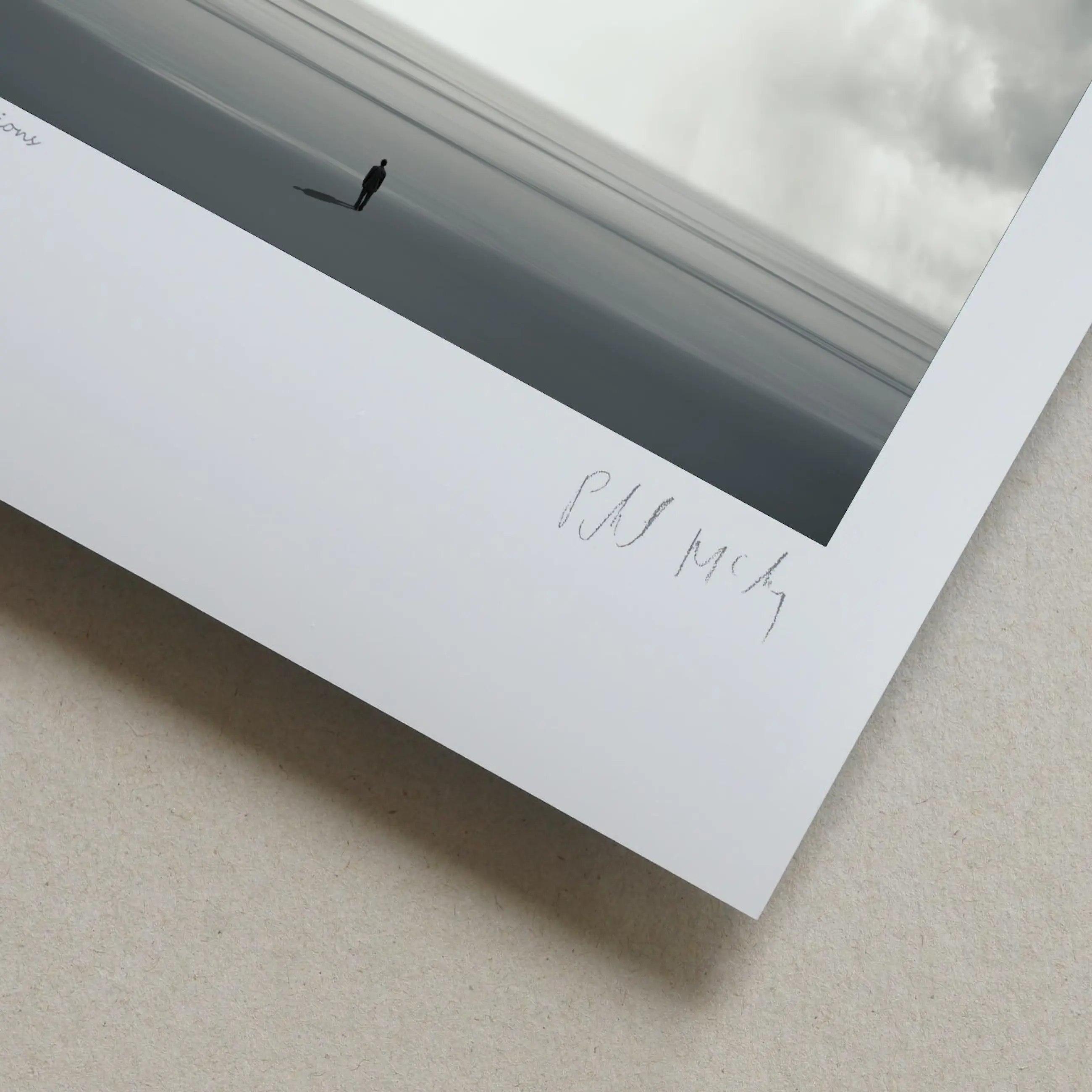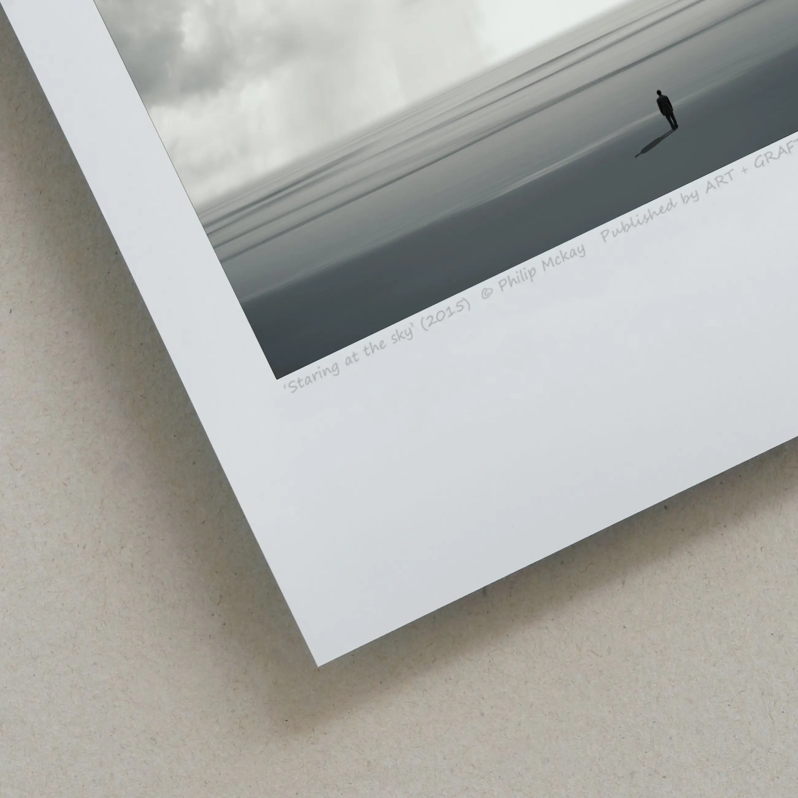 De eenzame figuur is geïnspireerd op het werk van de Britse beeldhouwer Anthony Gormley. Chromogene afdruk op mat Fuji Crystal Archive- papier