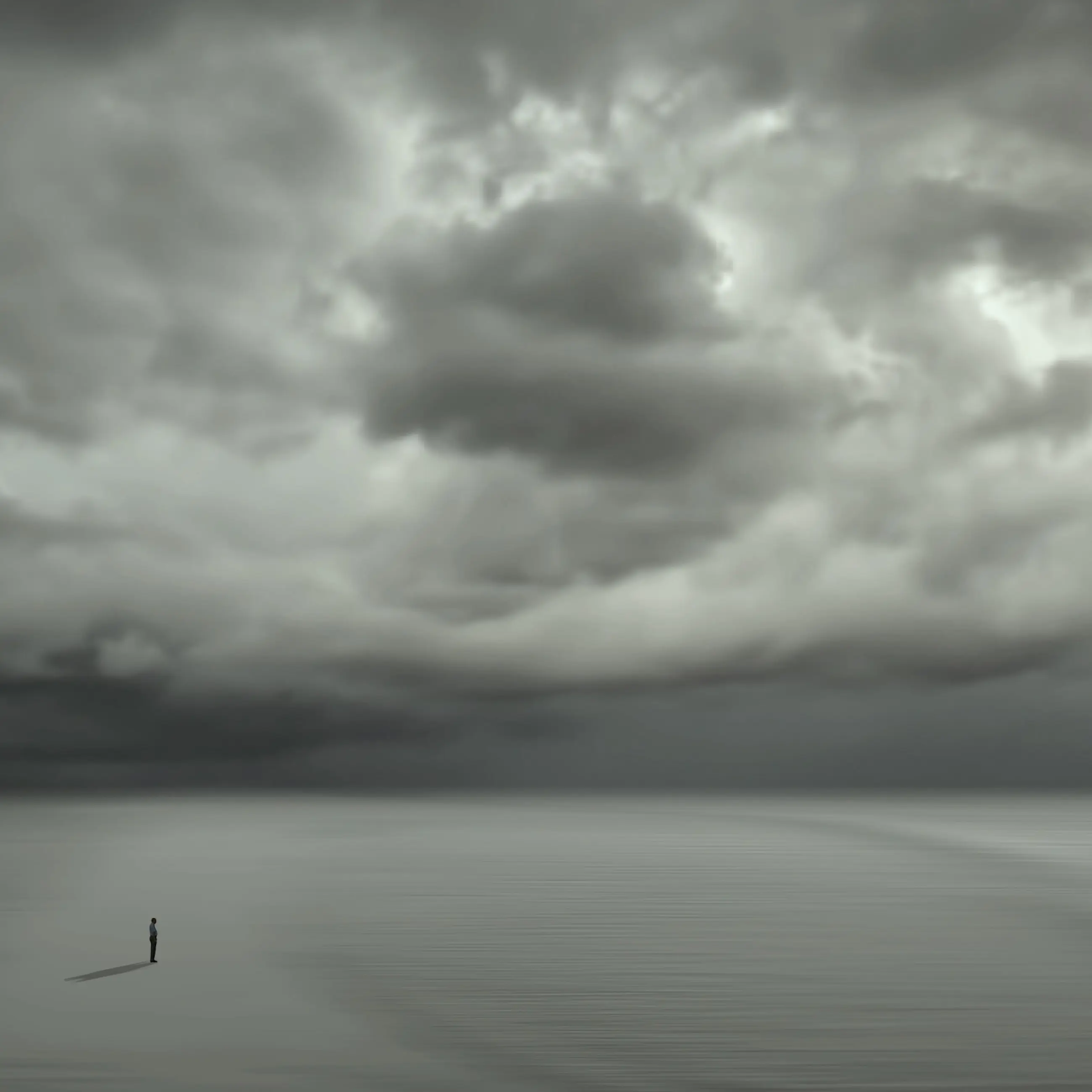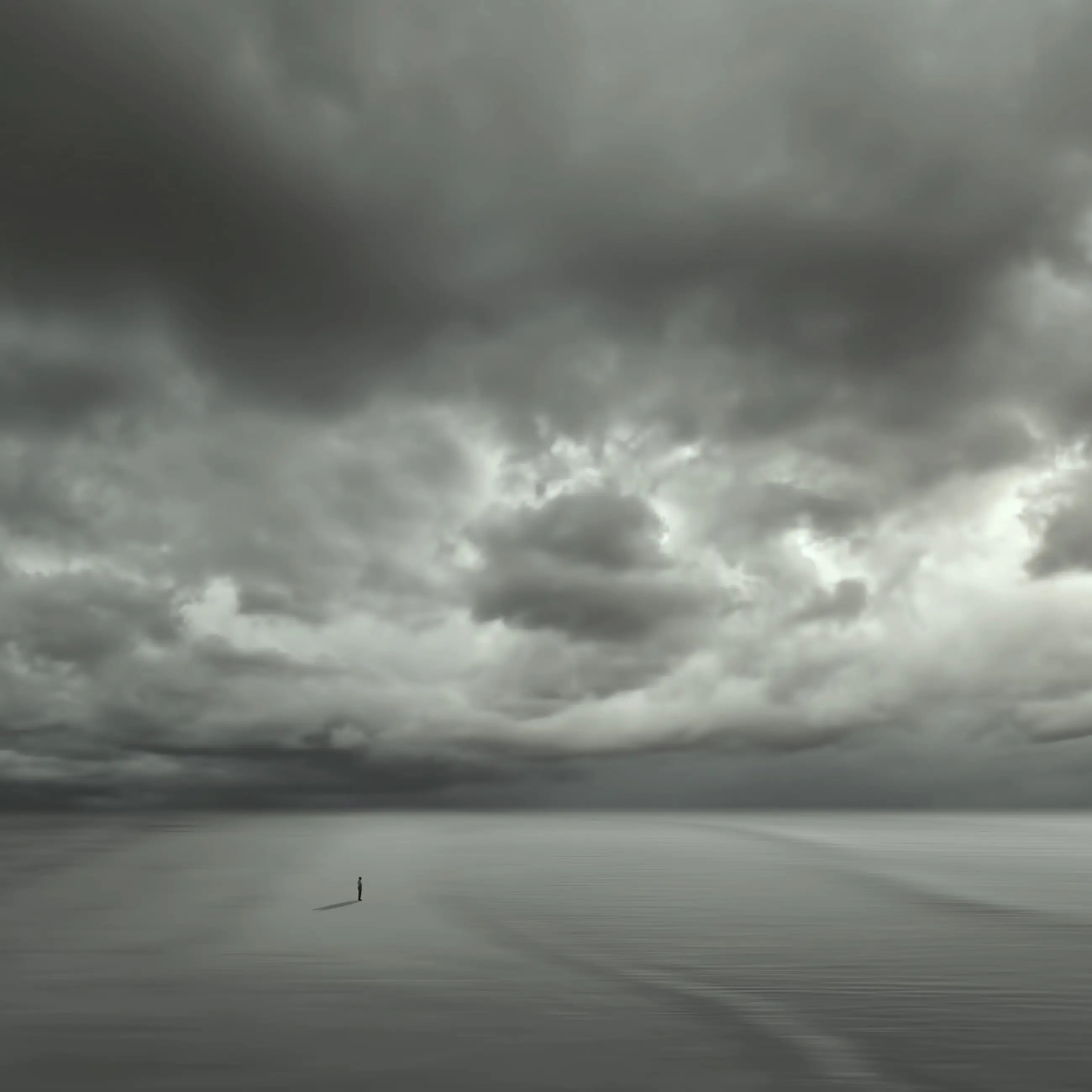 De eenzame figuur is geïnspireerd op het werk van de Britse beeldhouwer Anthony Gormley. Chromogene afdruk op mat Fuji Crystal Archive- papier