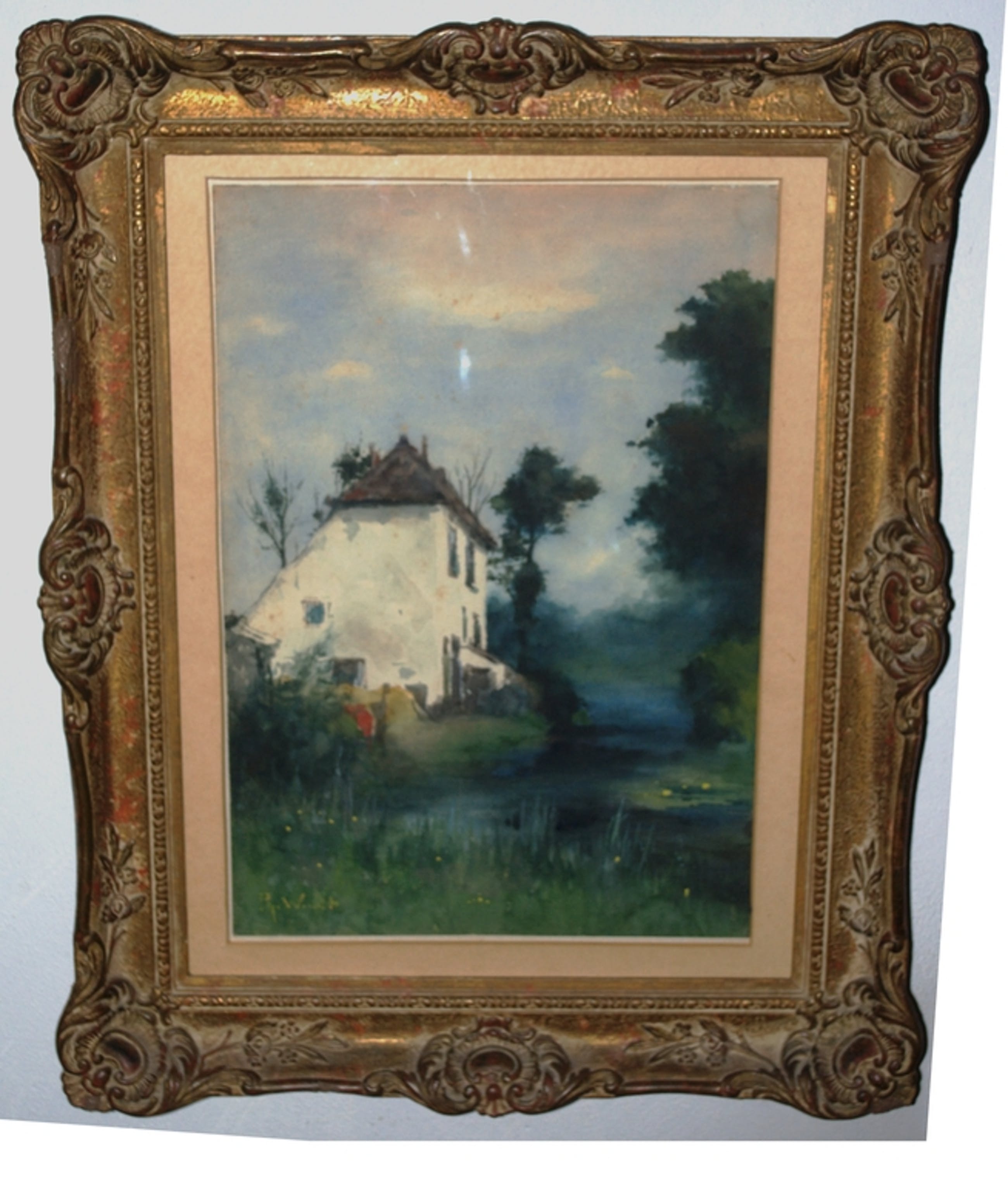 Papier 35x25 cm, in goede staat, bevestigd op karton. Gesigneerd l.o.