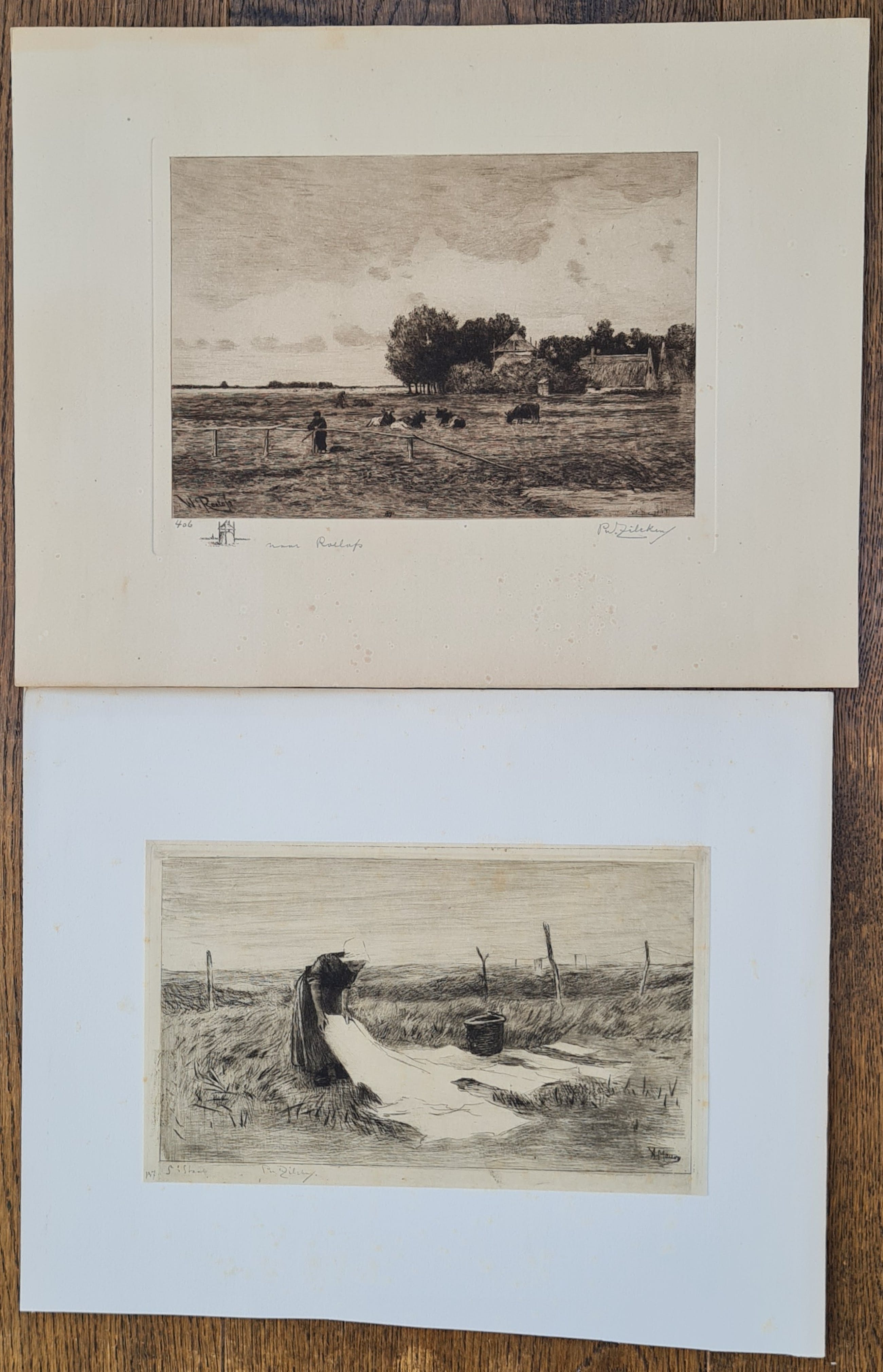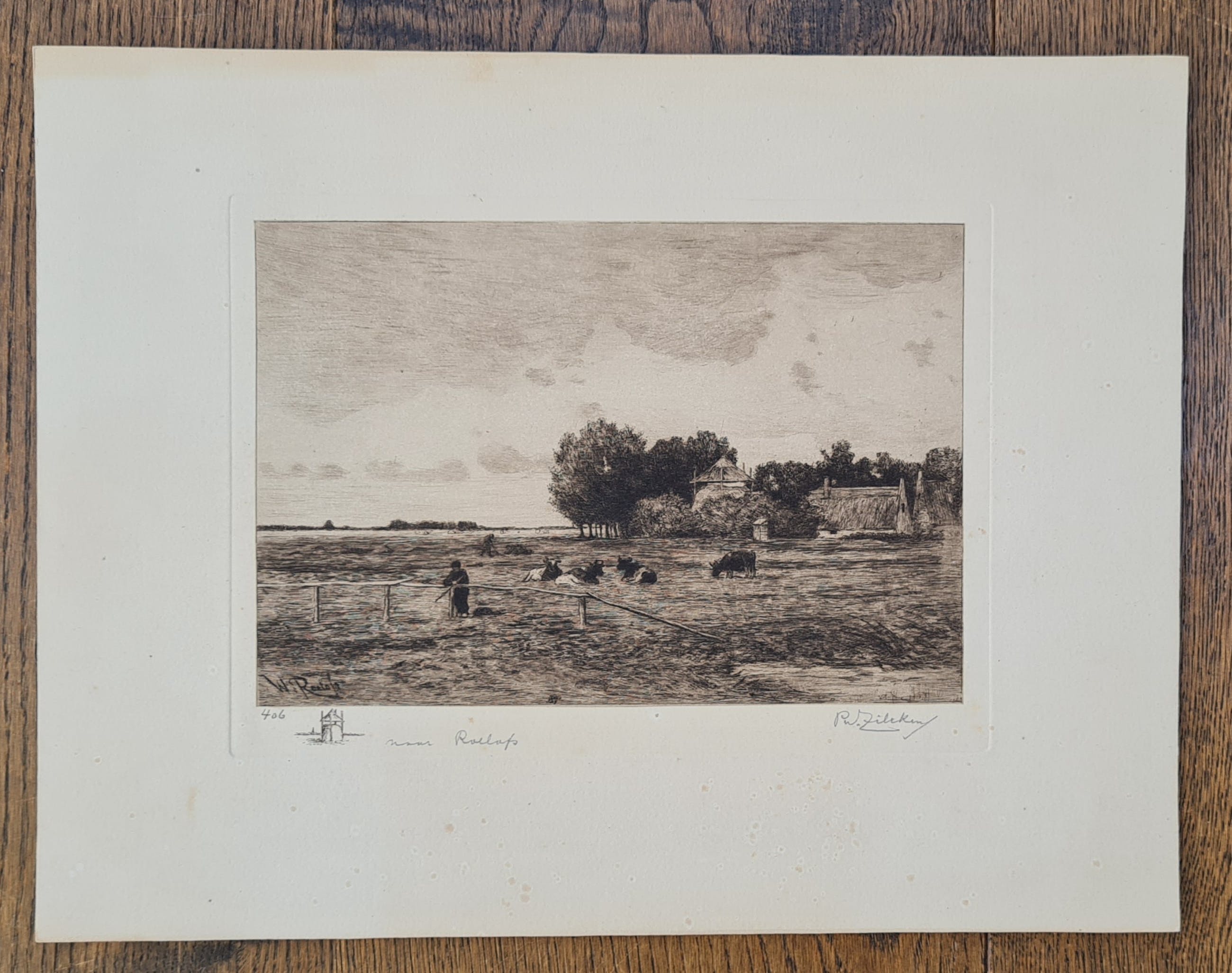 Kavel van 3 handgesigneerde etsen van Philip Zilcken, waarvan 2 etsen naar Anton Mauve en Willem Roelofs.