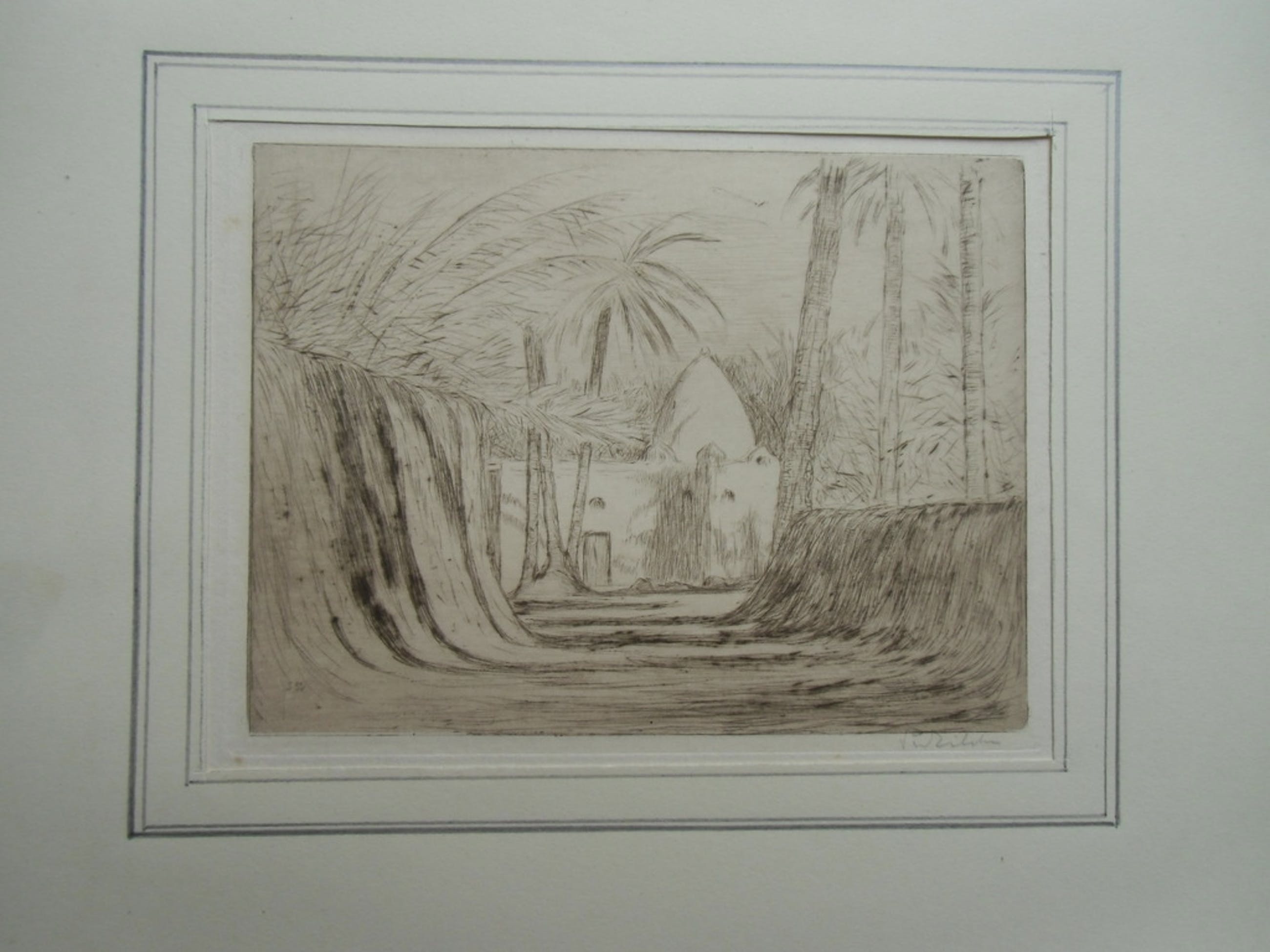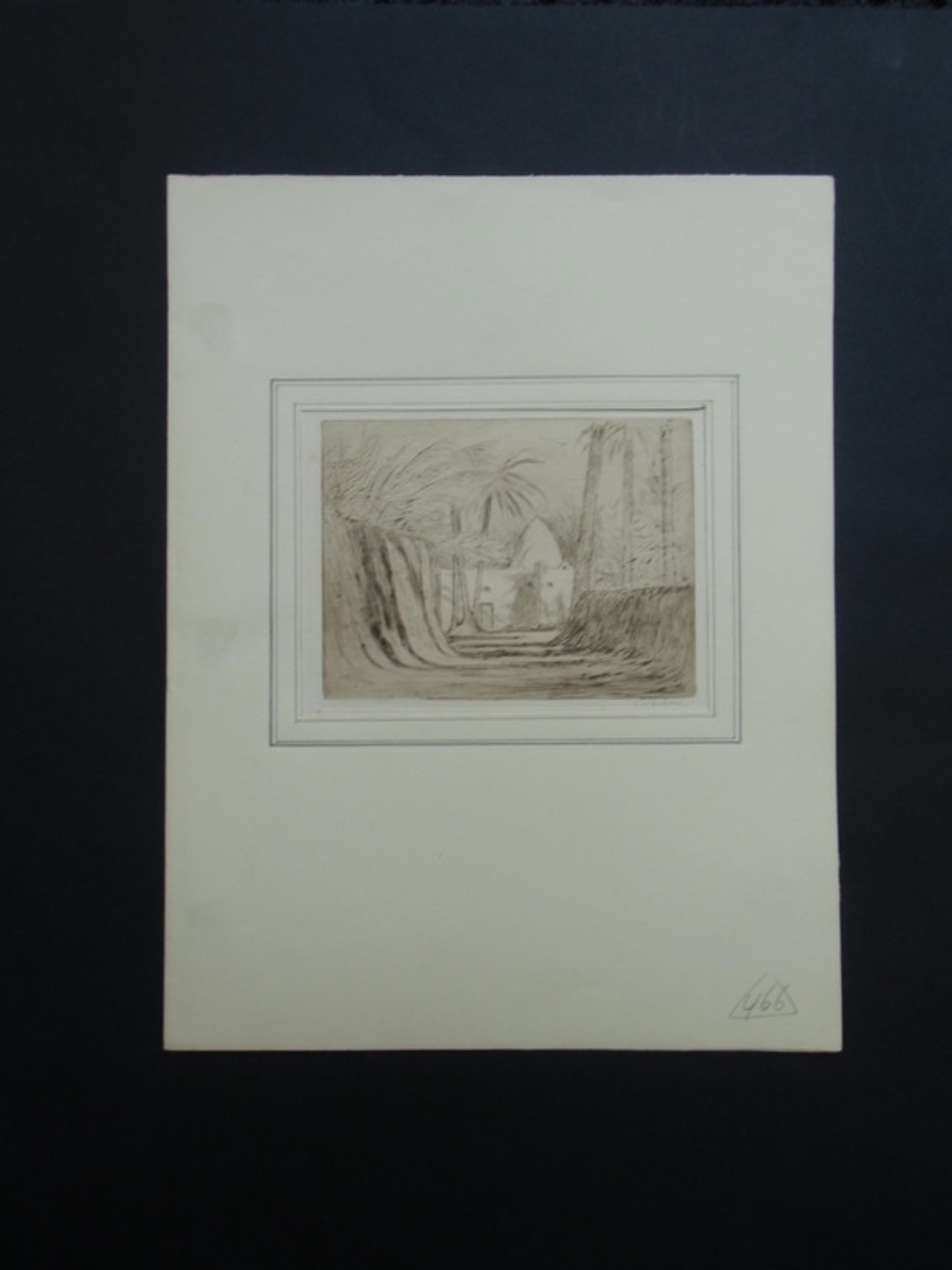 Deze droge naald van Philip Zilcken kan gedateerd worden in de periode 1908-1910 ( de periode van Impressions d'Algerie). Het werk is los opgenomen in authentiek verzamelaarspassepartout met nummer 466. In potlood gesigneerd en l.o. 532 in de plaat. Afmetingen 10.6 x 14 cm. Geschept papier. Uitstekede conditie met zeer lichte foxing in de marges.