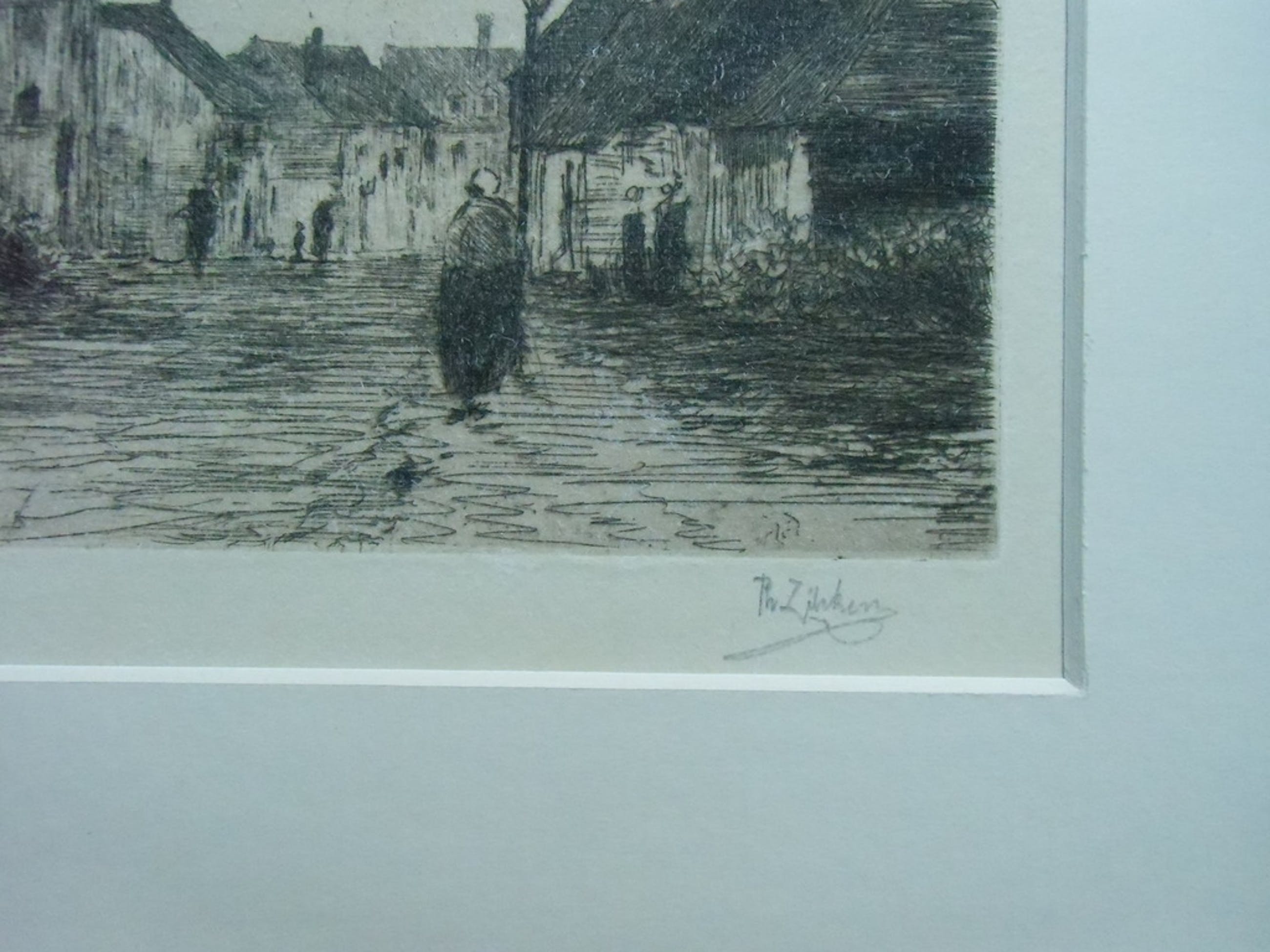 Deze ets op papier vergé Van Gelder is gemaakt door Philip Zilcken. Hij geeft hier een beeld van een wijk van Brussel van een eeuw geleden op een fantasierijke, haast nonchalante manier .