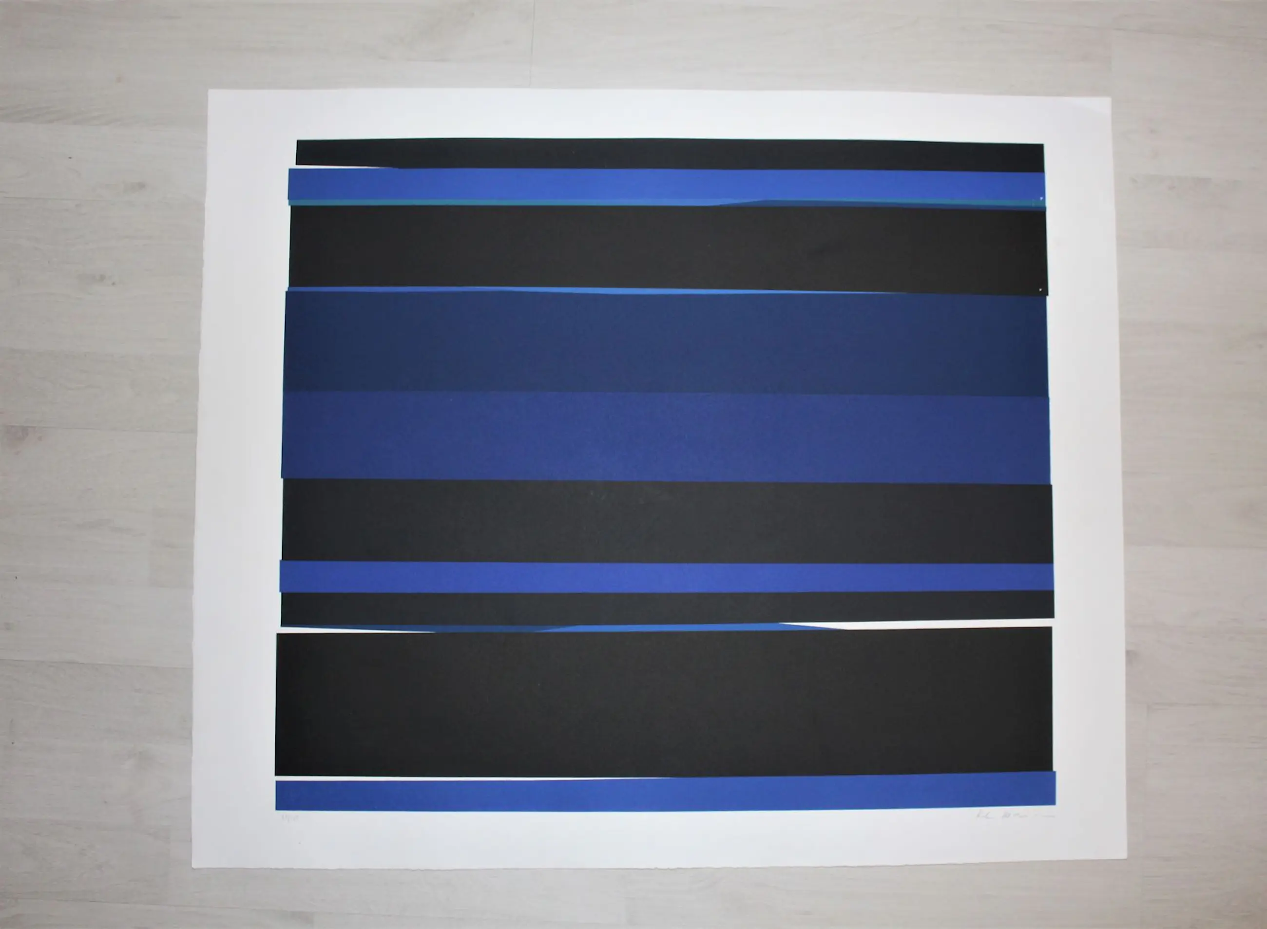 Originele afbeelding van Philippe Morrison (1924-1994). Uit de portfolio "Afstanden" 1971-1972. Techniek: Kleurserigrafie op handgemaakt papier. Beperkte oplage van 175 exemplaren. Handtekening en nummering aanwezig. Parijs: edities Denise René, 1971.