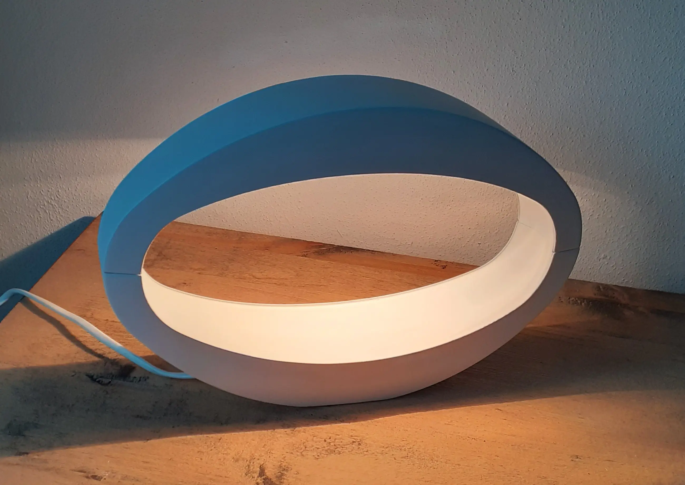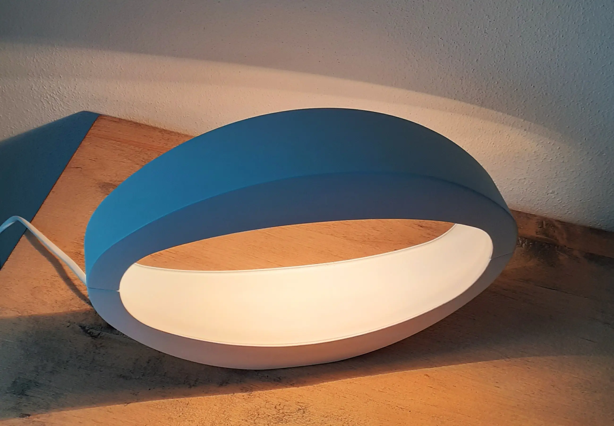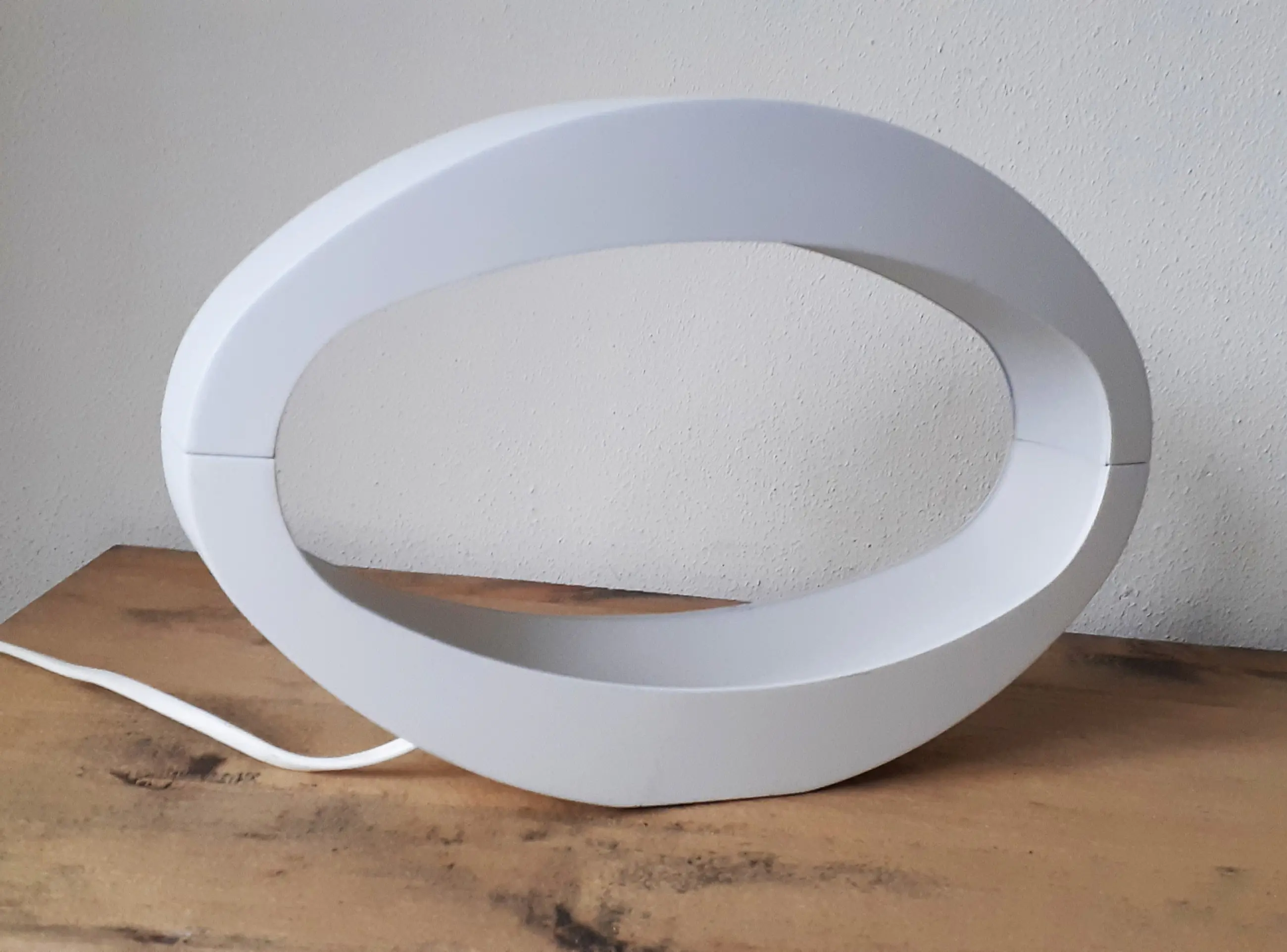 Lamp is in aluminium, wit gecoat uitgevoerd waarbij, het ovale design en vormgegeven "lichtgoot", het indirect licht fraai verspreid, Het bijpassend lampje/lichtbron is inclusief levering. Foto's geven een goed beeld van de lamp, en zijn onderdeel van de omschrijving.