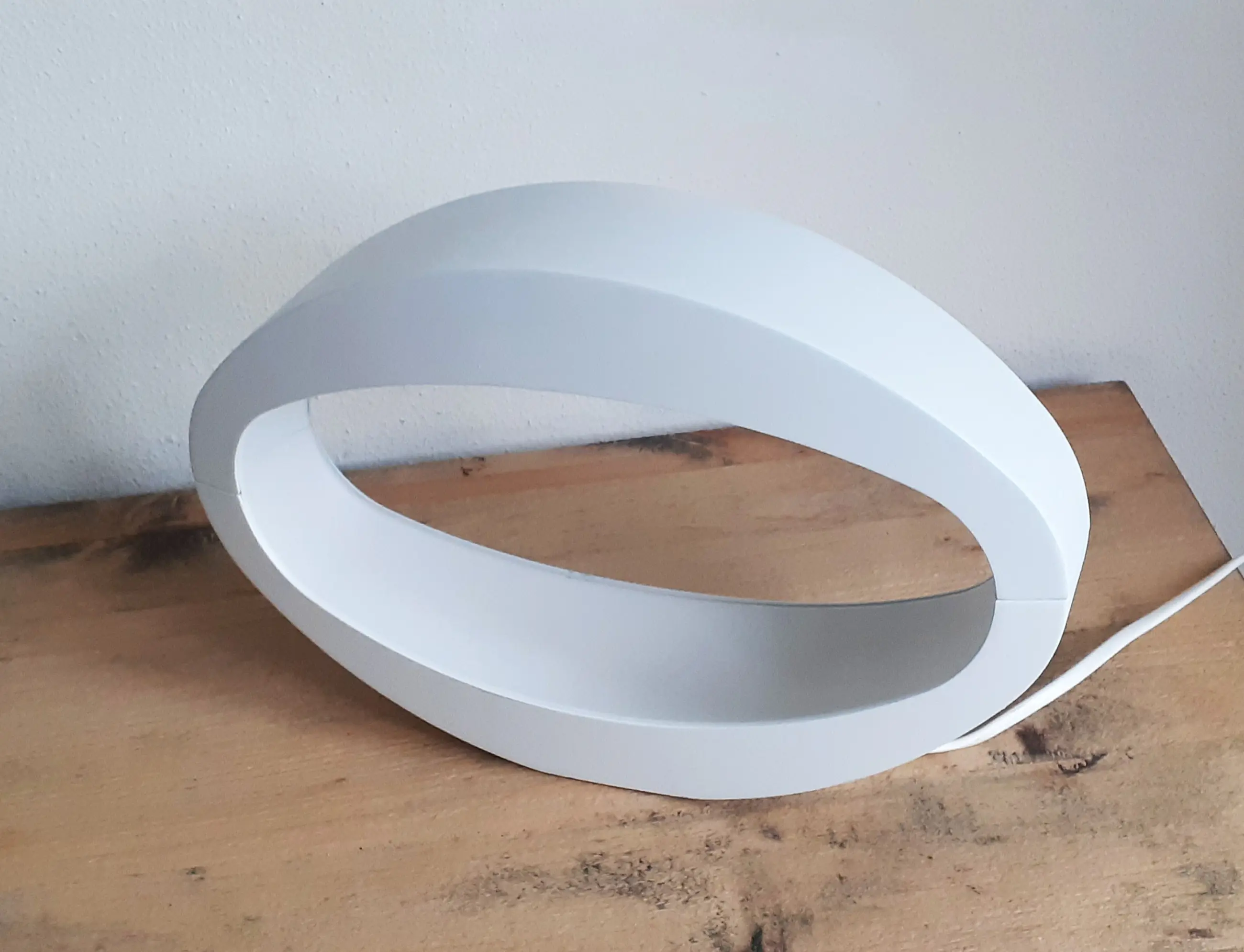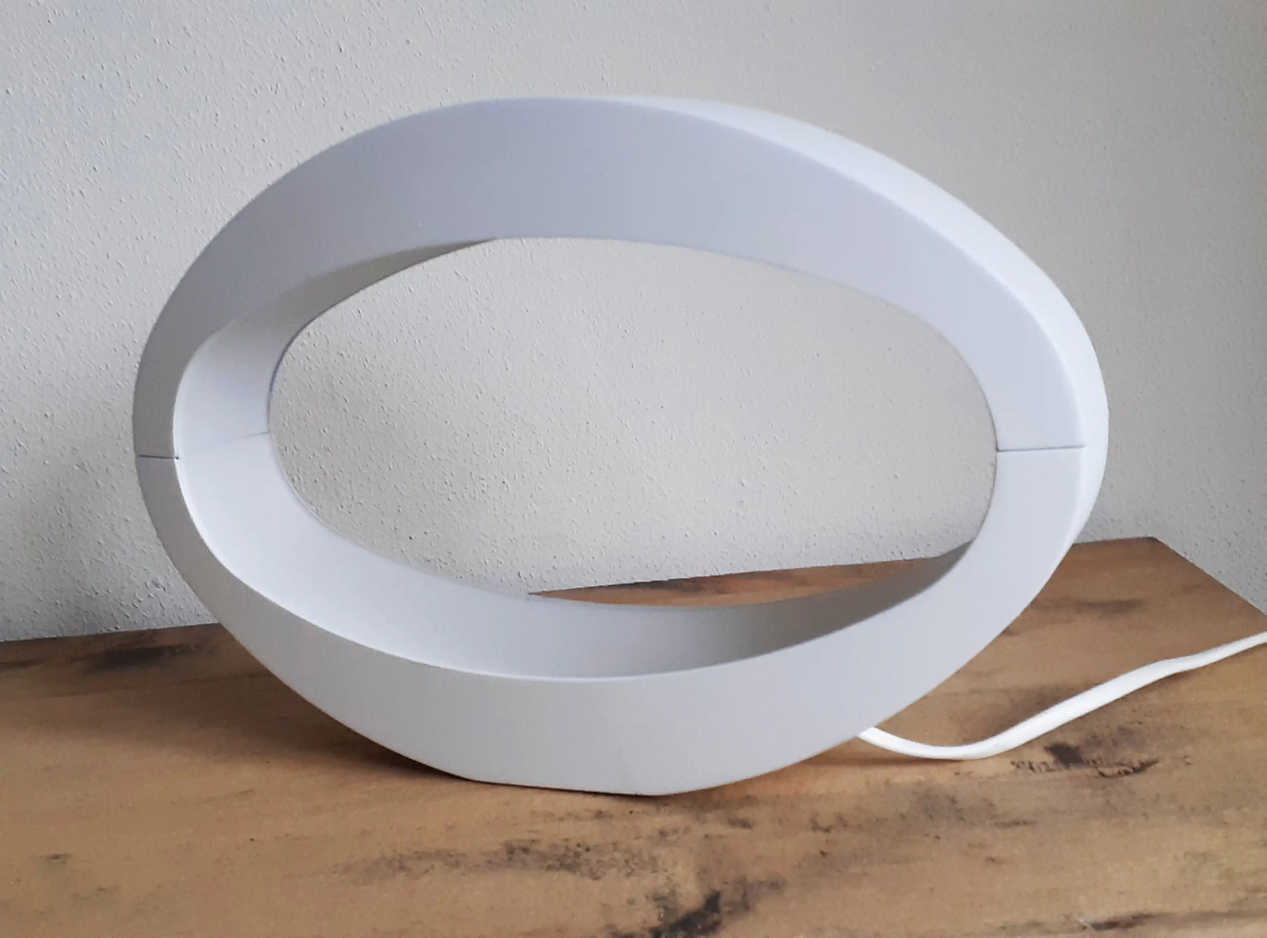 Lamp is in aluminium, wit gecoat uitgevoerd waarbij, het ovale design en vormgegeven "lichtgoot", het indirect licht fraai verspreid, Het bijpassend lampje/lichtbron is inclusief levering. Foto's geven een goed beeld van de lamp, en zijn onderdeel van de omschrijving.