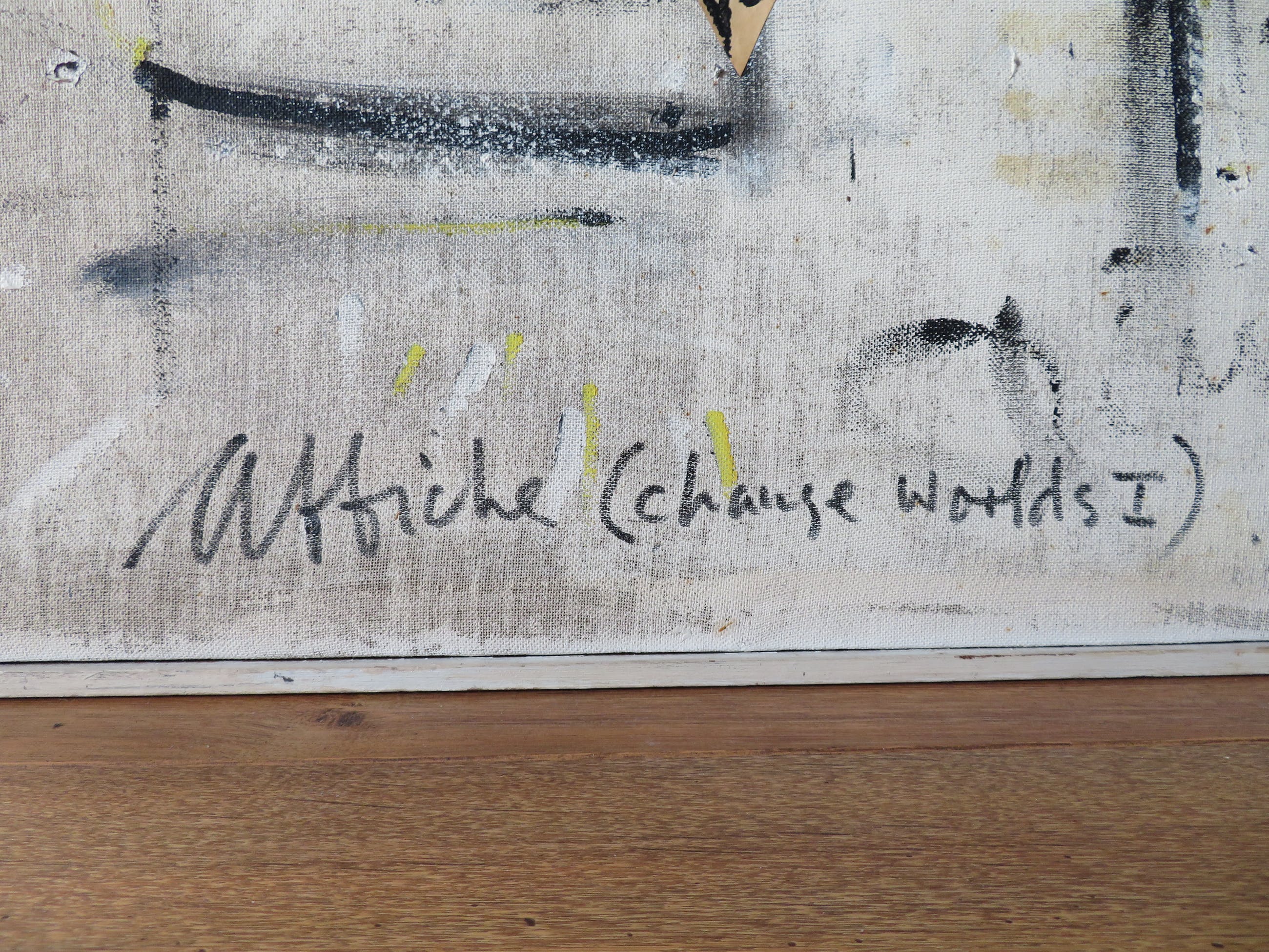 Links aan de voorkant de tekst: Affiche 'change worlds I',