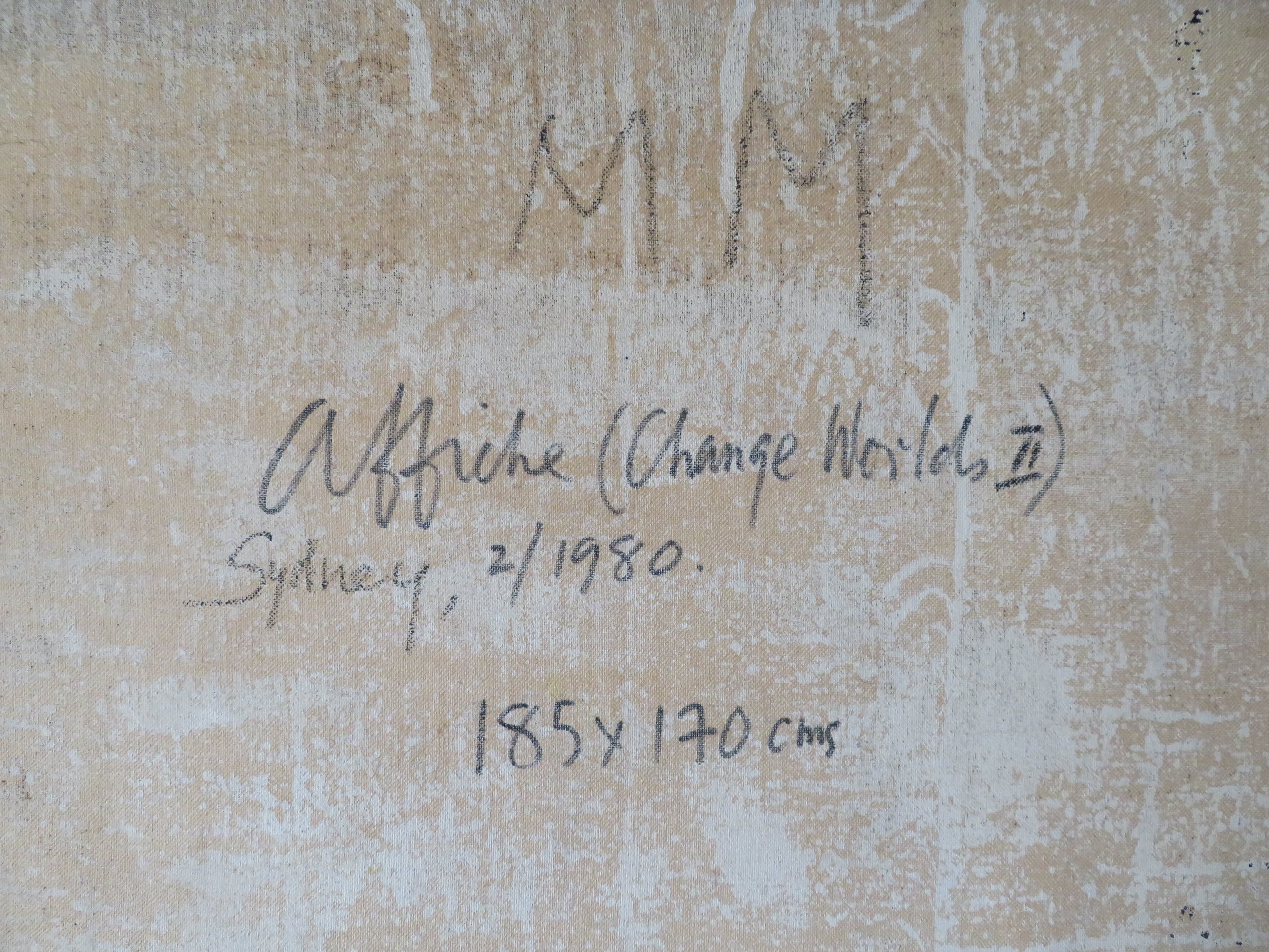 Op de achterkant, links boven, MM 1980 Affiche (change worlds II), Sydney 2/1980 en op de achterkant rechtsonder gesigneerd door Phillips Martin. (Ph. Martin)