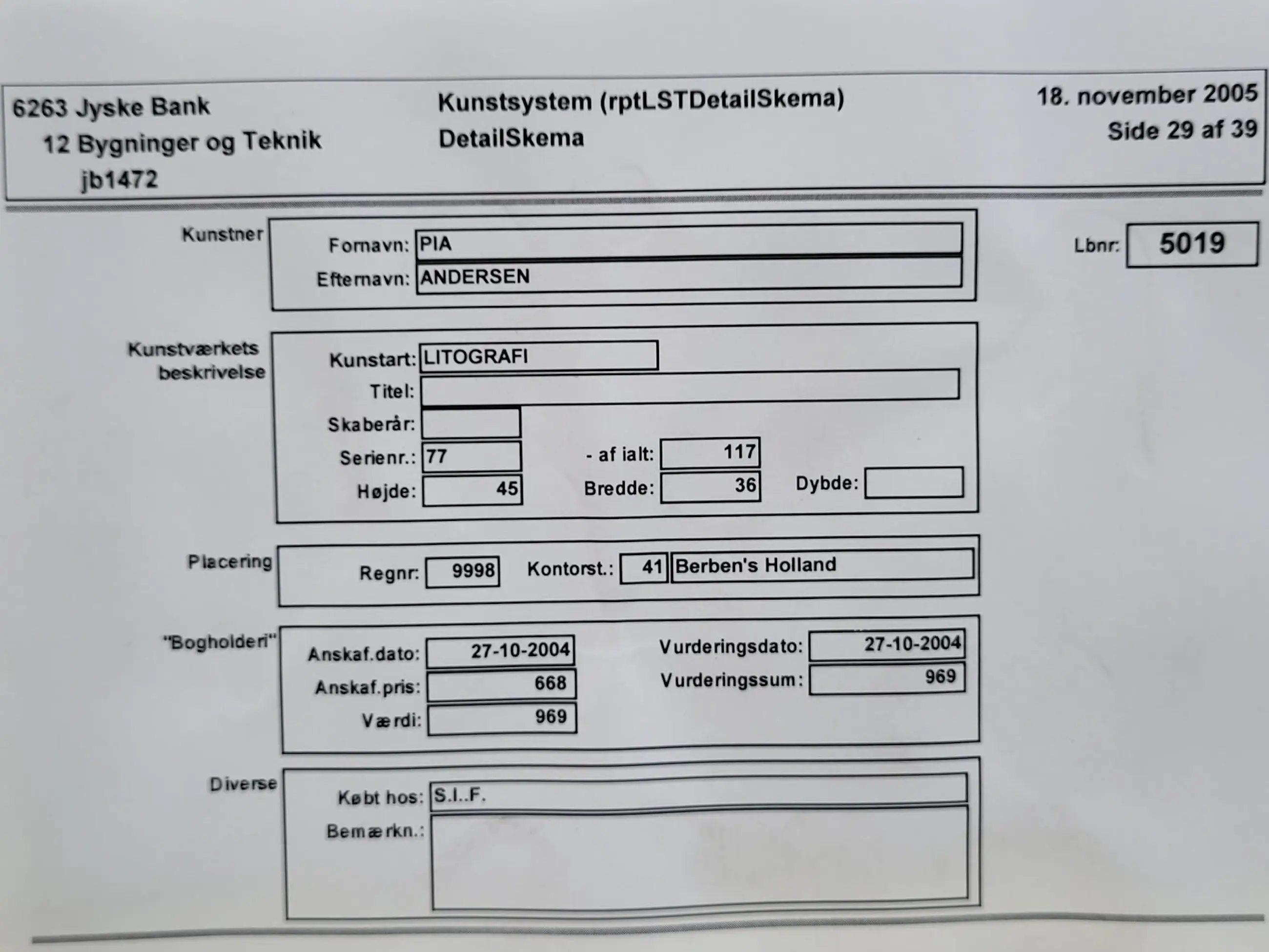 Haar werk is vertegenwoordigd in tal van collecties en instellingen, waaronder de Nationale Galerij van Denemarken; de New Carlsberg Foundation, Denemarken; het Oaxaca Museum, Mexico; het Museum Vendsyssel, Hjørring, Denemarken en het Leopold Hoesch Museum, Düren, Duitsland.