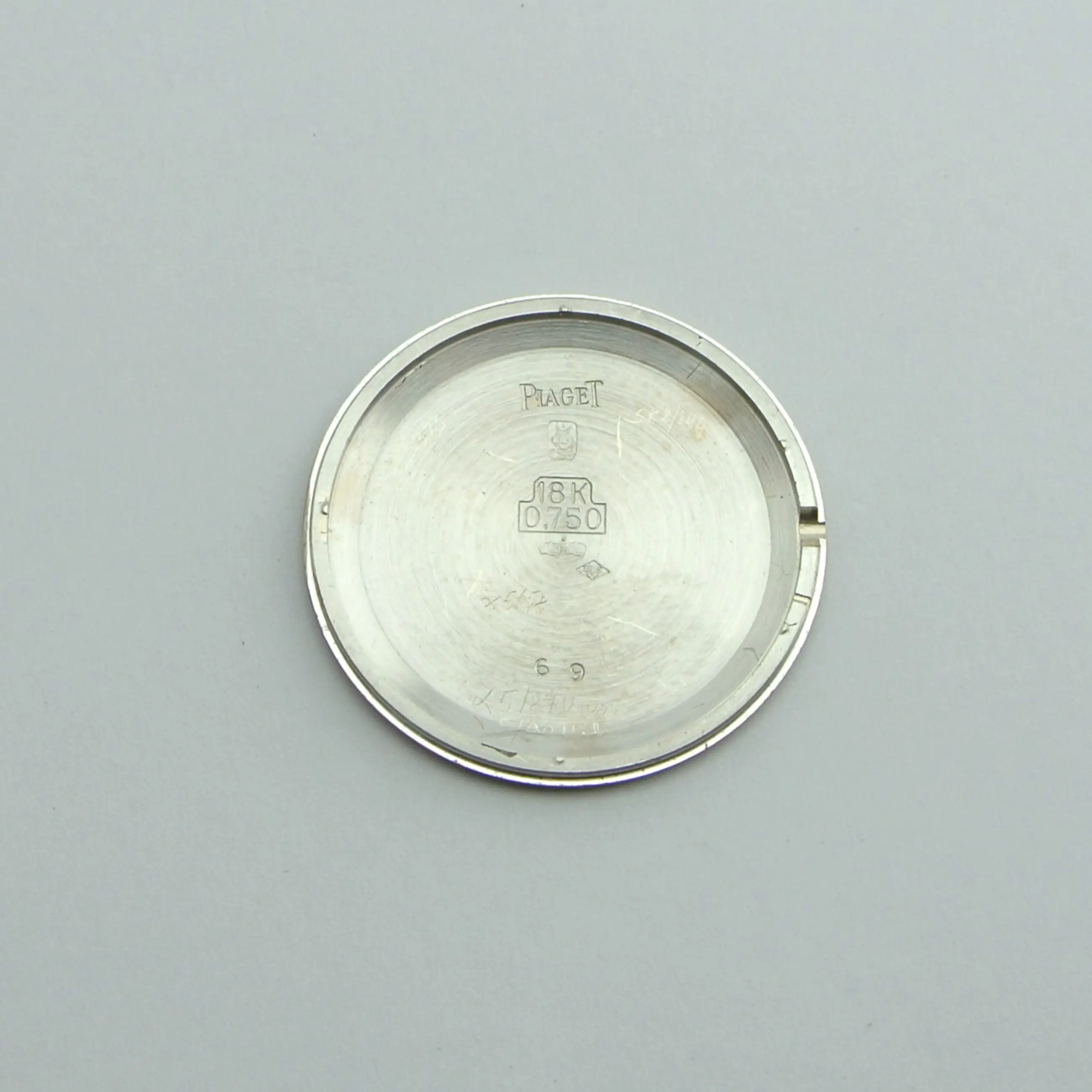 Kast: 27 mm diameter, nummer 248296, 18k witgoud, goede staat