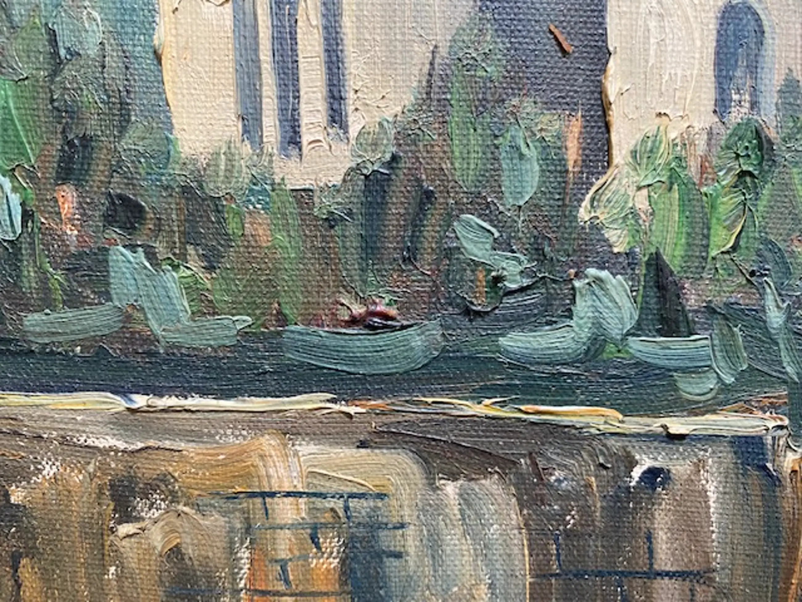 Het schilderij is niet ingelijst en vertoont met name aan de randen enkele beschadigingen.Daarnaast vertoont het de gebruikelijke ouderdomssporen.