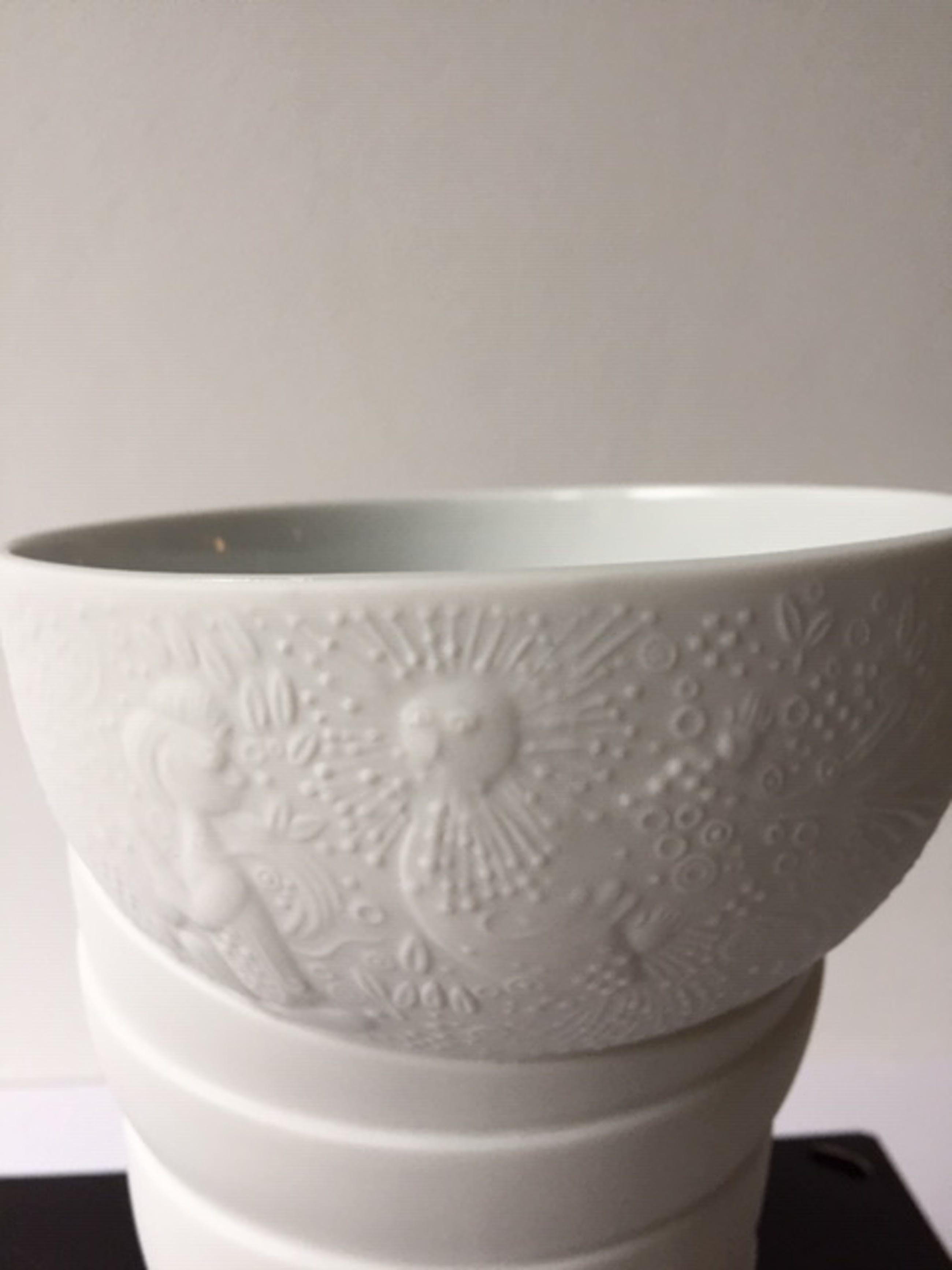 - Uitgevoerd in wit biscuit (mat) porselein. De bovenste
