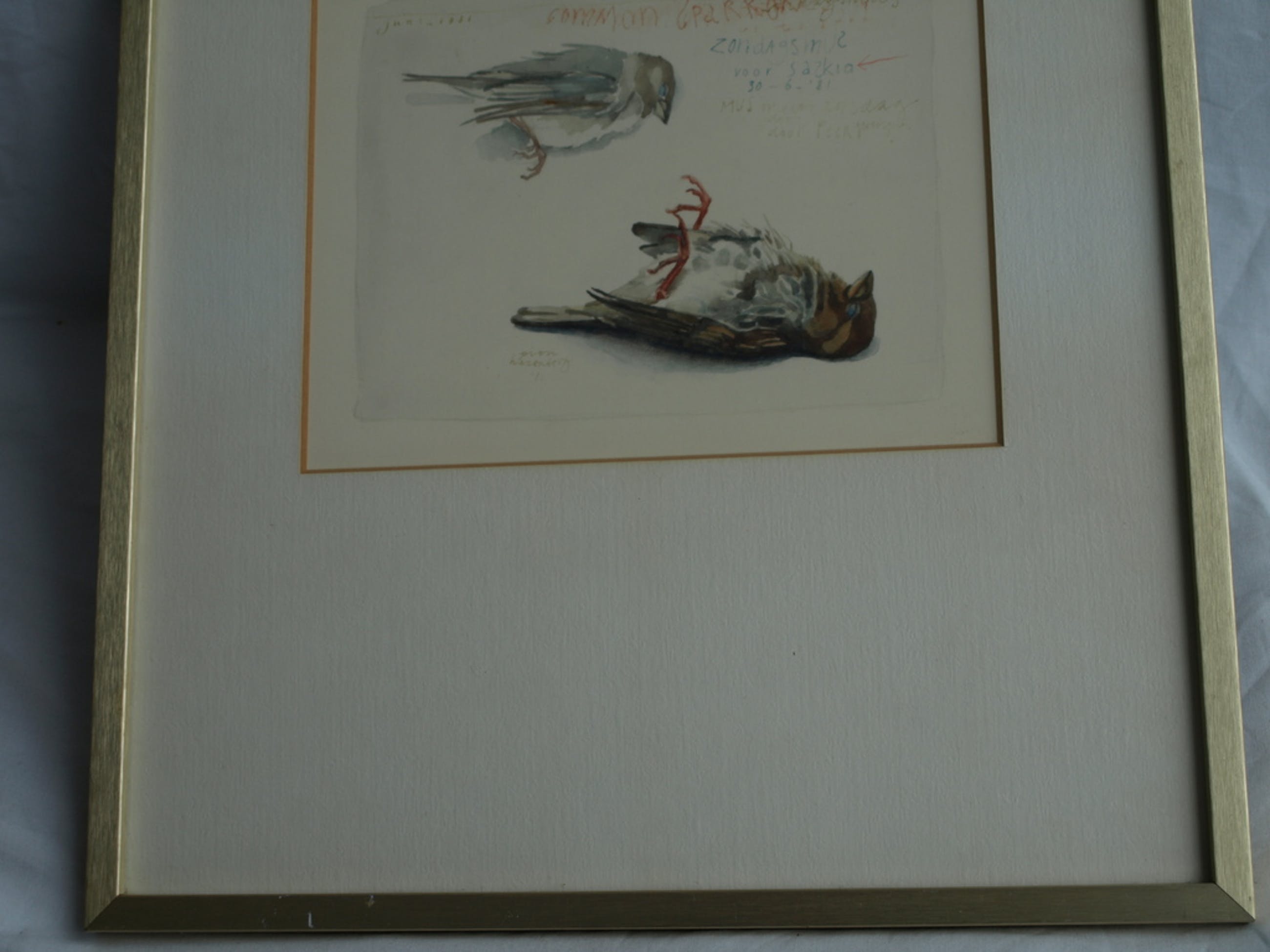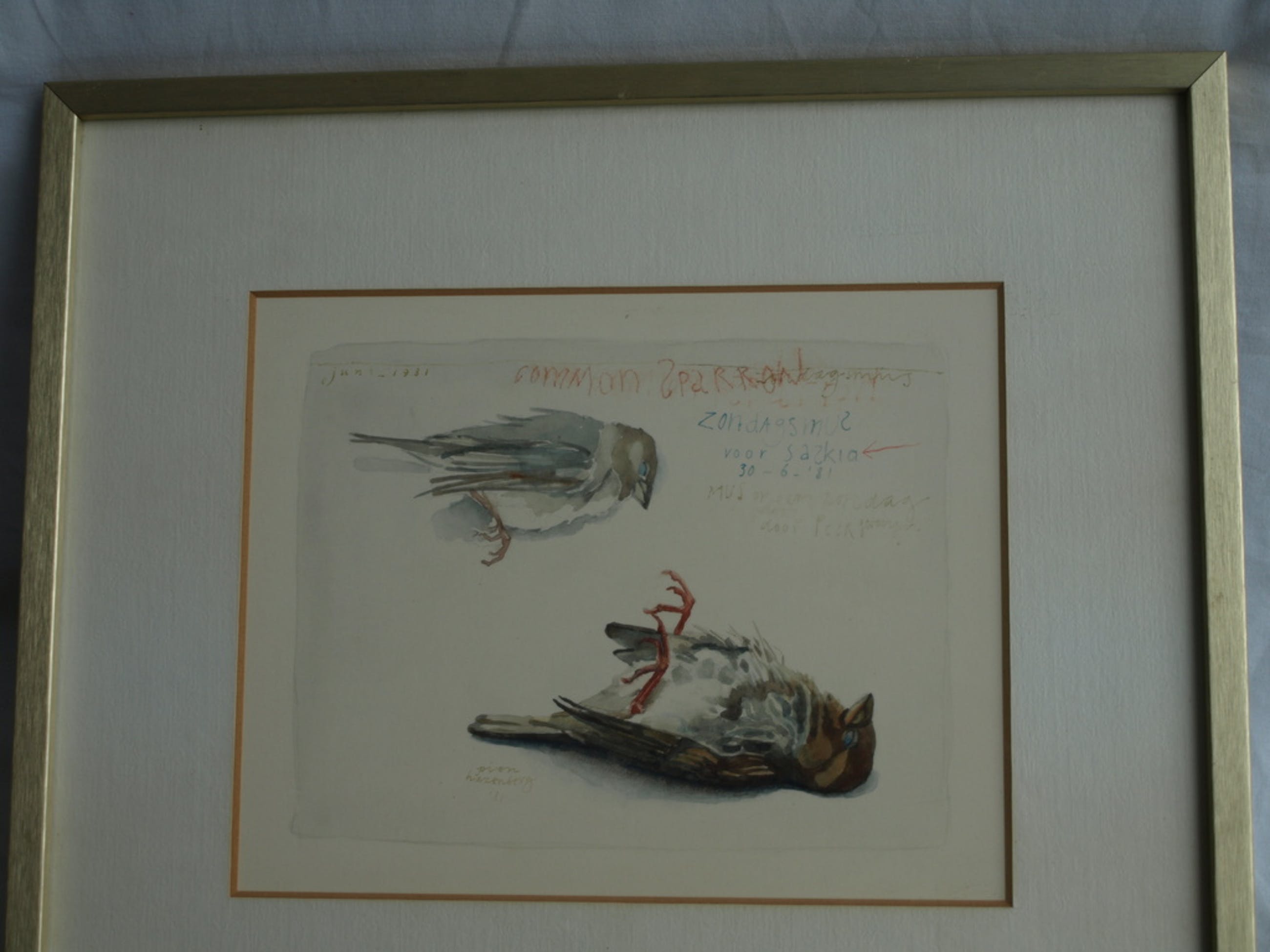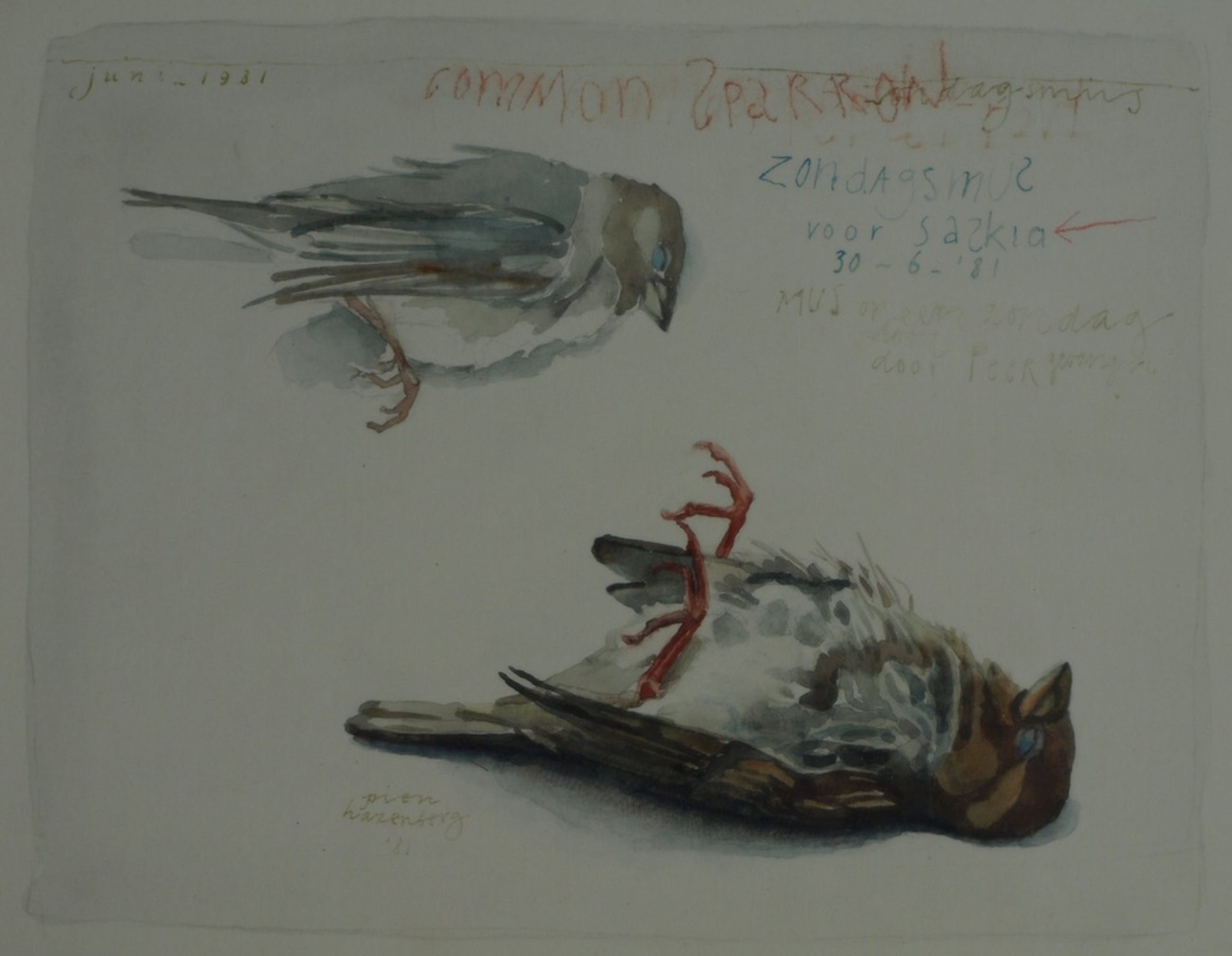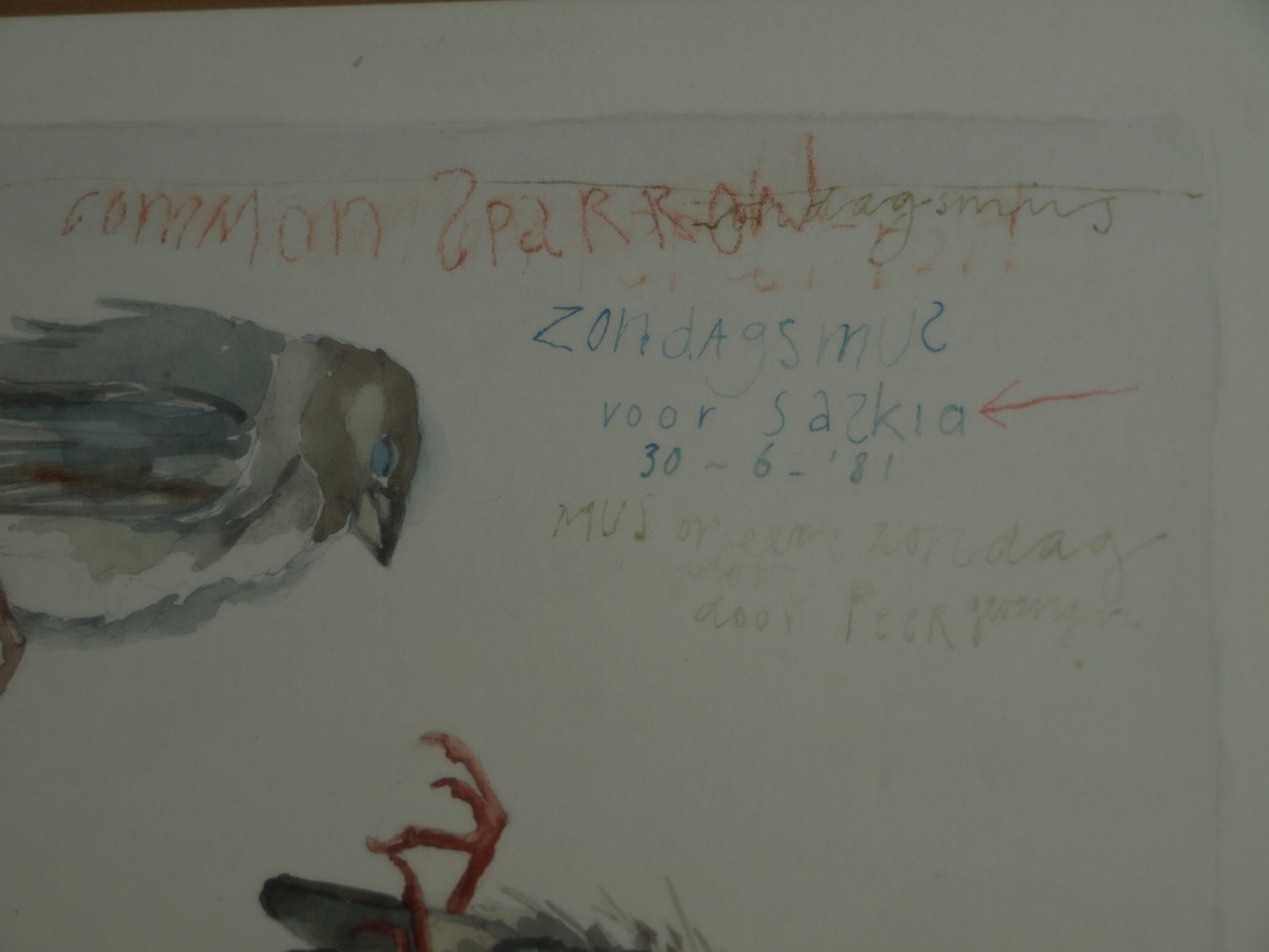 -Gesigneerd en gedateerd en met o.a. de tekst: “Mus op een zondag door Peer gevangen”.