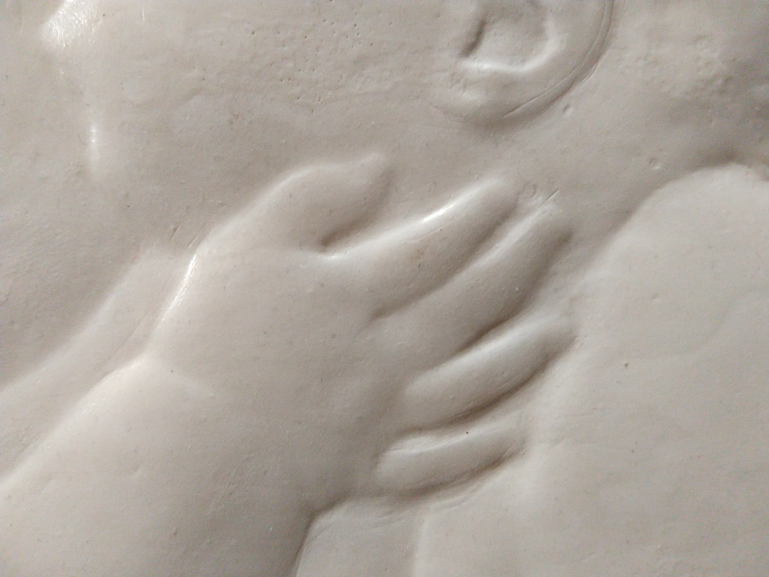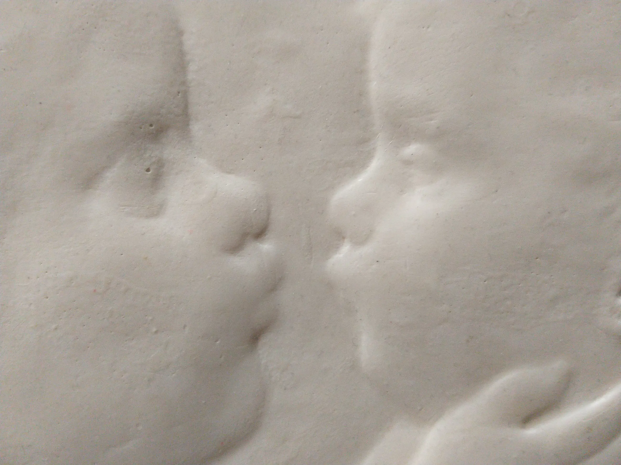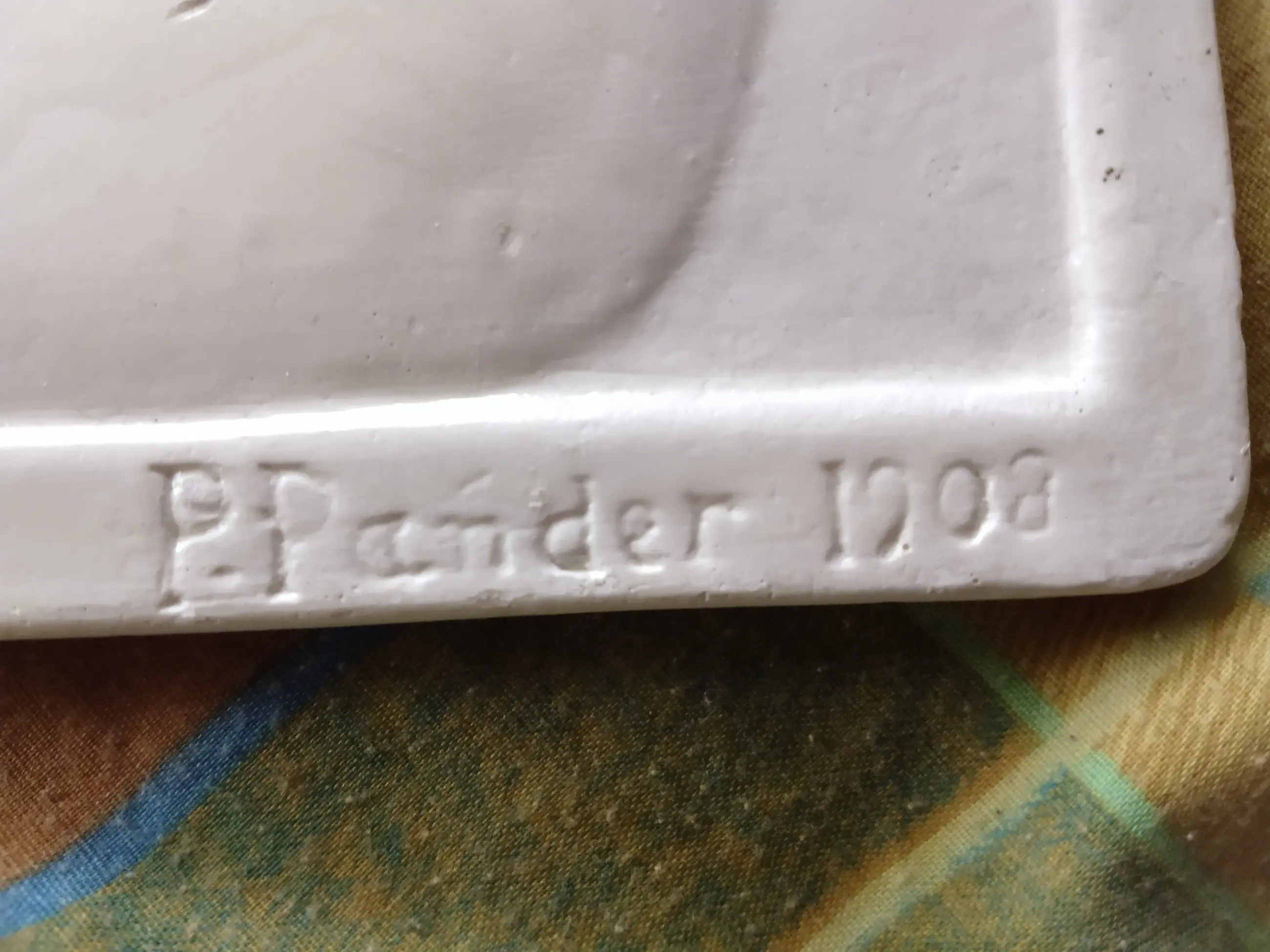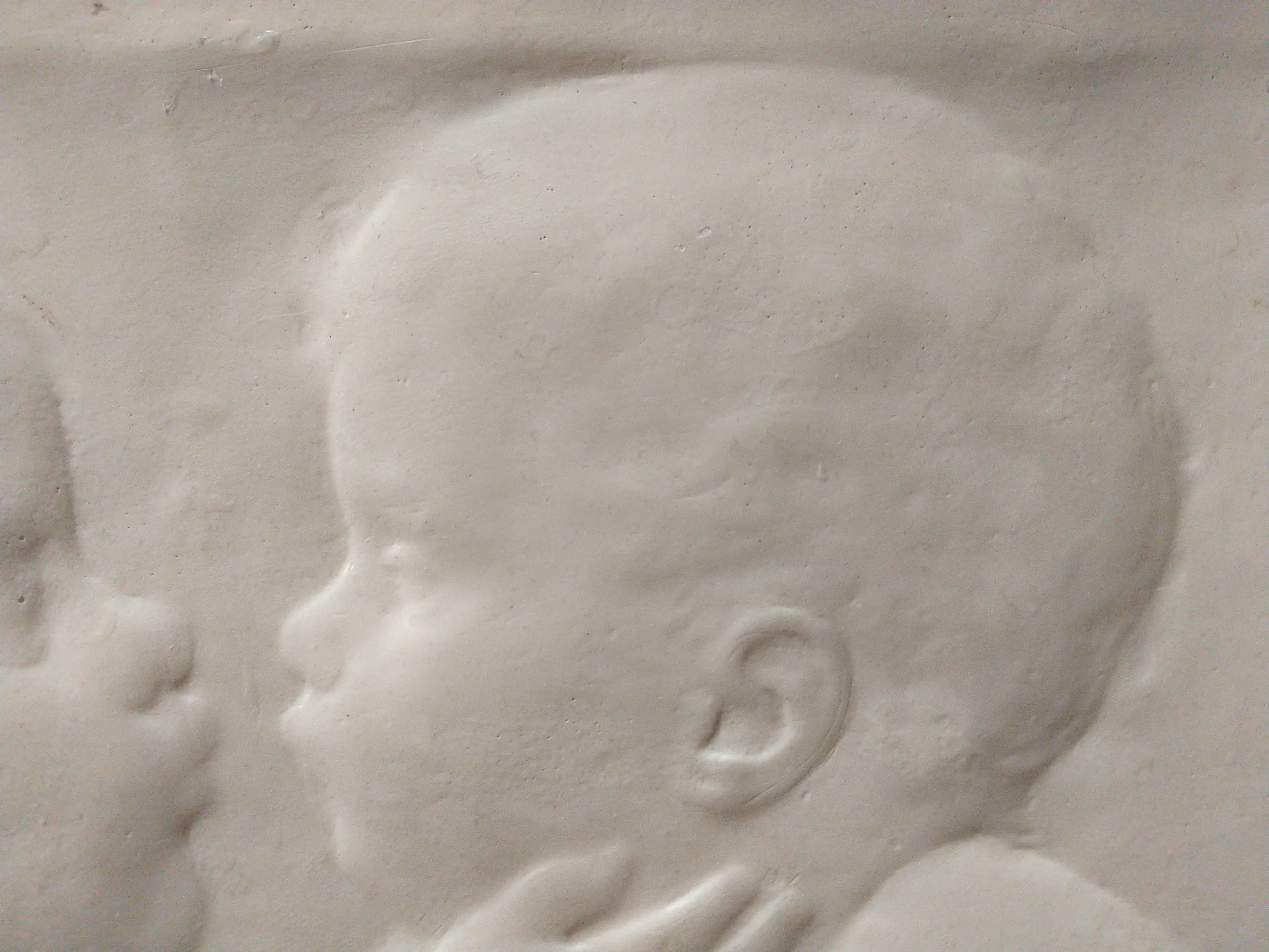 Twee broertjes. Gipsen plaquette uit 1908 van de bekende beeldhouwer Pier Pander. Het object is in goede staat. Afmeting 28x34 cm.