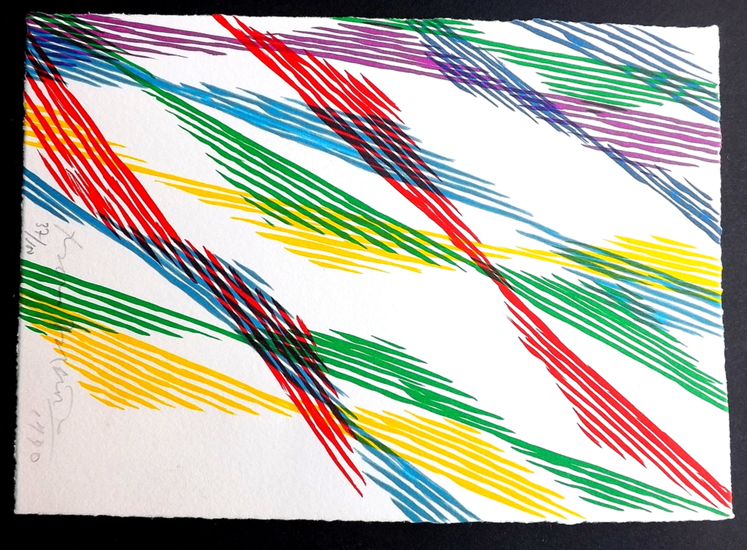 aangeboden wordt van deze veelzijdige kunstenaar een schitterende kleuren-litho uit 1970 in een zeldzame compositie, afgedrukt in heldere kleuren op stevig Arches. (zie o.a. piero-dorazio.com)