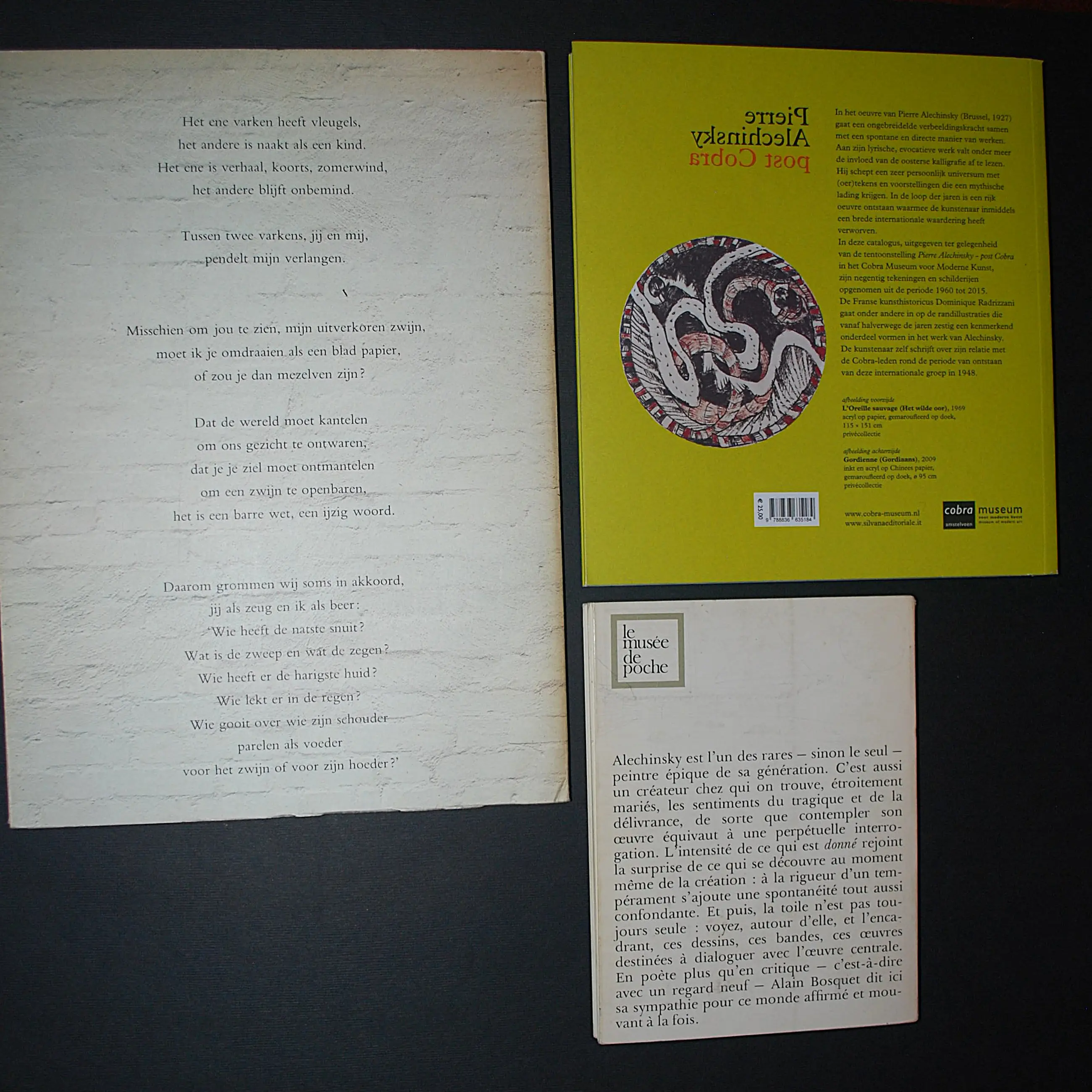 - Zwart. Appel & Alechinsky, gedichten Hugo Claus. Voorwoord Chr. Dotremont. - Post Cobra. Gesigneerd door Maarten Bertheux.2016. 128 pag. - door Alain Bosquet, 1971, 123 pag.