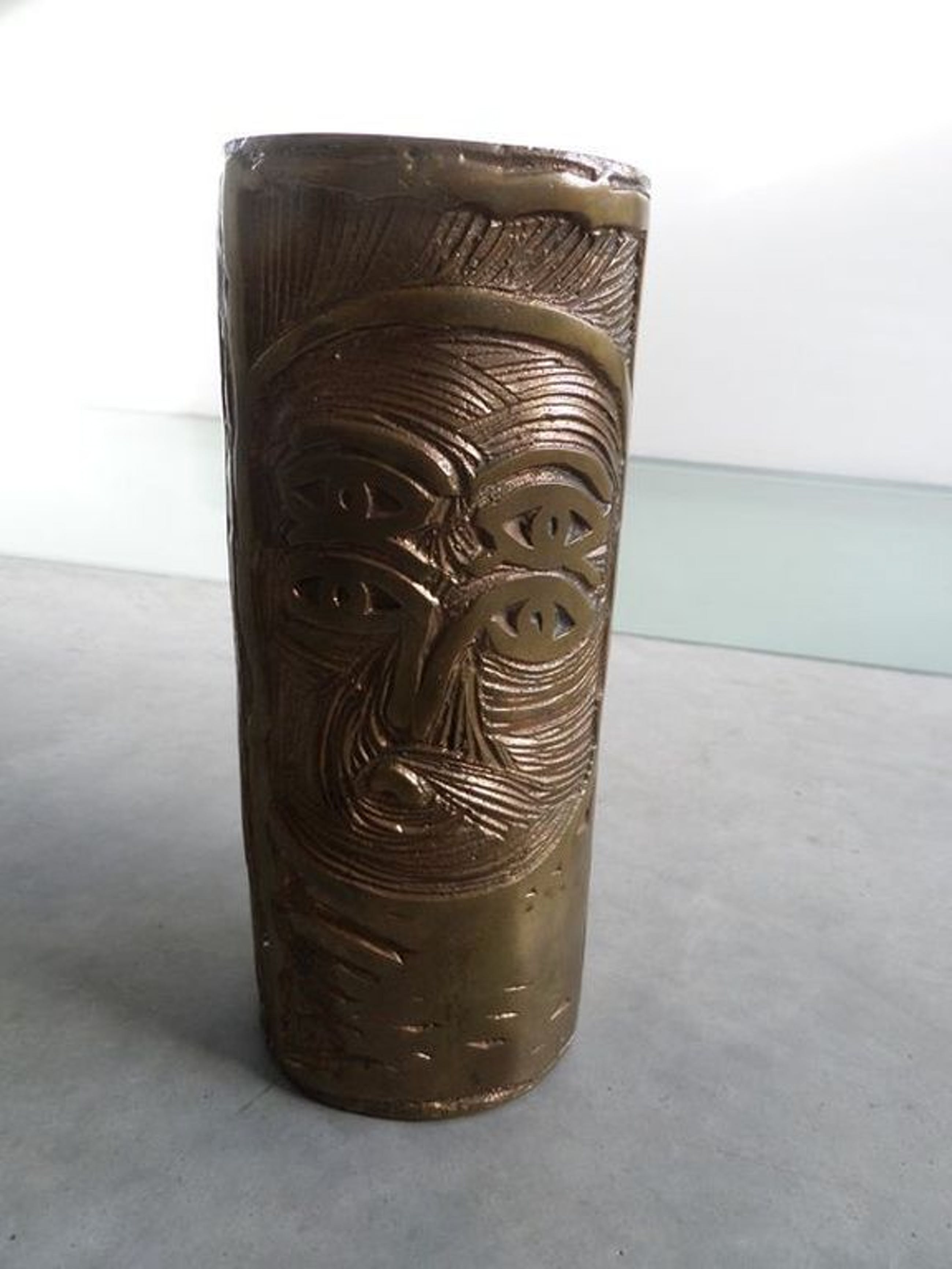 Van de Belgische Cobra kunstenaar Pierre Alechinsky (1927), dit zeer mooie zeldzame bronzen beeld. Het werk is 23 cm hoog en heeft een diameter van ongeveer 10 cm. Het werk is onderop gesigneerd en genummerd 136/150. Waardevol object! Zeer mooie typerende afbeeldingen rondom. Collector's item. Onderop staat ook nog een merkje van de Bronsgieter; "cire valsuani perdue". Het object weegt bijna 3 kilo. vandaar de wat hogere verzendkosten.