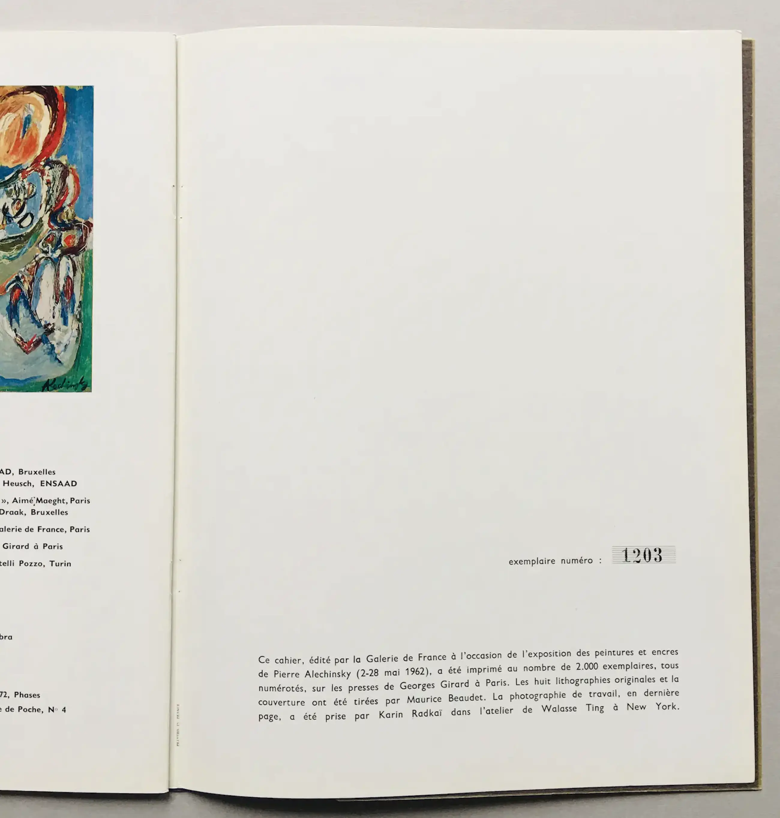 Een bijzonder fraaie catalogus van Alechinsky uit 1962, uitgegeven door Galerie de France. Inclusief 8 originele litho’s. In goede conditie.