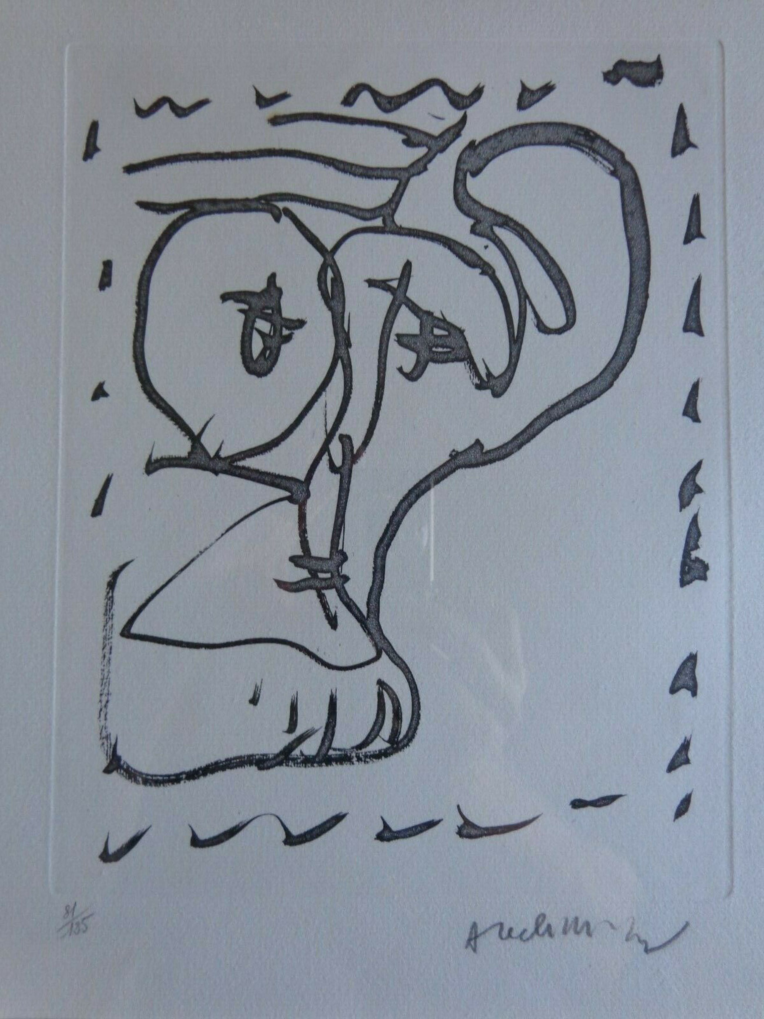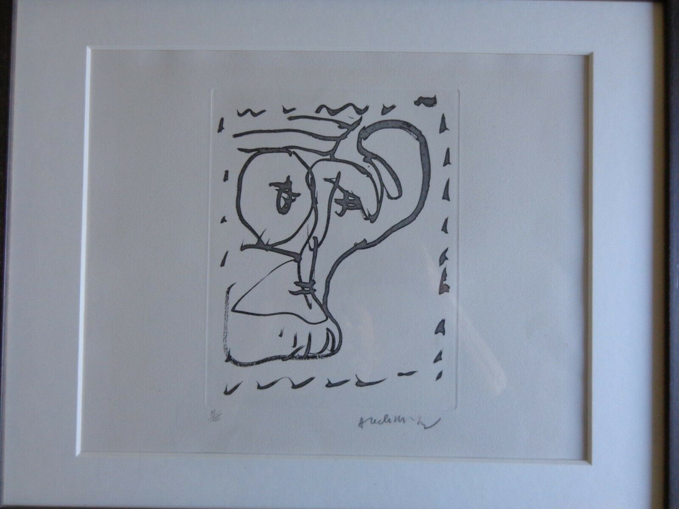 Zwart-wit ets op papier/Eau-forte noir-blanc sur papier.