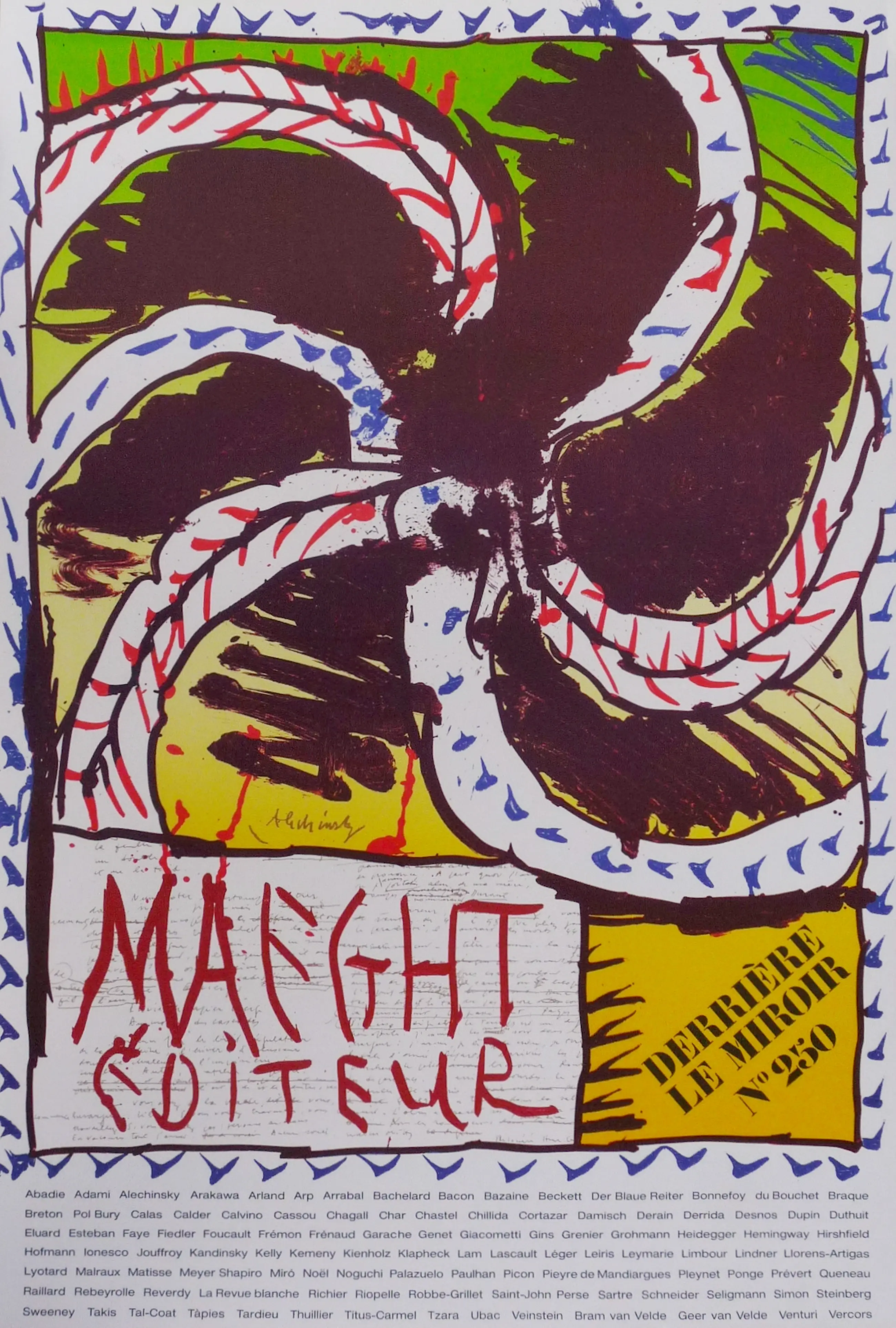 *Fraai lithografisch gedrukt affiche van Pierre Alechinsky gesigneerd in de steen. *Uitgegeven door Galerie Maeght Parijs ter gelegenheid van de 250e uitgave van het tijdschrift DLM (derriere le miroir). * Verzending is aangtekend, verzekerd en goed verpakt.
