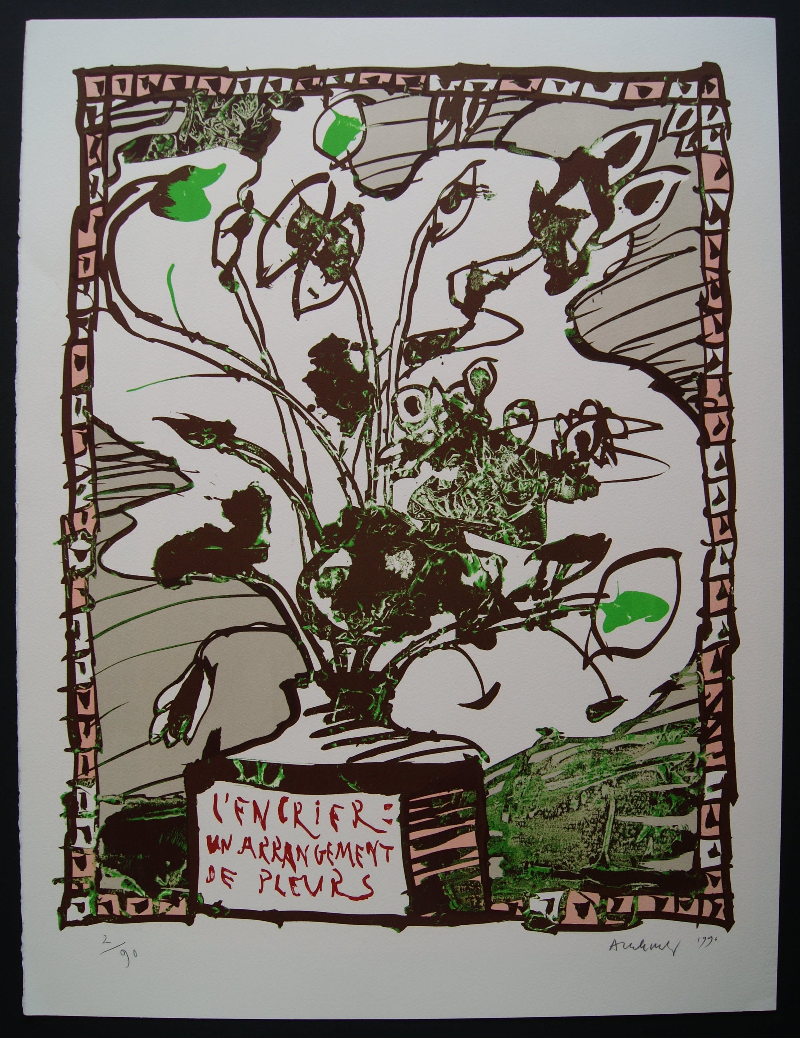 Een fraaie litho van Pierre Alechinsky getiteld 'L’Encriere un arrangement de pleurs'. Het werk is gesigneerd en genummerd, oplage 2/90. De afmetingen zijn: 70 x 53 cm en is in zeer goede conditie.