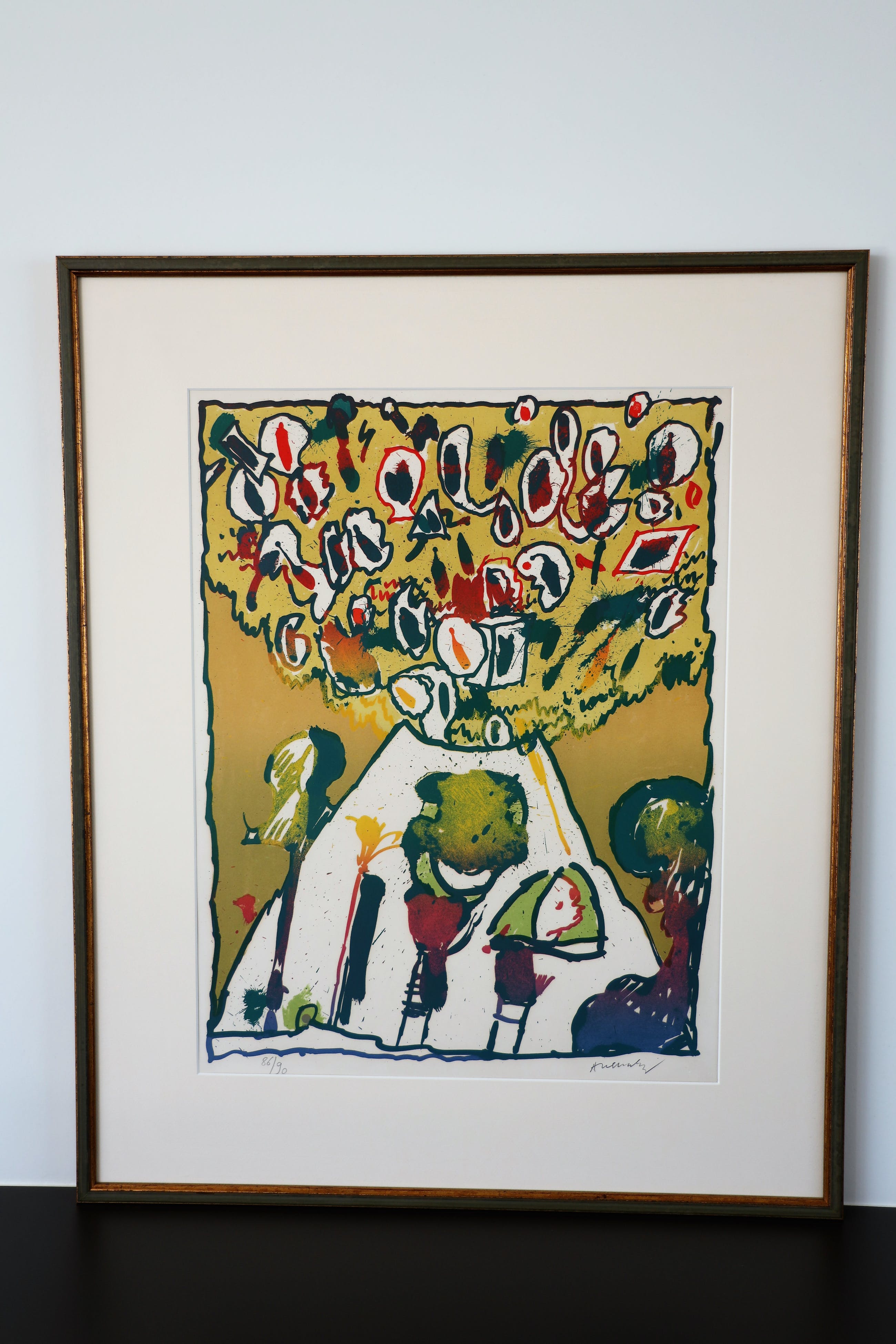 Pierre Alechinsky Litho nr VI uit de reeks van 7 kleurenlitho's "Les Vulcanologies" uit 1970.