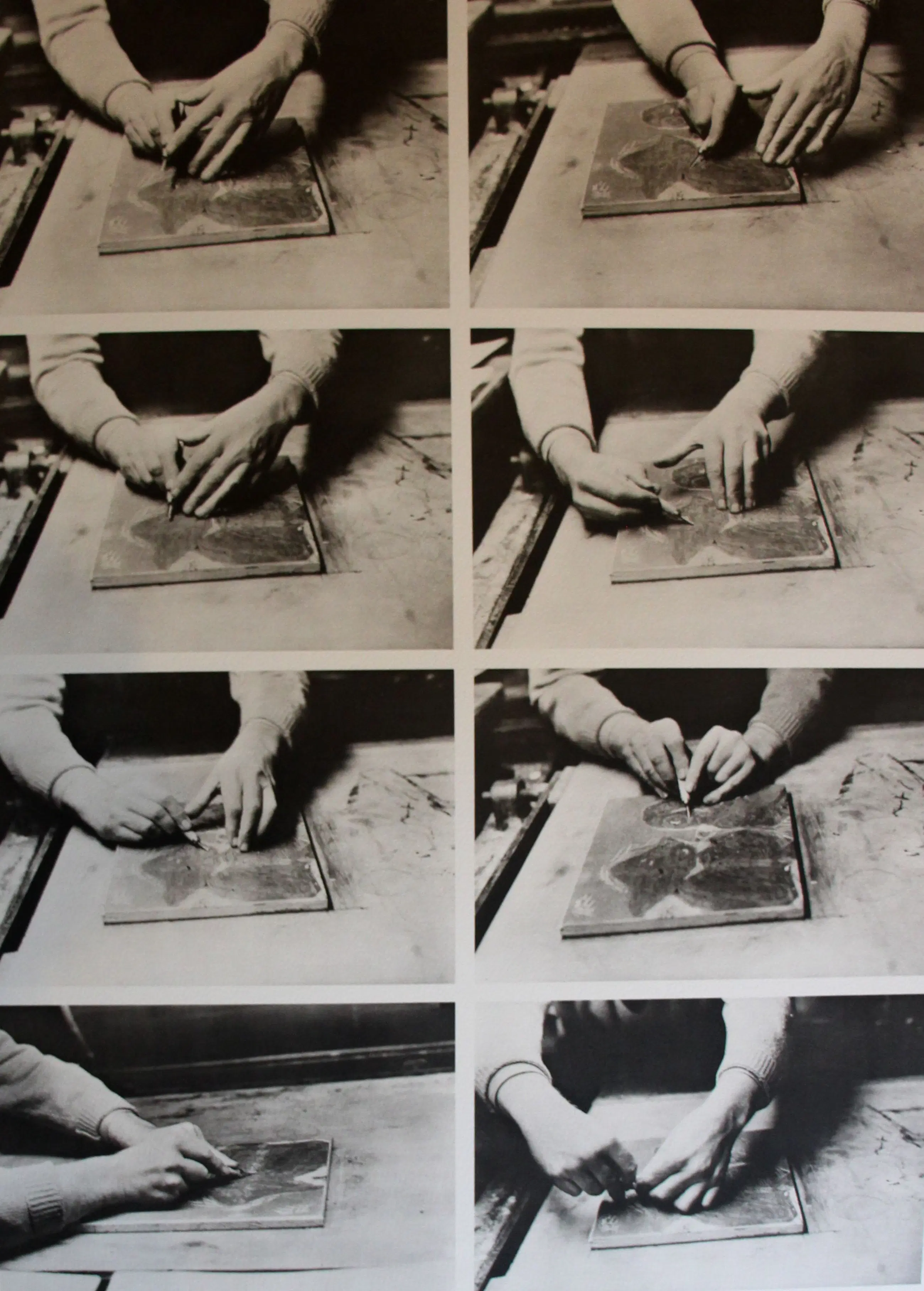 Litho waarop Pierre Alechinsky aan het etsen is. Dit werk komt uit de map: "Pour Jorn" en kom je zelden tegen! Jaar: 1975. Oplage: VIII/XX. Afmetingen blad: H75 x b54cm. Afmetingen voorstelling: H70 x b50cm. Het werk is niet gesigneerd door de kunstenaar.