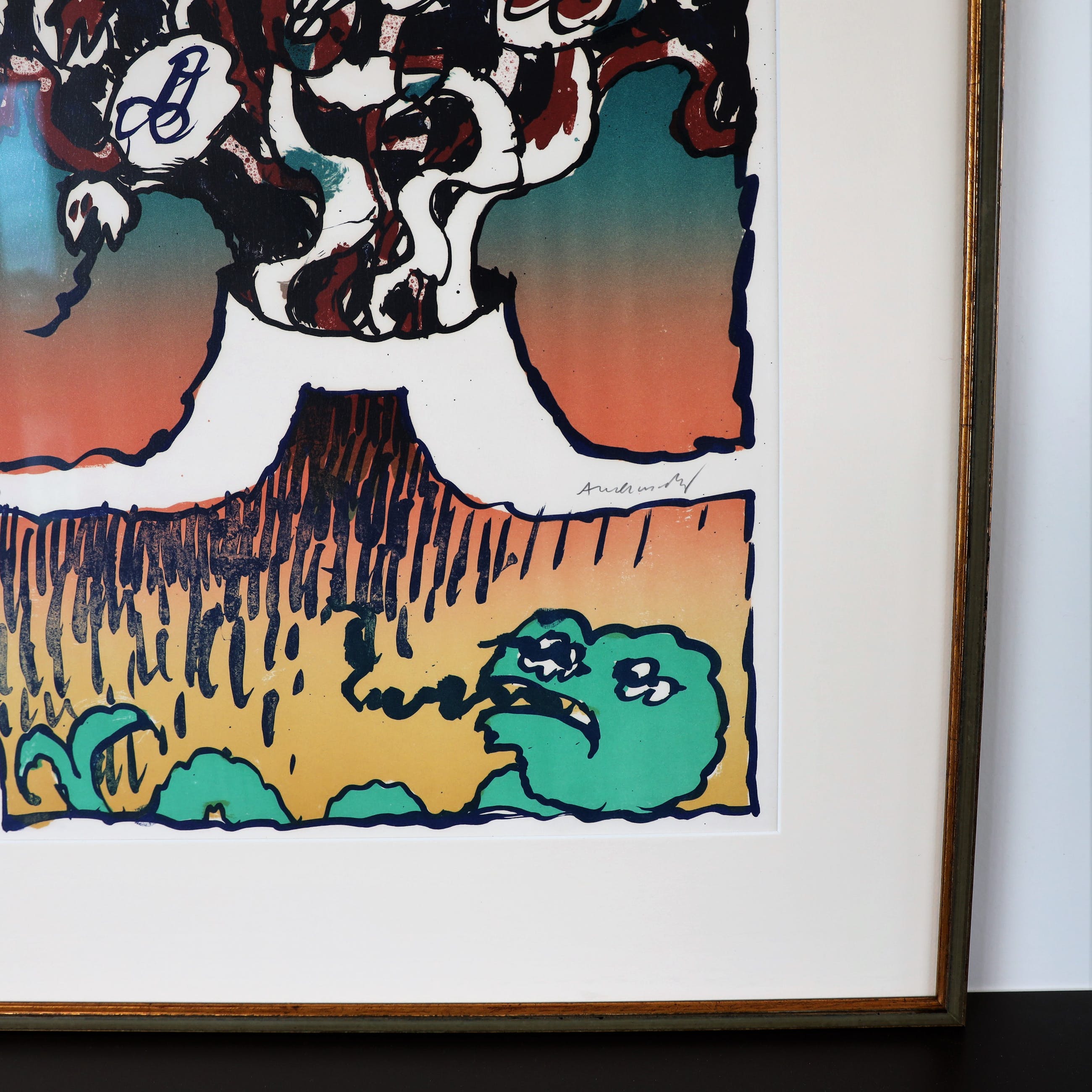 Pierre Alechinsky Litho nr III uit de reeks van 7 kleurenlitho's "Les Vulcanologies" uit 1970.