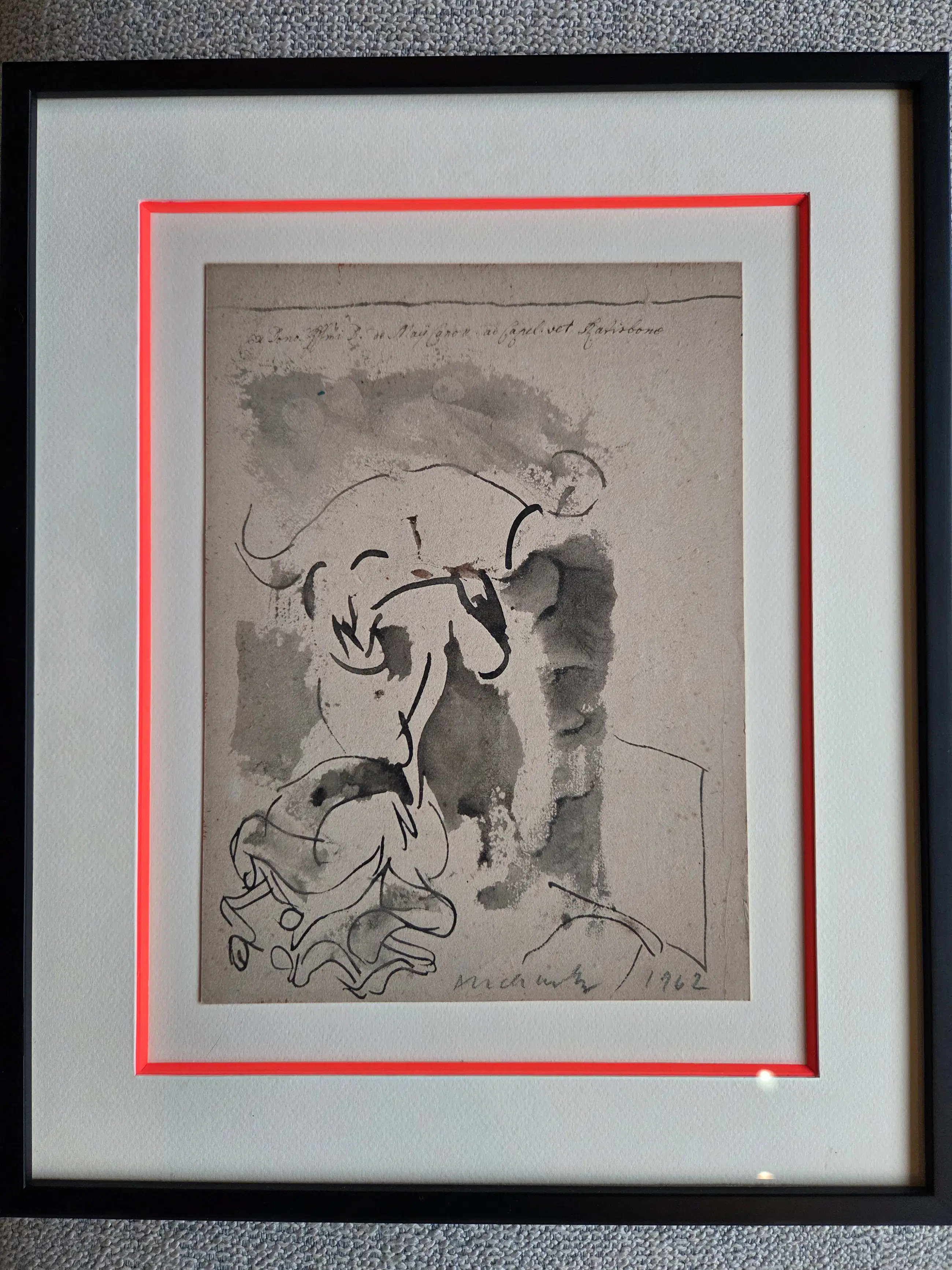 Minautore. Werk uit 1962. Professioneel ingekaderd. Uv werend. Inkt op papier. Uniek, origineel topwerk. Handgesigneerd.