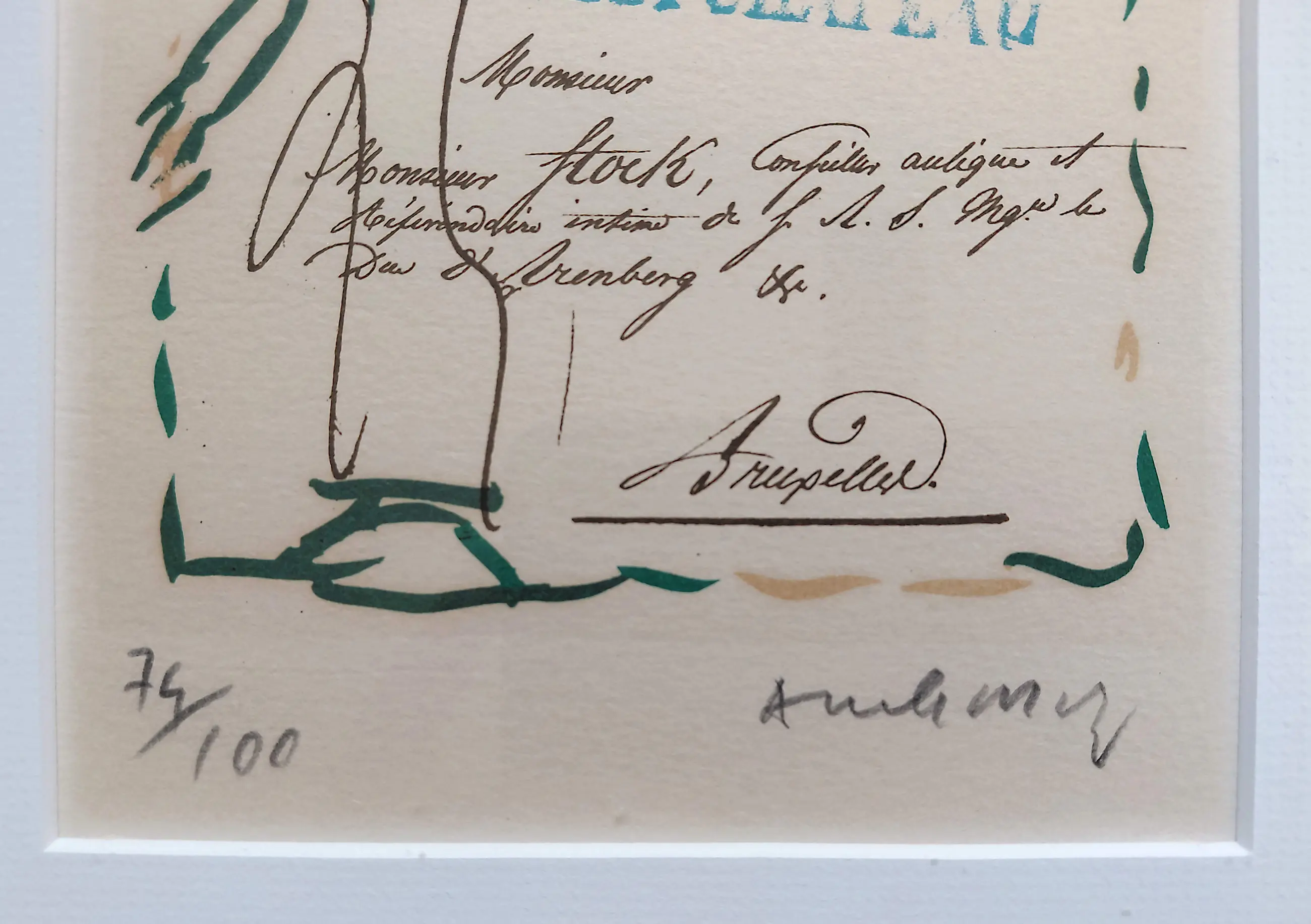 Enigszins verkleurd binnen het passe-partout.