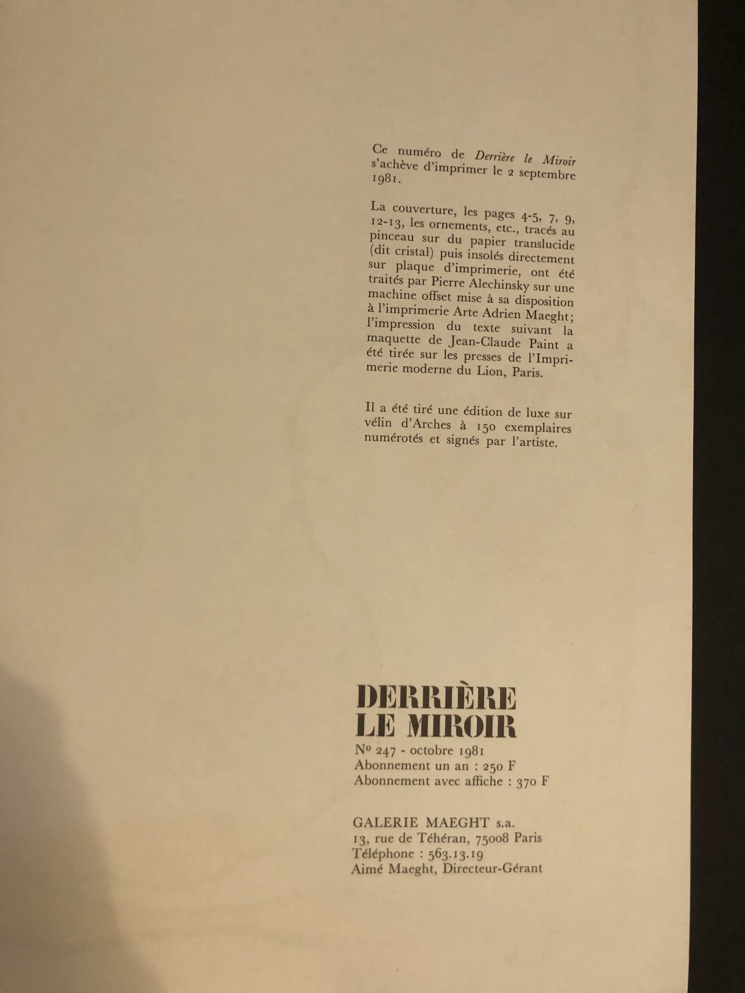 Derriere le Miroir No 247, octobre 1981, Galerie Maeght, Paris