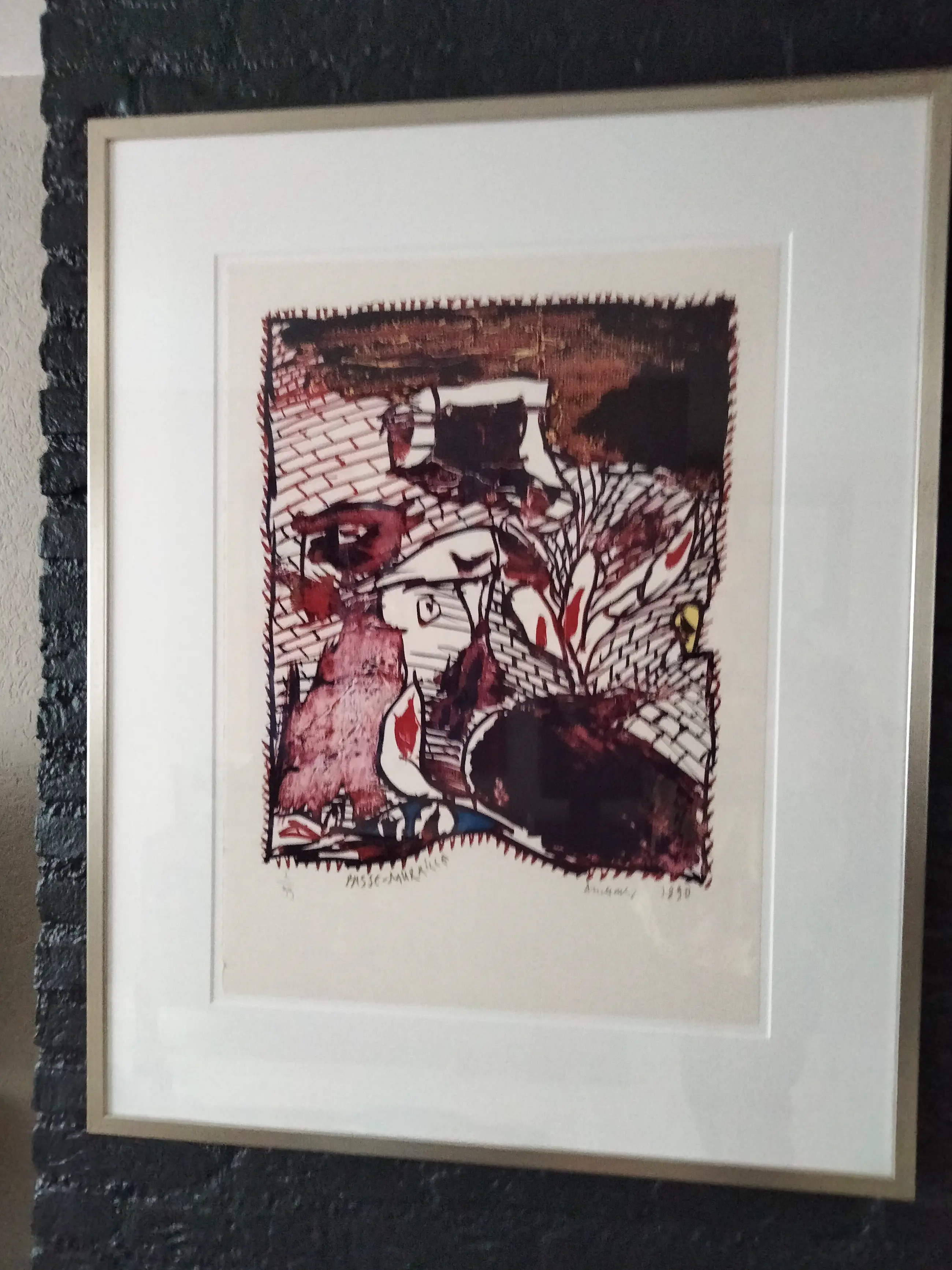 Fraaie litho van Pierre alechinksky uit 1990 getiteld:passe muraille. Zeer mooi en strak ingelijst ophangklaar. Oplage nummer:2/99