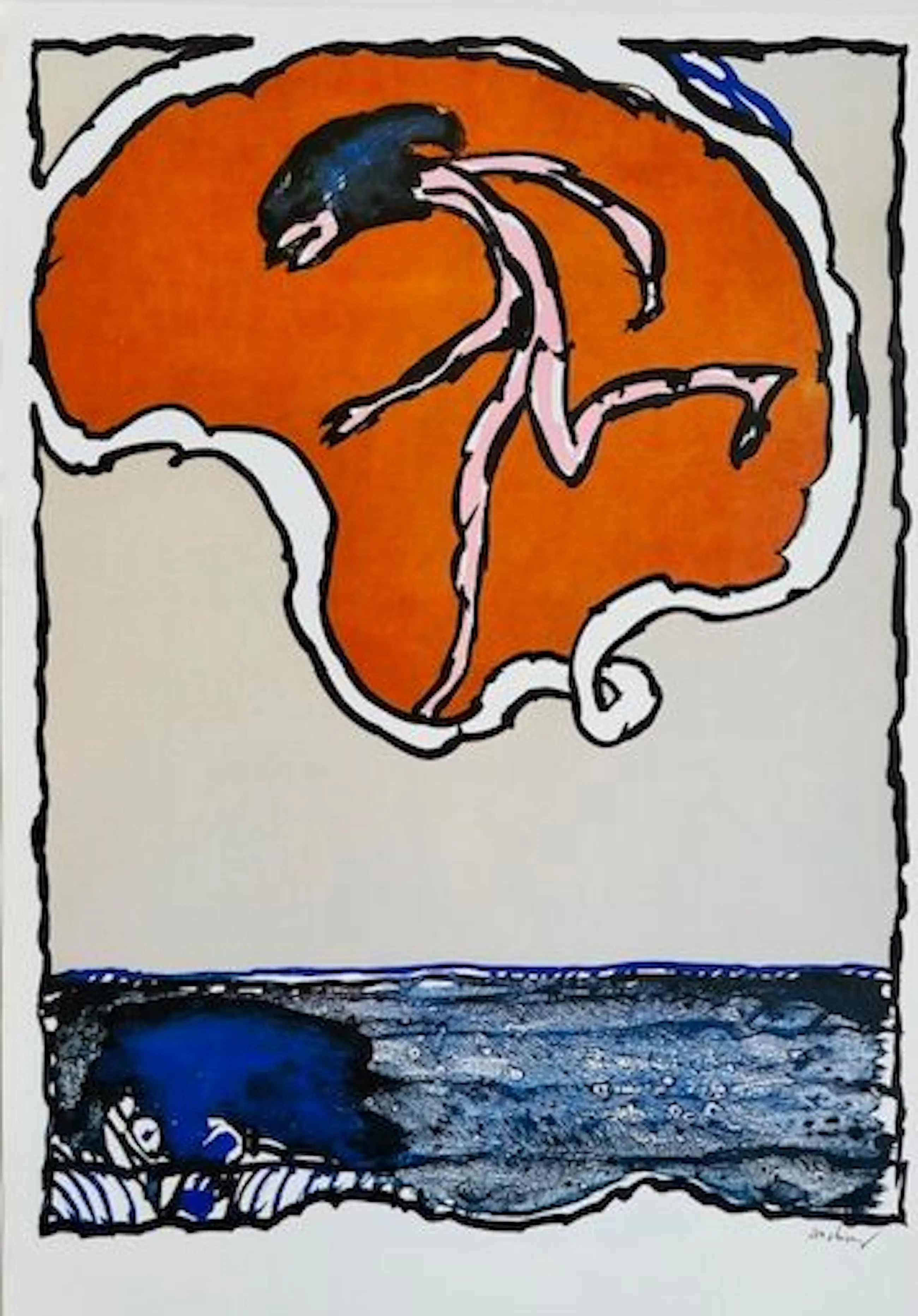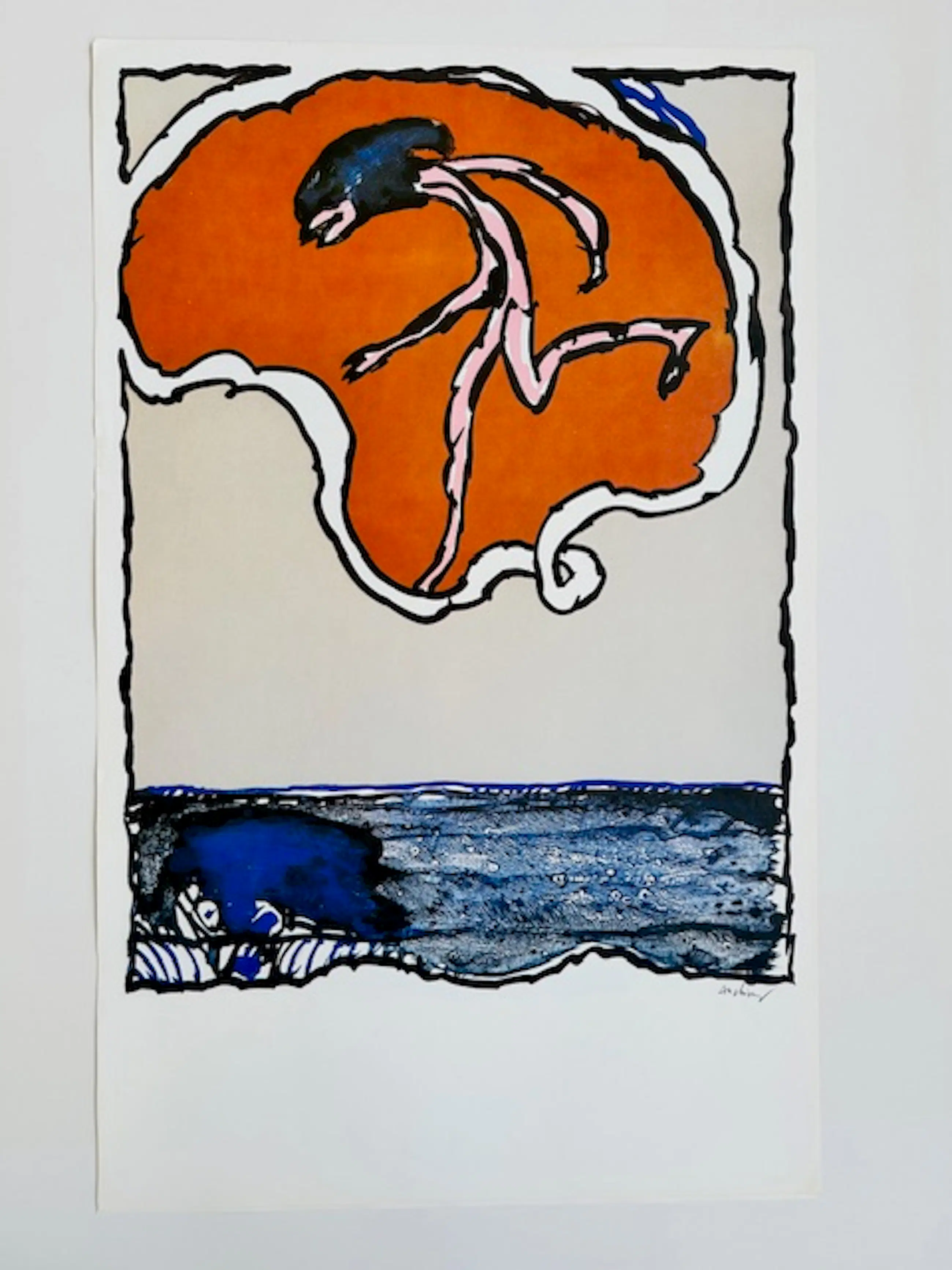 Expressionistisch werk van Cobra-kunstenaar Pierre Alechinsky. Promotie lithografie voor de Detroit serie Flying Object. Drukgesigneerd. Het werk is gedrukt op offset papier en in zeer goede staat. Het werk kunt u vooraf komen bekijken en beoordelen. Het werk kan na aankoop afgehaald worden bij galerie Rotor in Gorcum of verzonden worden per post. Ophalen is leuker dan drinken we gelijk koffie. Wie van architectuur houdt mag een bezoek aan ons rijksmonument ook zeker niet overslaan. Een pand vol kunst en een ware beleving. Het historische stadje Gorcum, met de grootste intact zijnde vesting en met daarin het Gorcums Museum met een goede reputatie op het gebied van hedendaagse kunst zijn op loopafstand te bereiken.
