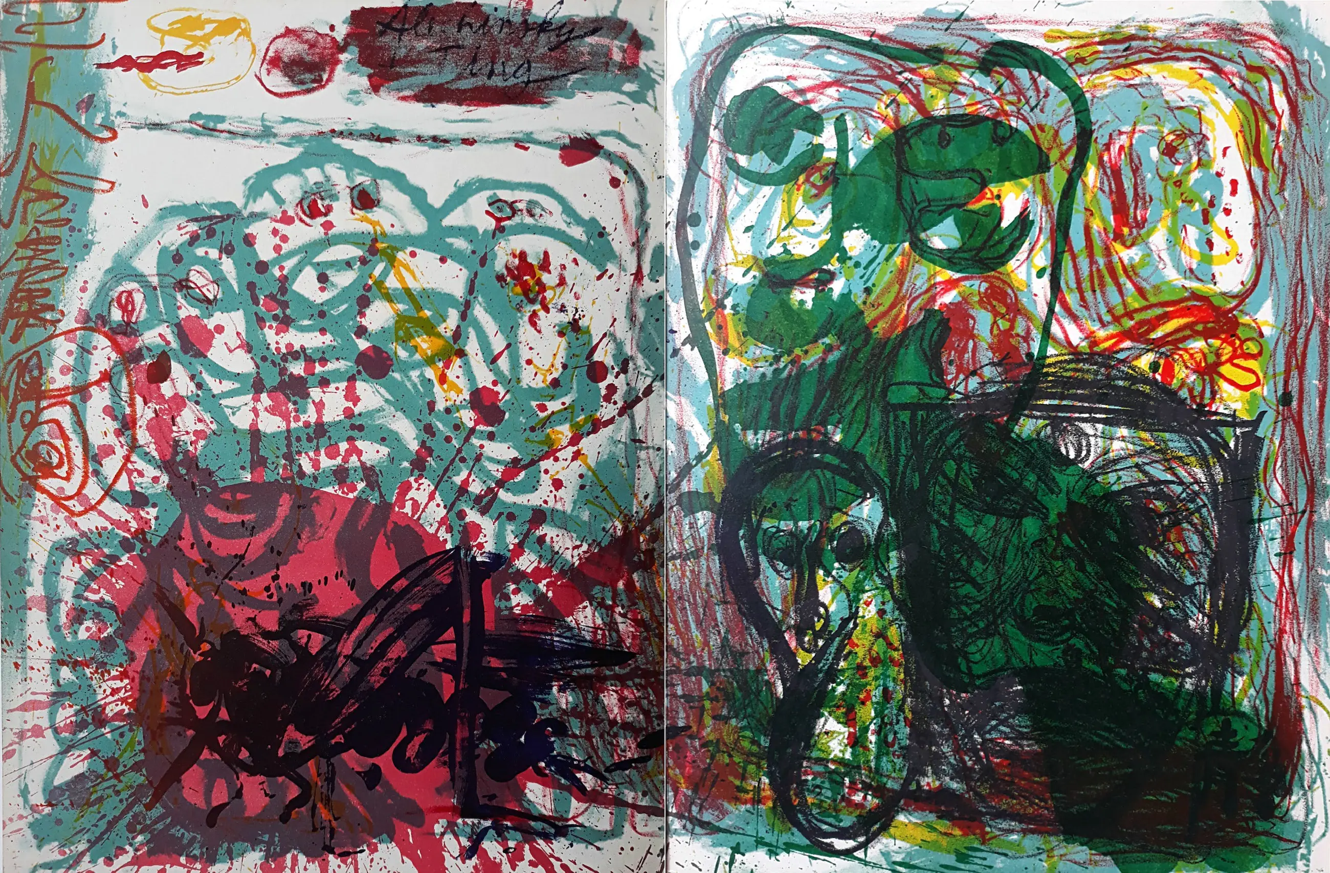 De publicatie bevat foto’s van werk van de kunstenaars bij een tekst van Pierre Alechinsky. Het werd uitgegeven in een oplage van 2200, dit is exemplaar 1032. In uitstekende conditie. Literatuur: Pierre Alechinsky - The Complete Books, nr. 316.