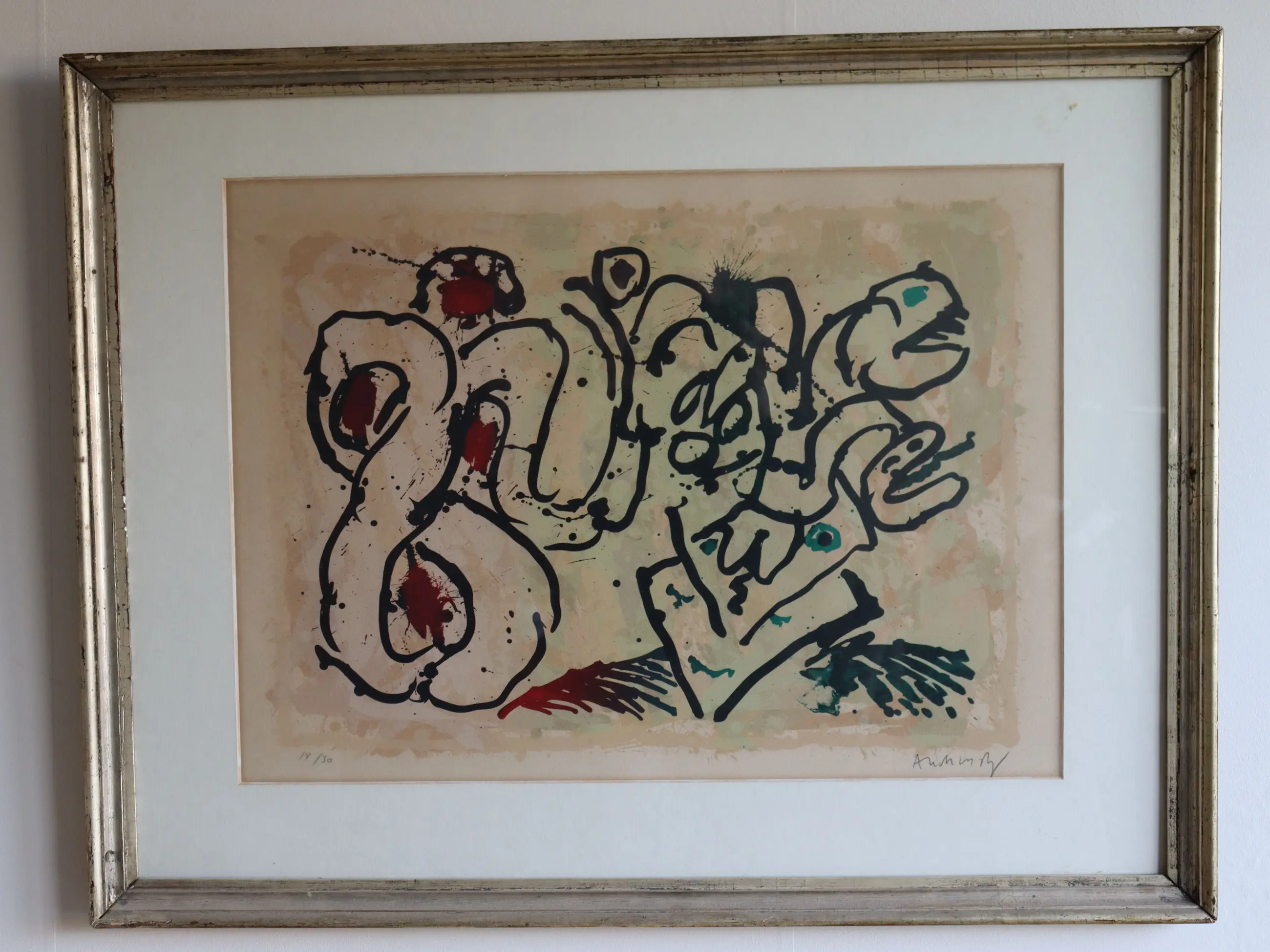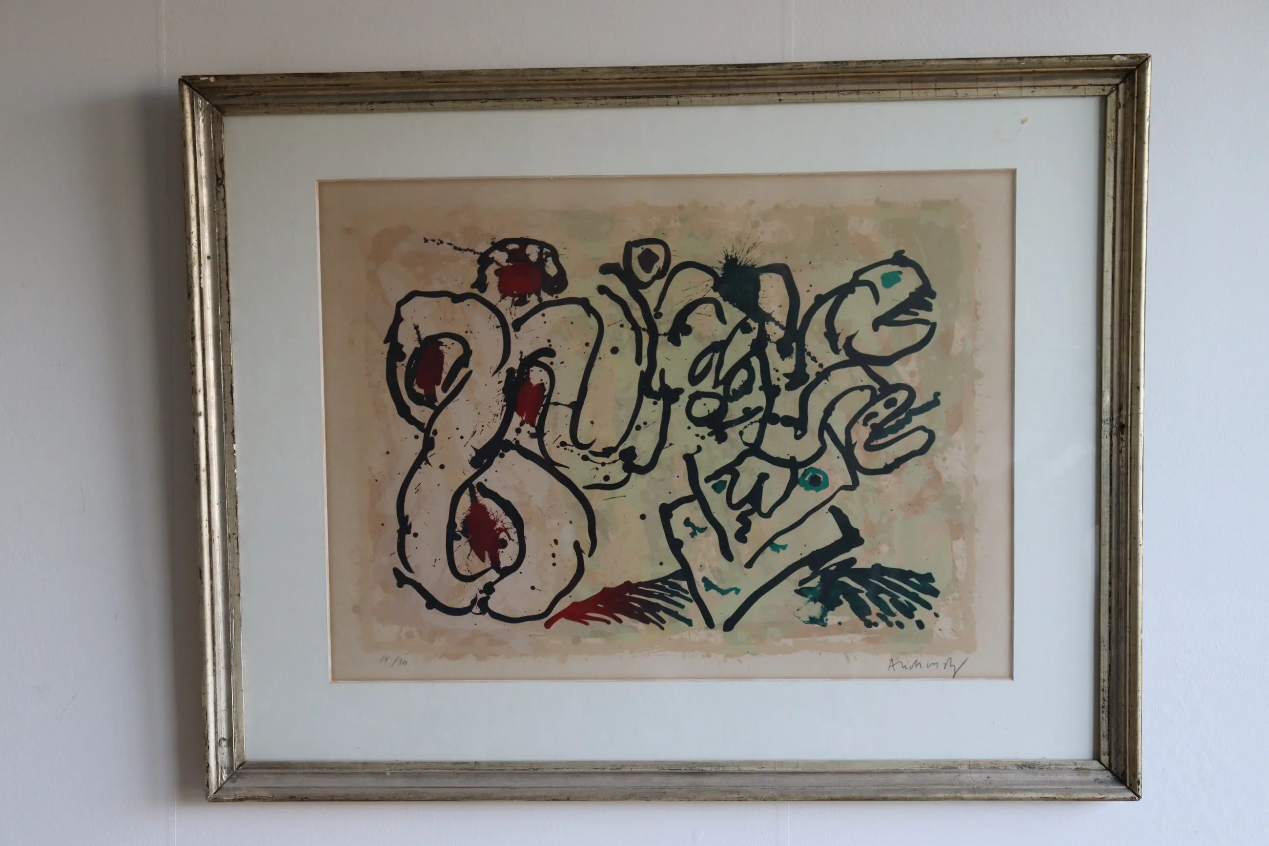 Lytho 14/30 Pierre Alechinsky (Cobra), gekocht in parijs (Gallery André Cheneu & Fils) 1967 Goede staat, in originele lijst
