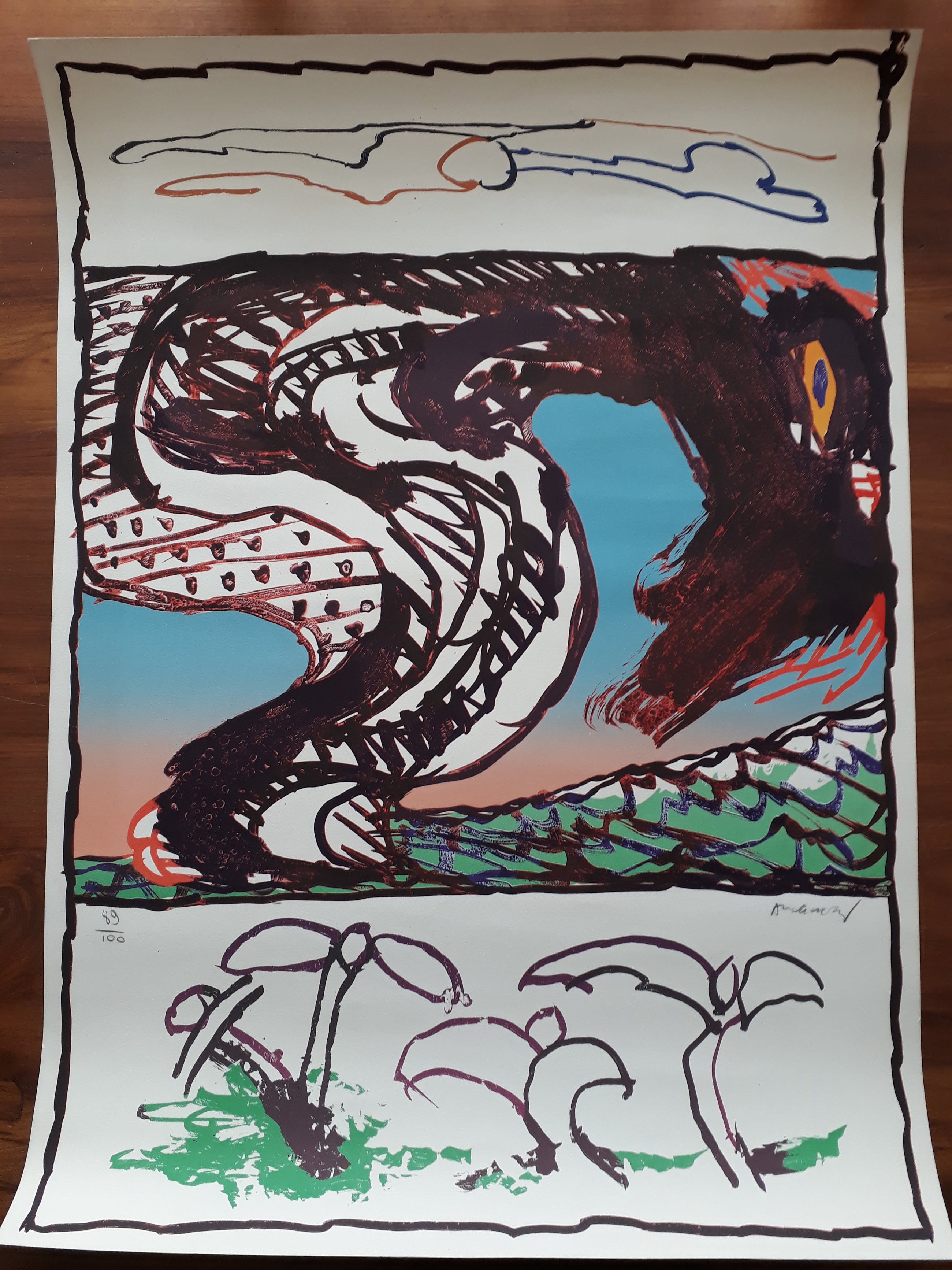 Zeer grote en in nieuwstaat verkerende litho van Pierre Alechinsky getiteld:Trondheim Uitgegeven in 1977 door Galeri Riis Trondheim Noorwegen. Wordt zelden aangeboden Niet te verwarren met het affice van galeri Riis, de tentoonstelling van Alechinsky in Trondheim van 6 oktober tot 29 oktober 1977.