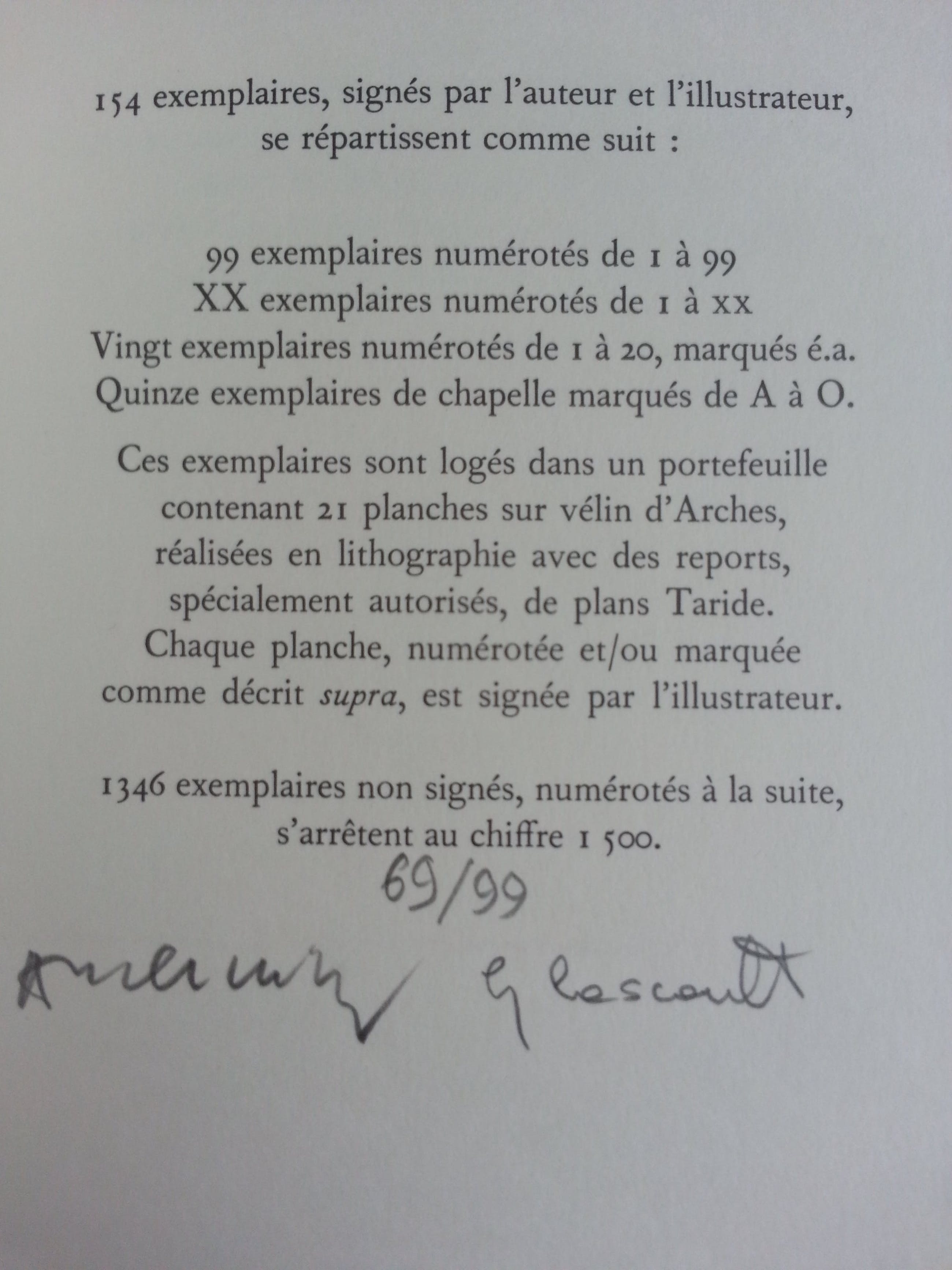 Boek gesigneerd door lascault en Alechinsky en genummerd 69/99