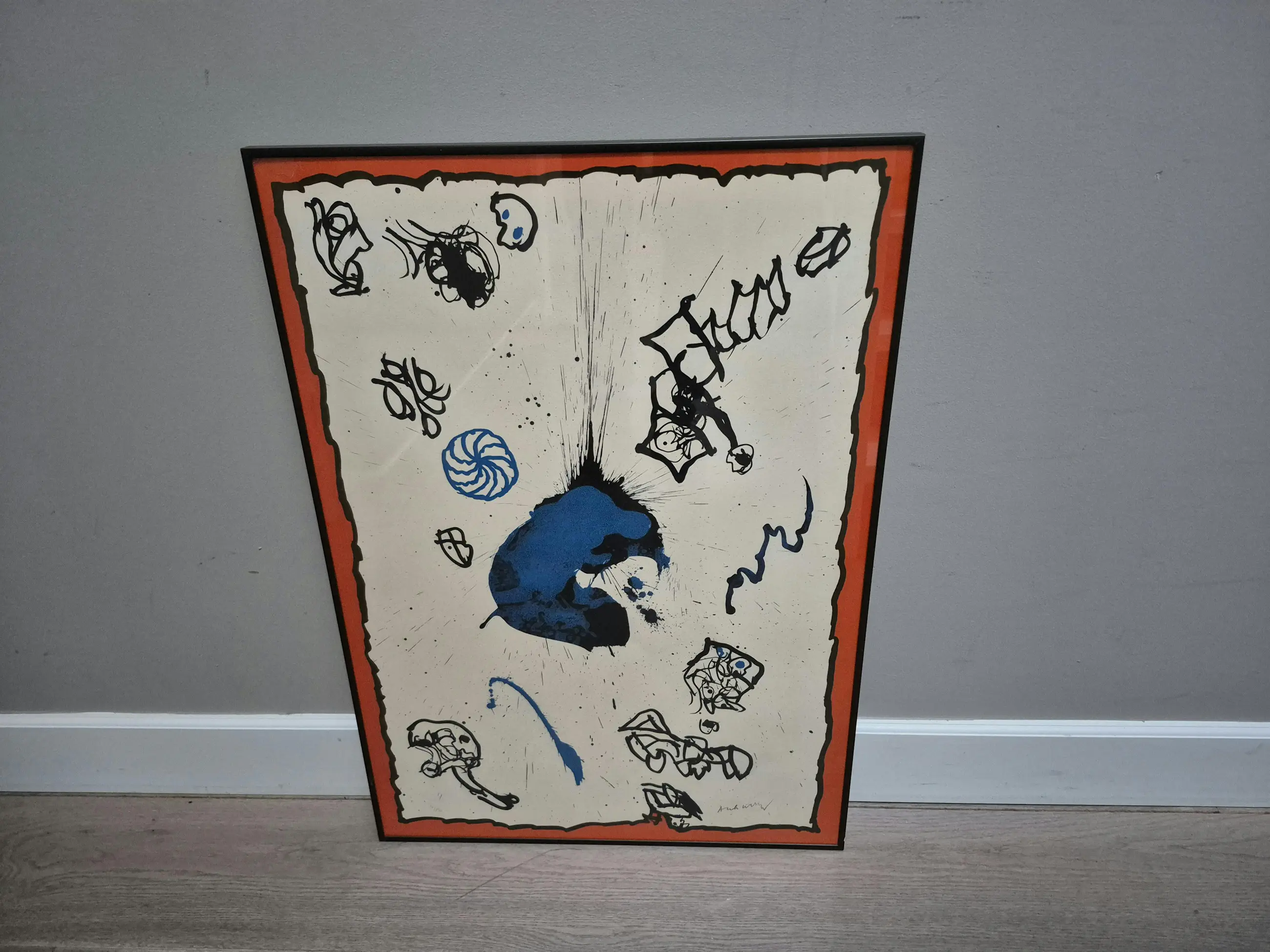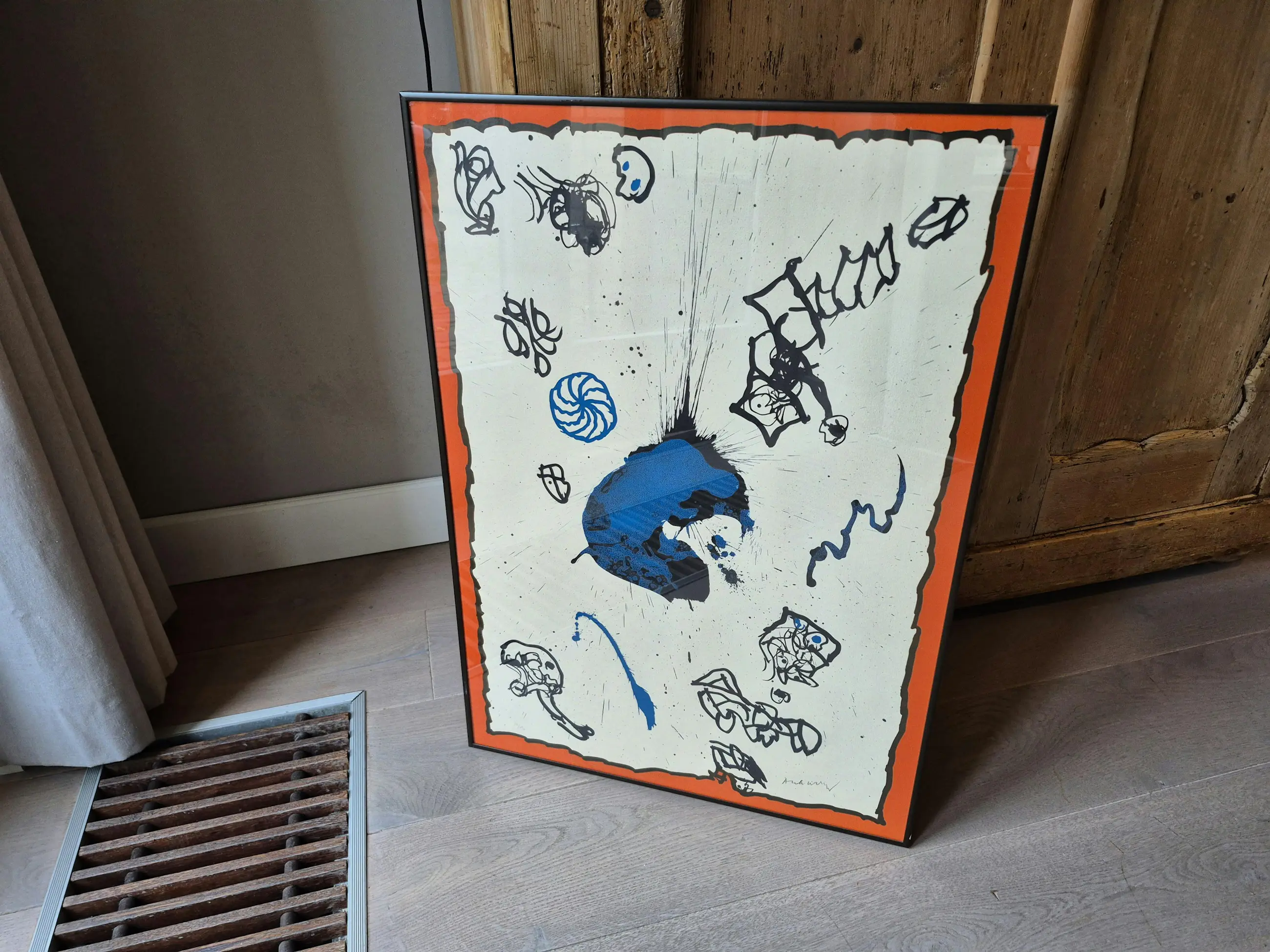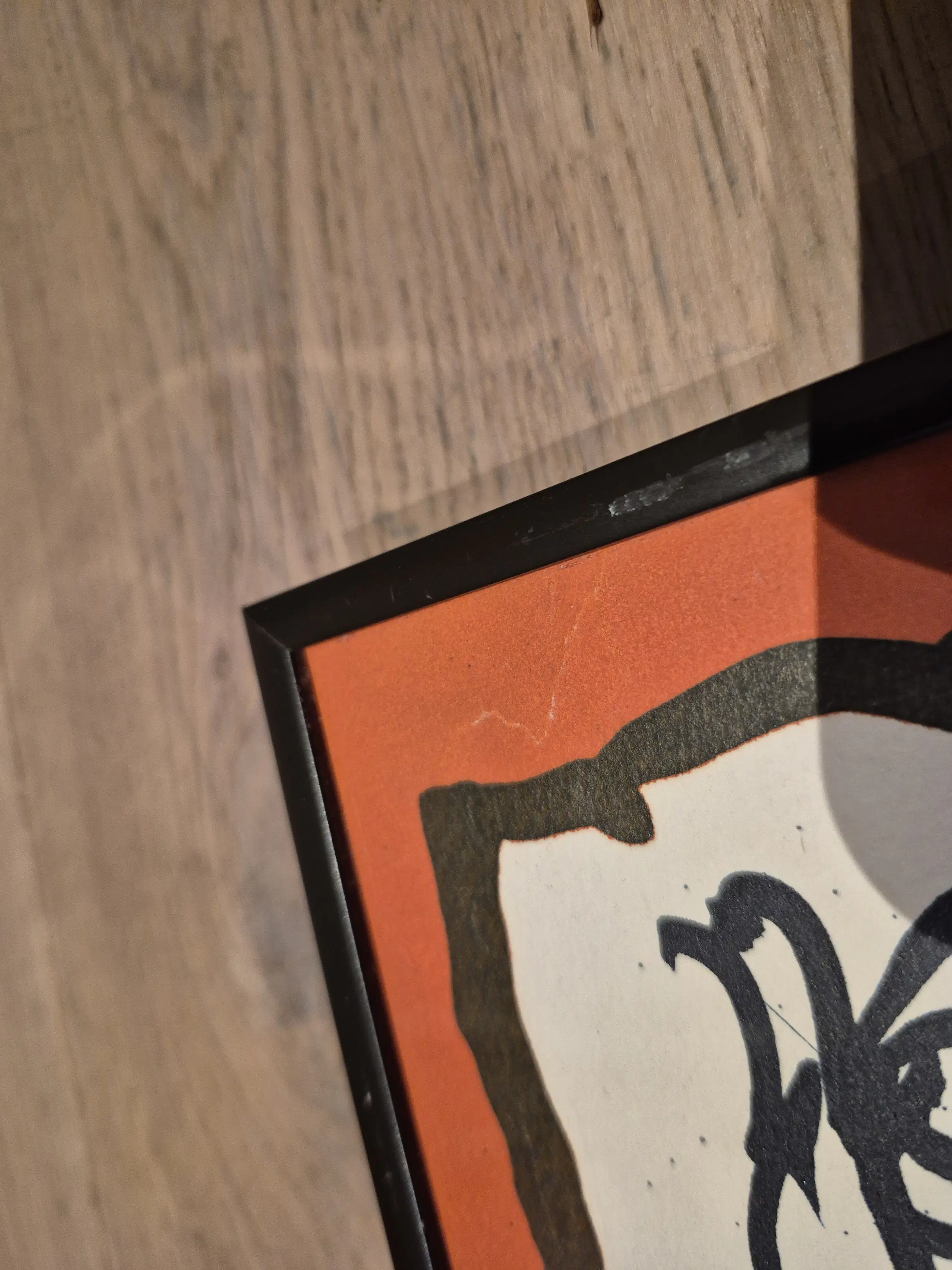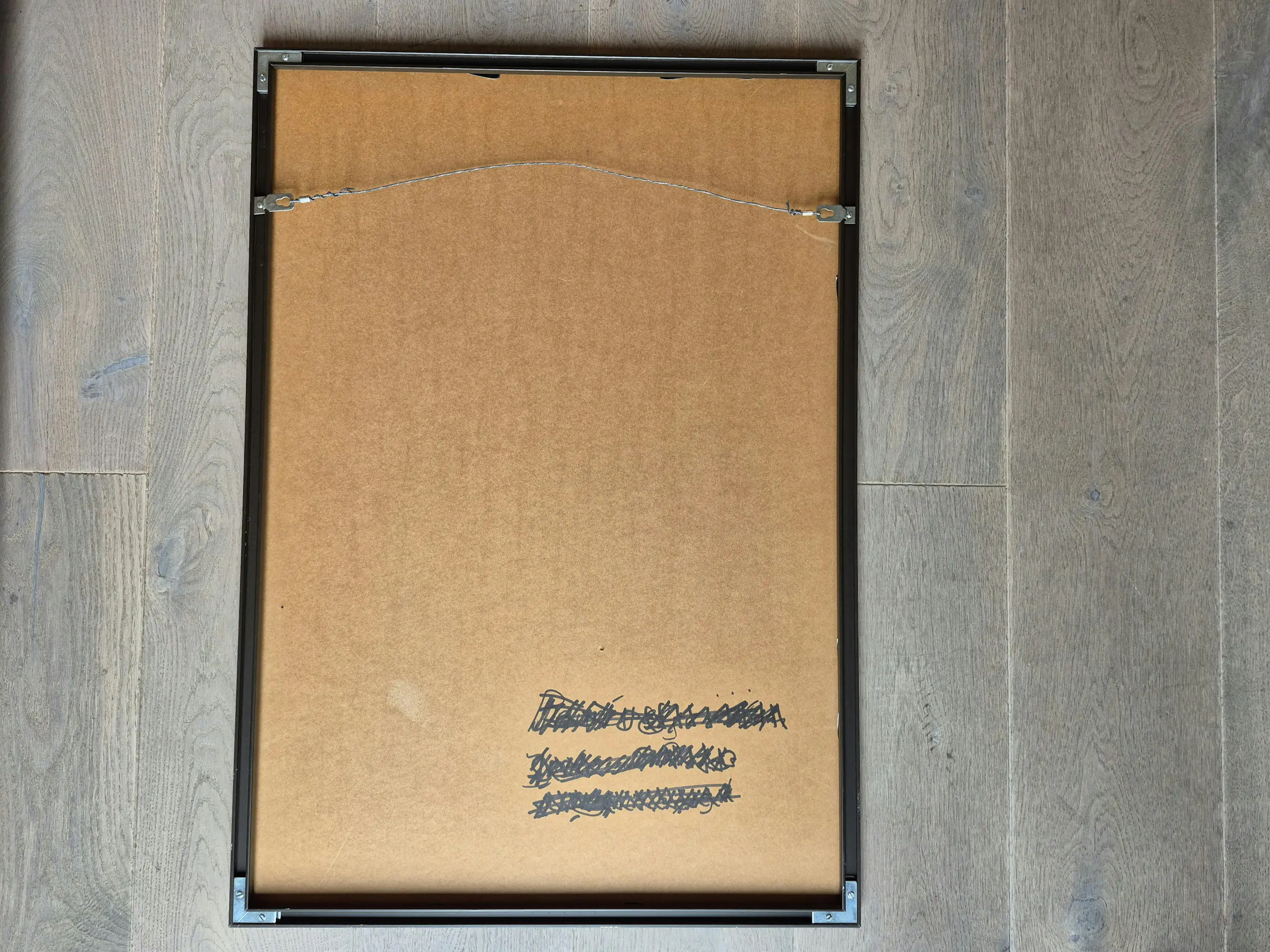 | Het werk is in goede staat (lichte kreuk, zie laatste foto) en netjes ingelijst. | |||||||||||