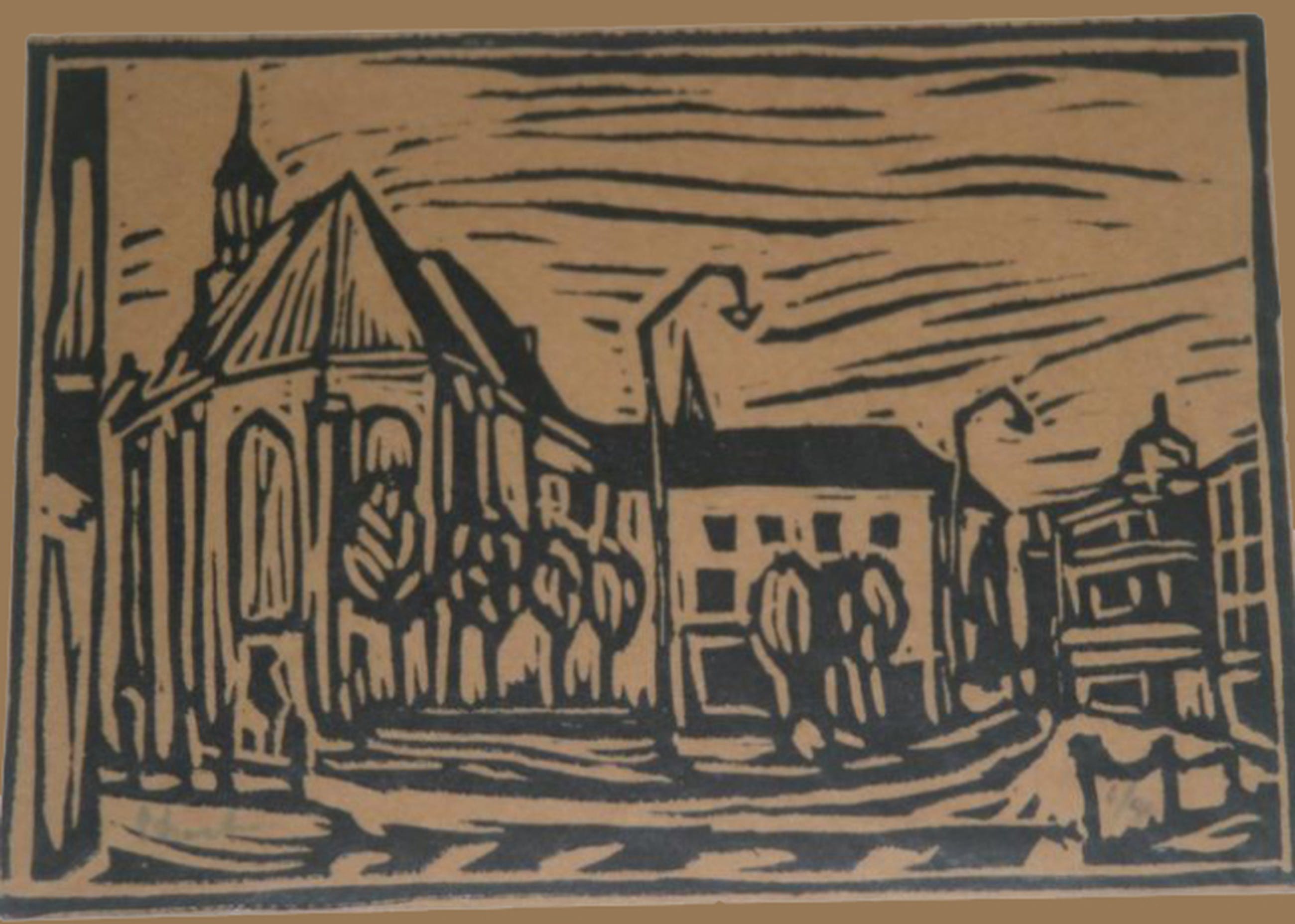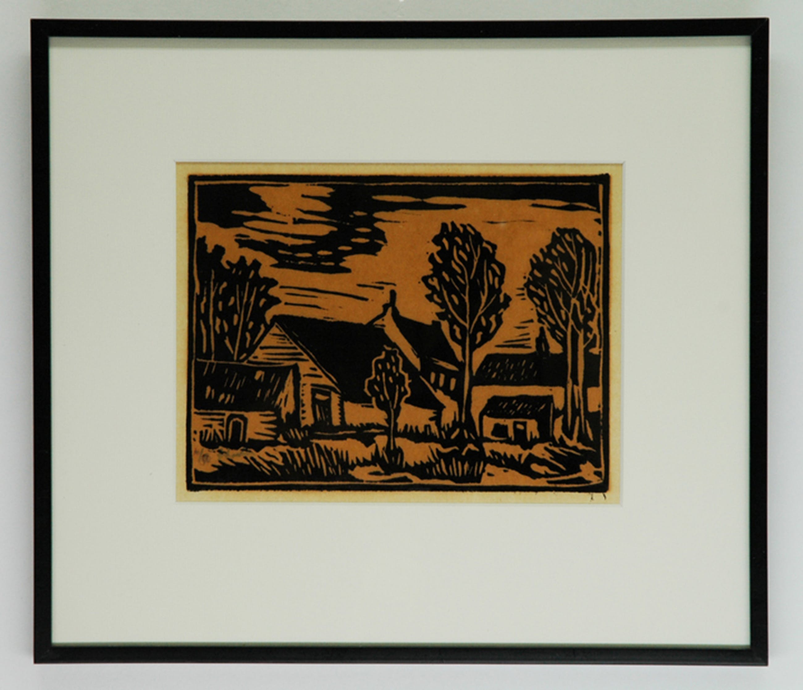 De drie linosneden zijn professioneel ingelijst met zuurvrij passepartoutkarton in een zwarte, houten lijst