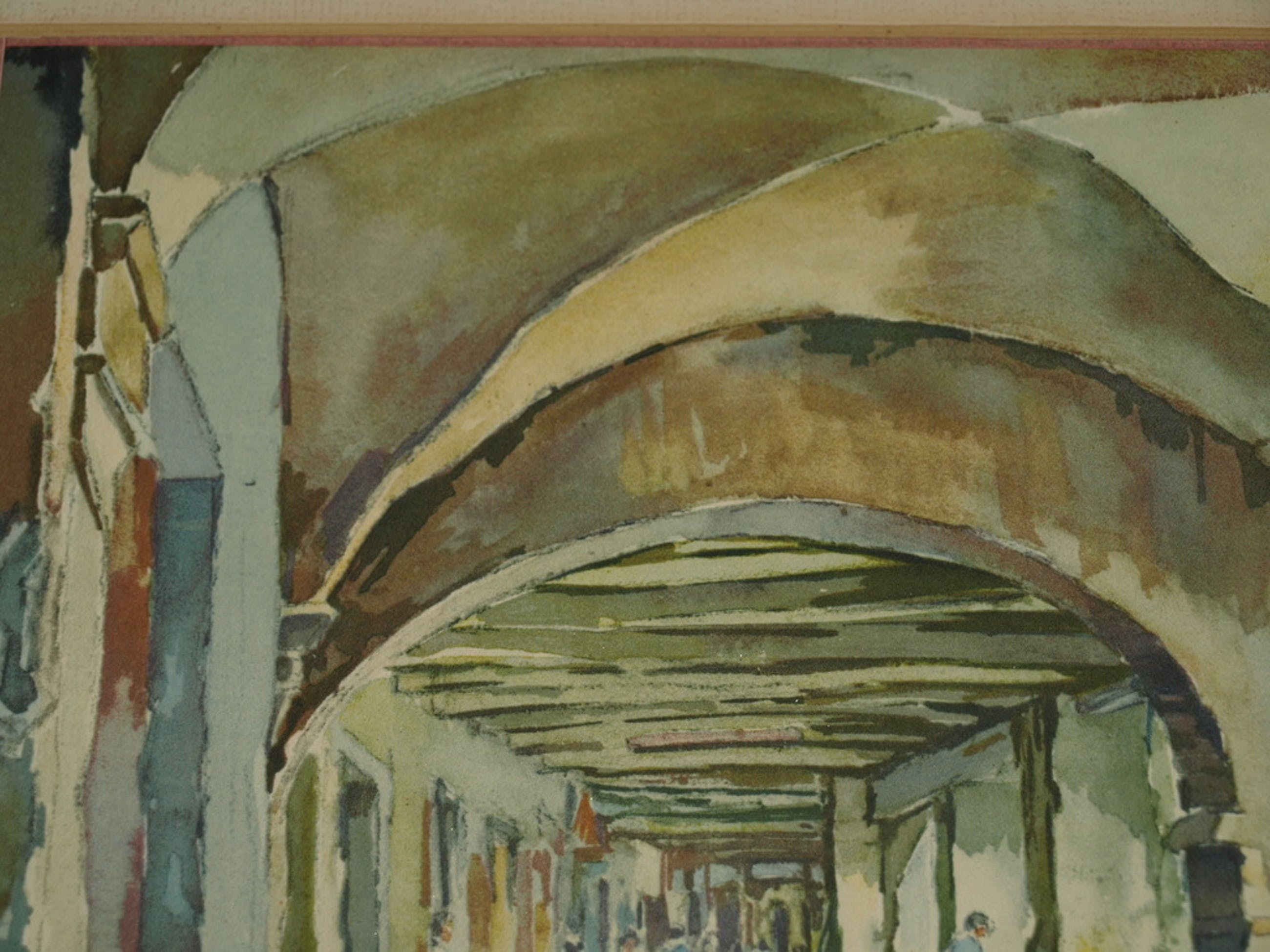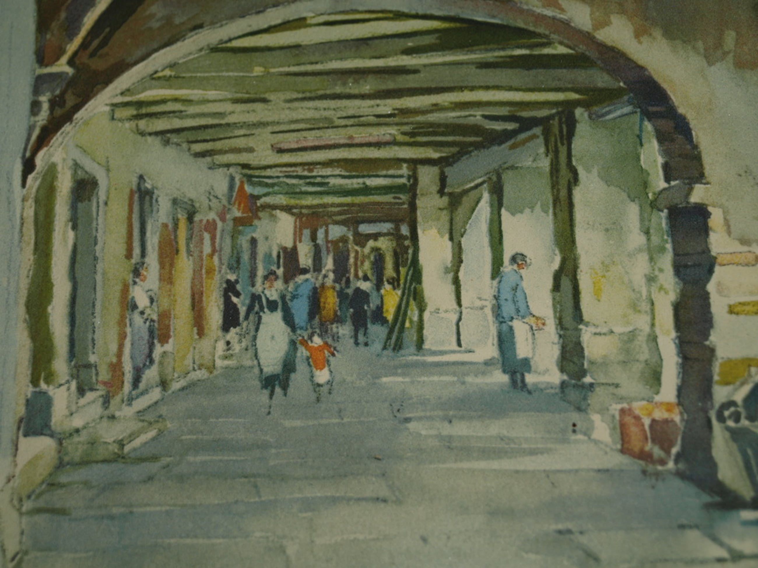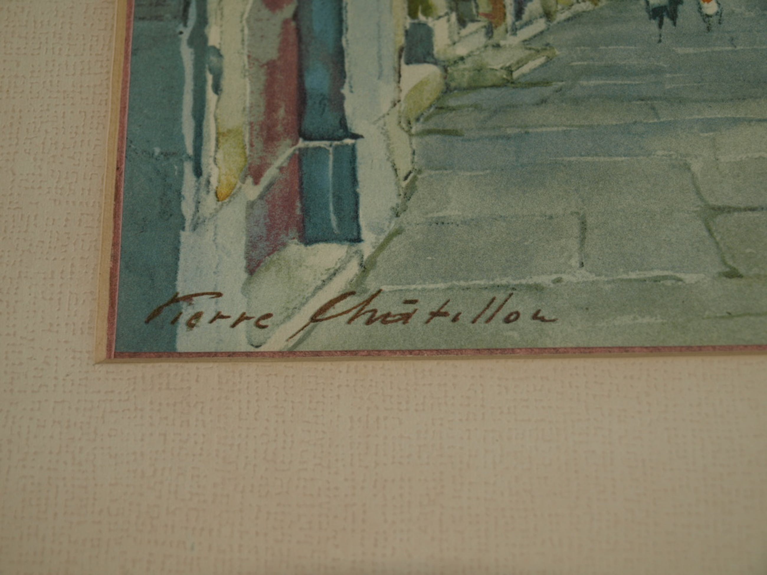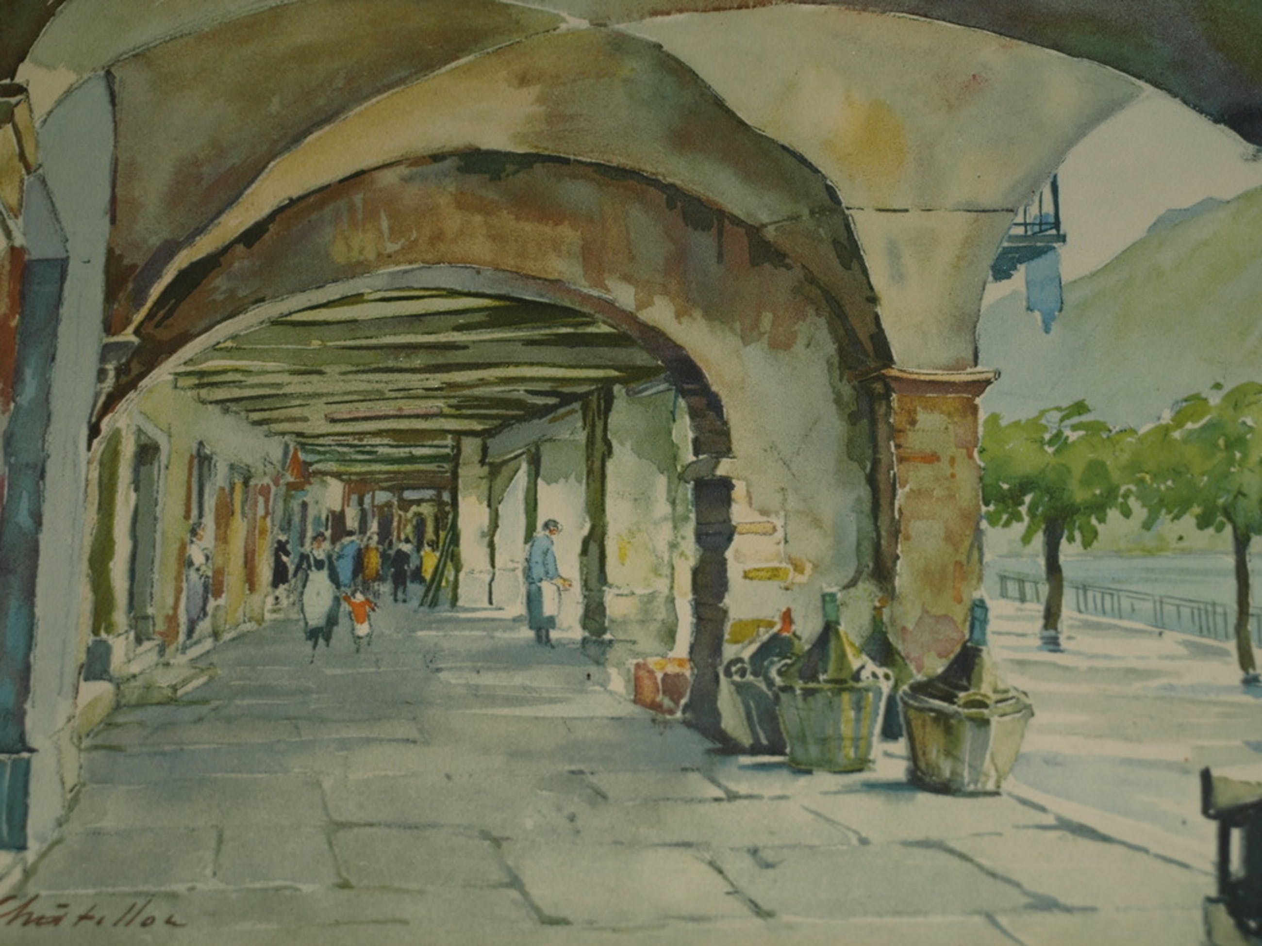 Een sfeervolle lithografische druk van de Zwitserse kunstenaar Pierre Chatillon naar een aquarel van hem uit ca 1945.