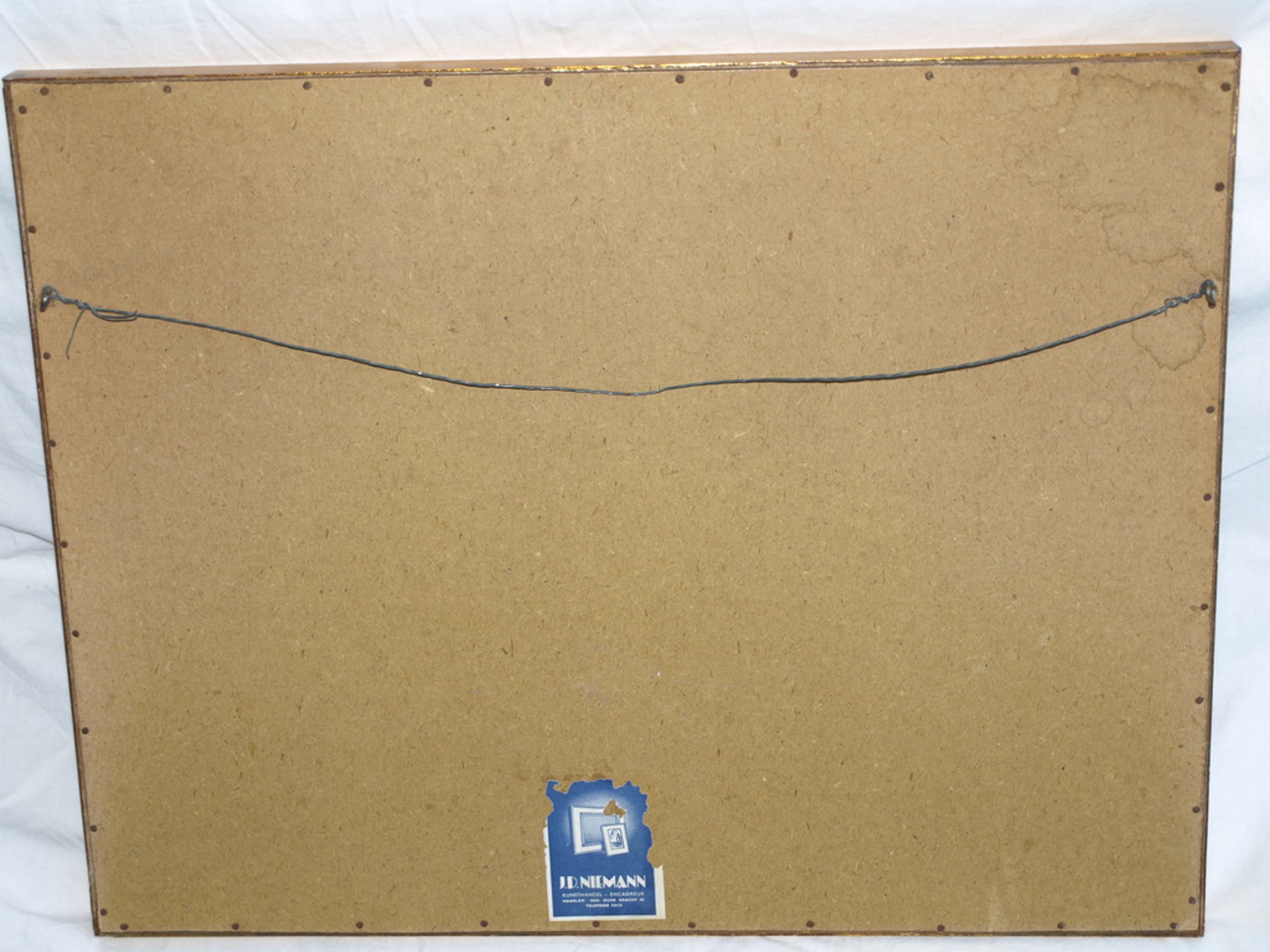 Ingelijst: In een houten lijst met passe-partout en glasplaat. Ingelijst door Kunsthandel J. D. Nieman, Haarlem (staat vermeld op de achterkant).
