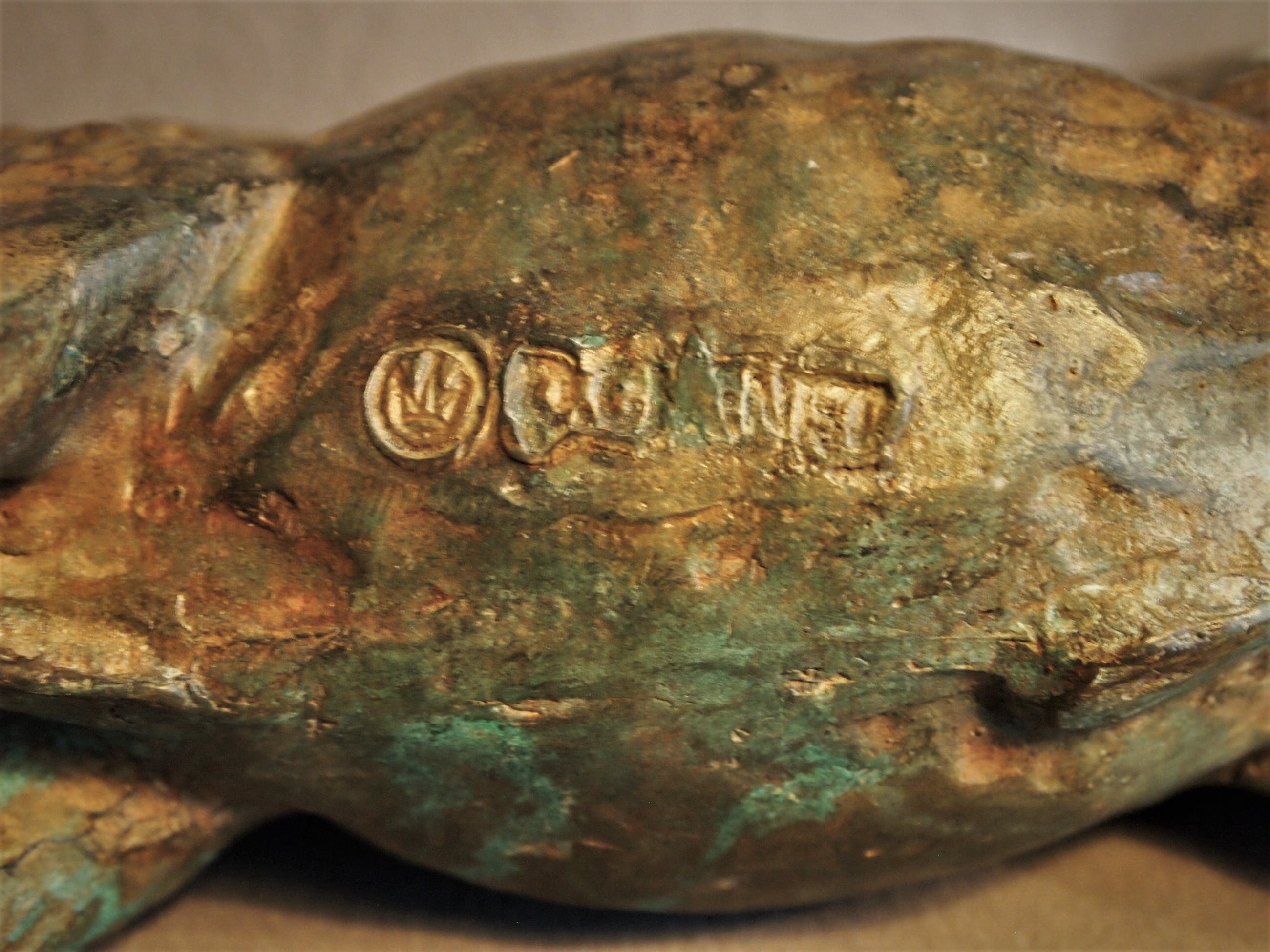 As with all Chenet,s sculptures, this one is very nicely detailed in every way. It's signed with the unmistakable Pierre Chenet "Crown" foundry stamp and the "P. CHENET" signature as well.