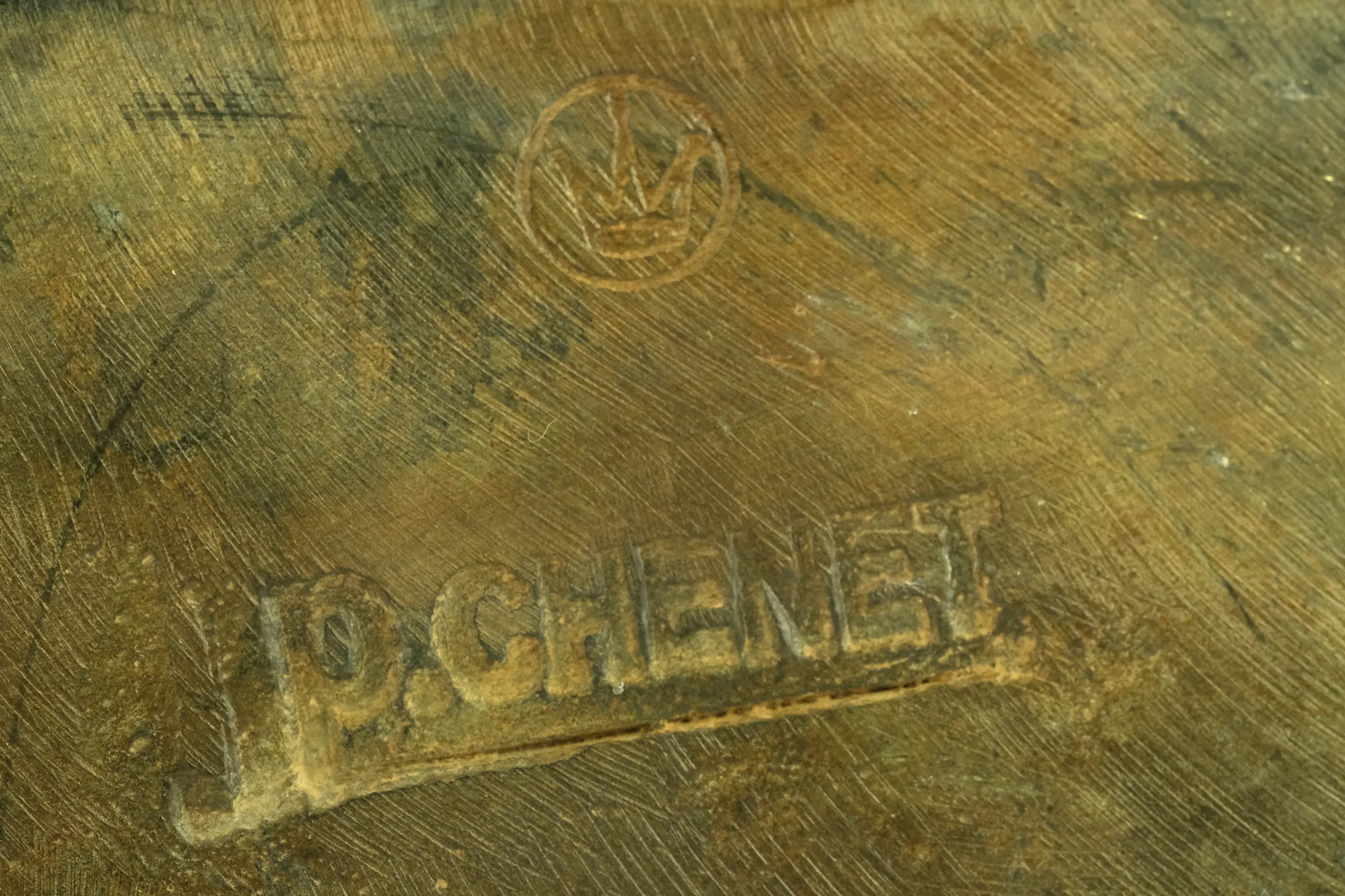 Het is vervaardigd door Pierre Chenet en is gesigneerd aan de onderzijde met 'P. Chenet'. Tevens is het voorzien van een kroontje als merkteken.