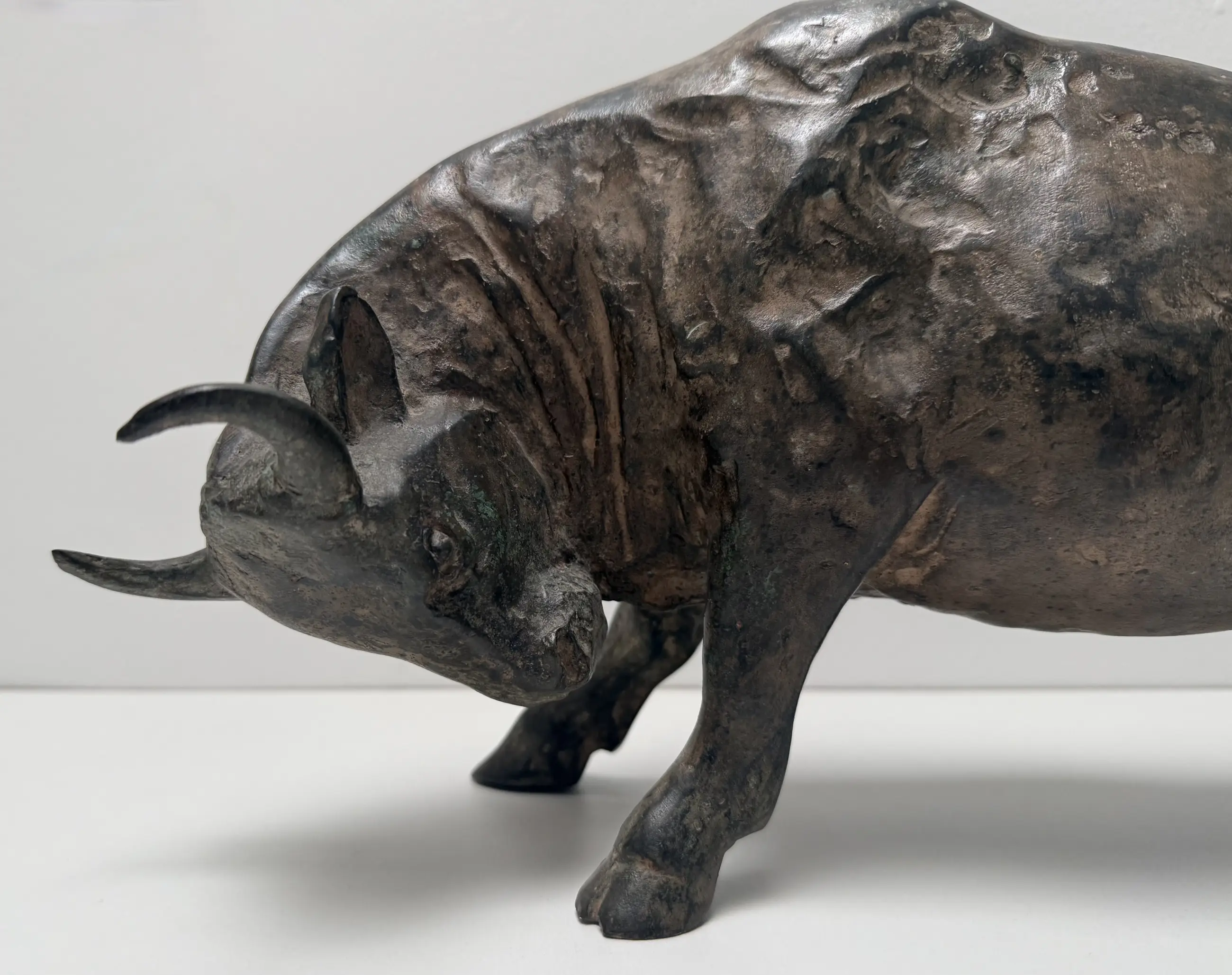 Zeer fraaie stier in aanvalshouding van de hand van Pierre Chenet.