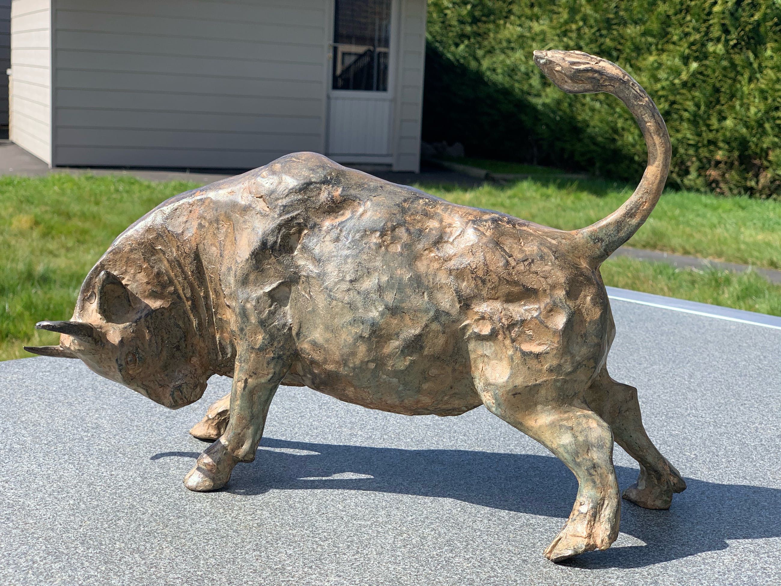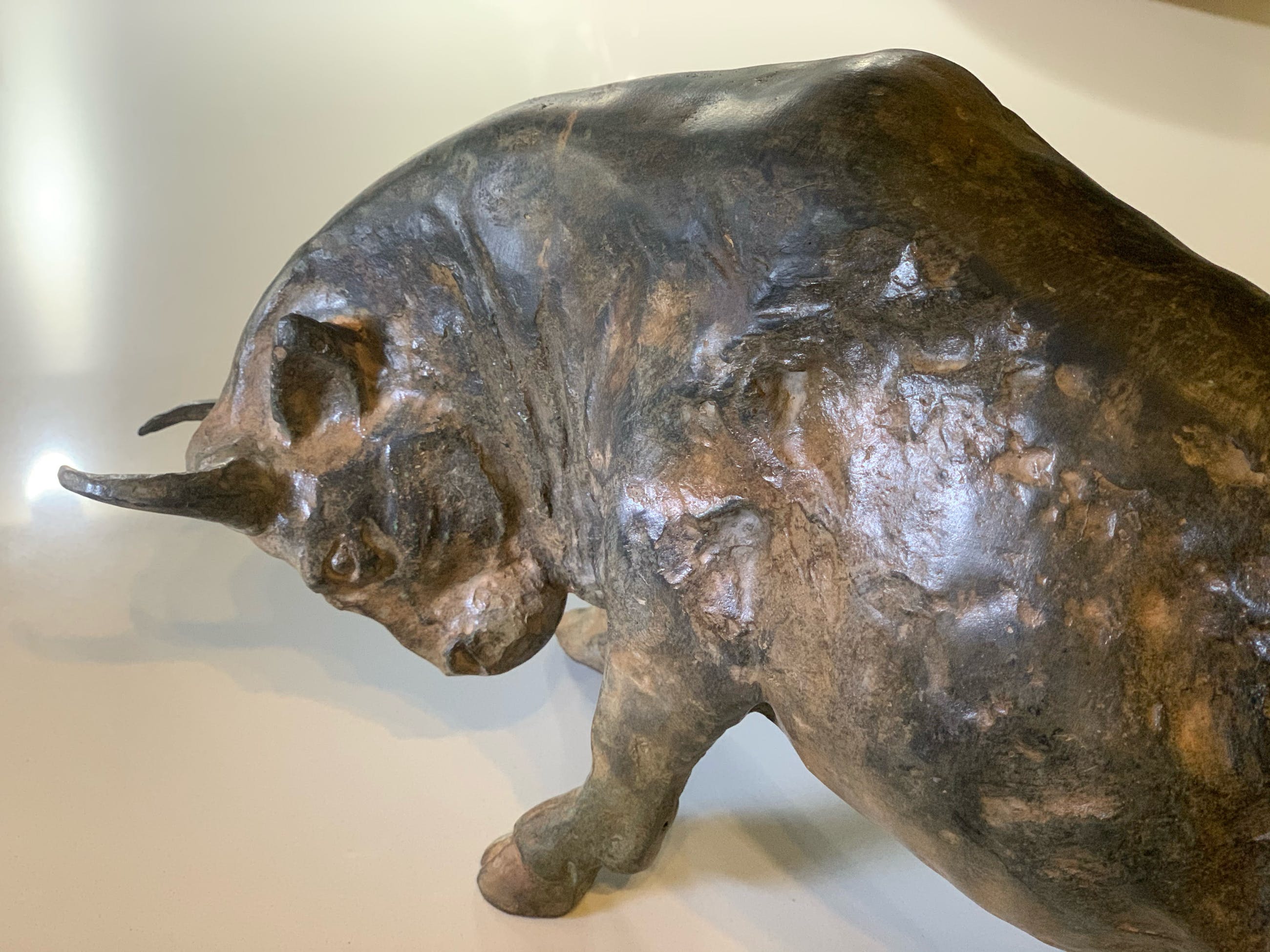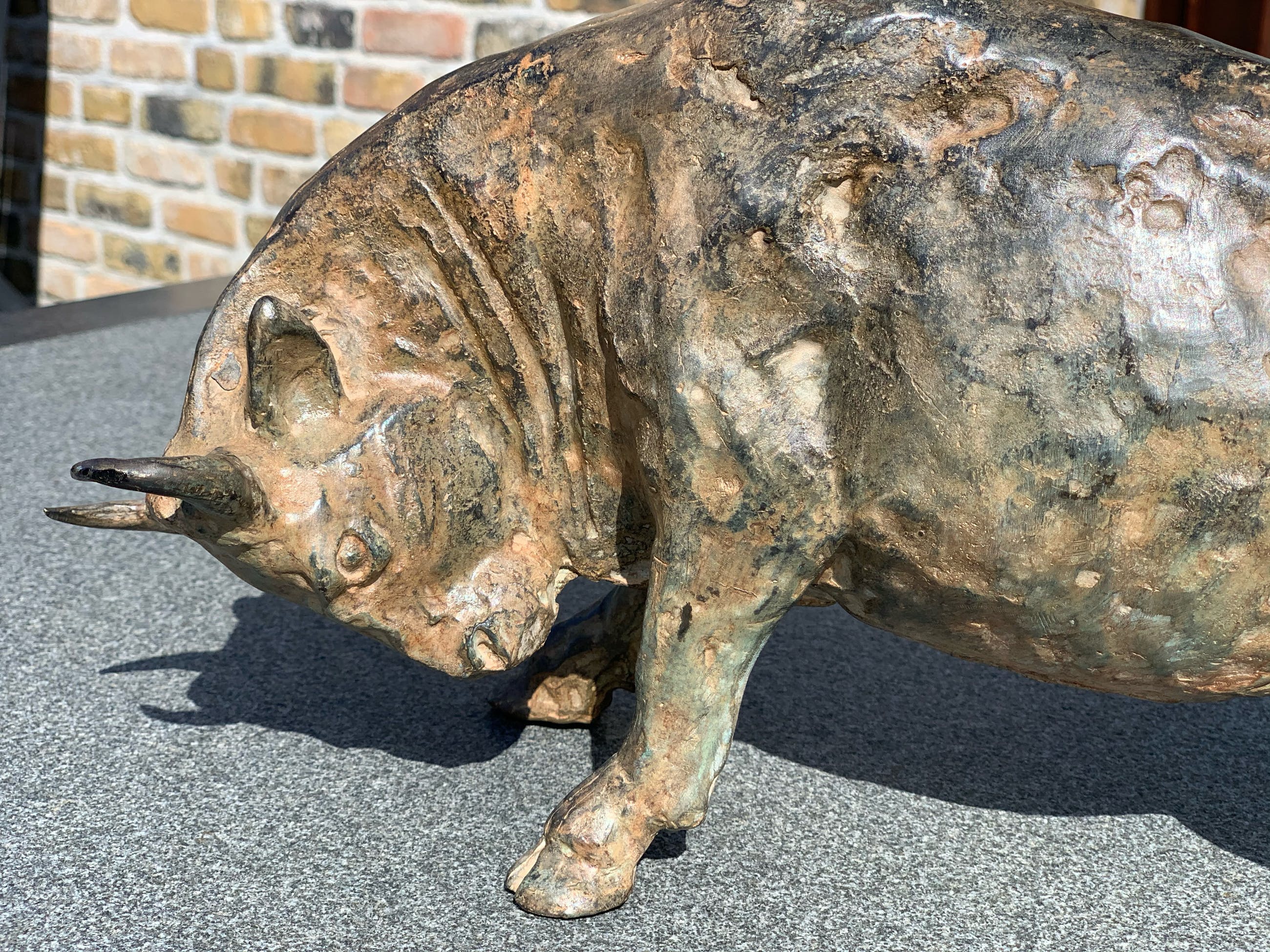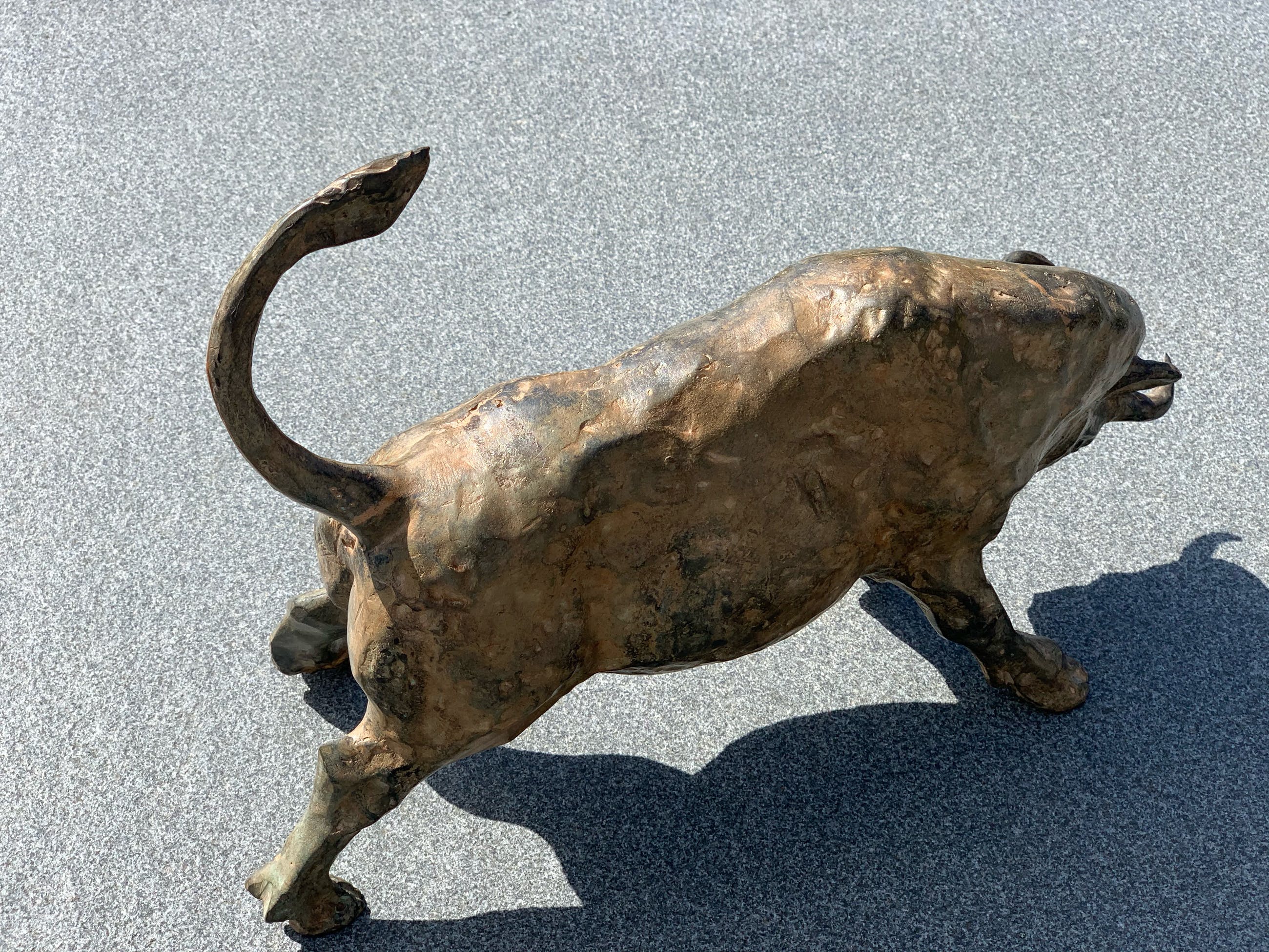 Massief zuur gepatineerd bronzen stier - P. Chenet. Zeer mooi en decoratief beeld. Acid patina - Unieke kleur Naargelang de lichtinval en het soort licht zal de schakering van het brons telkens anders zijn. Past zowel in een rustiek als modern interieur. Dit exemplaar heeft een zeer mooie speciale kleur/patine. Het brons is gesigneerd P CHENET met bronsstempel (kroontje van gieterij) Bekijk de foto’s, ze maken deel uit van de beschrijving.