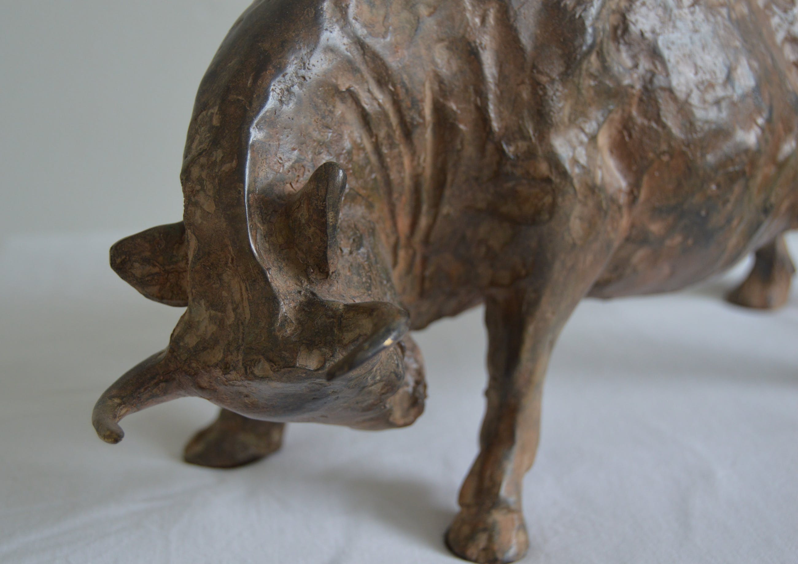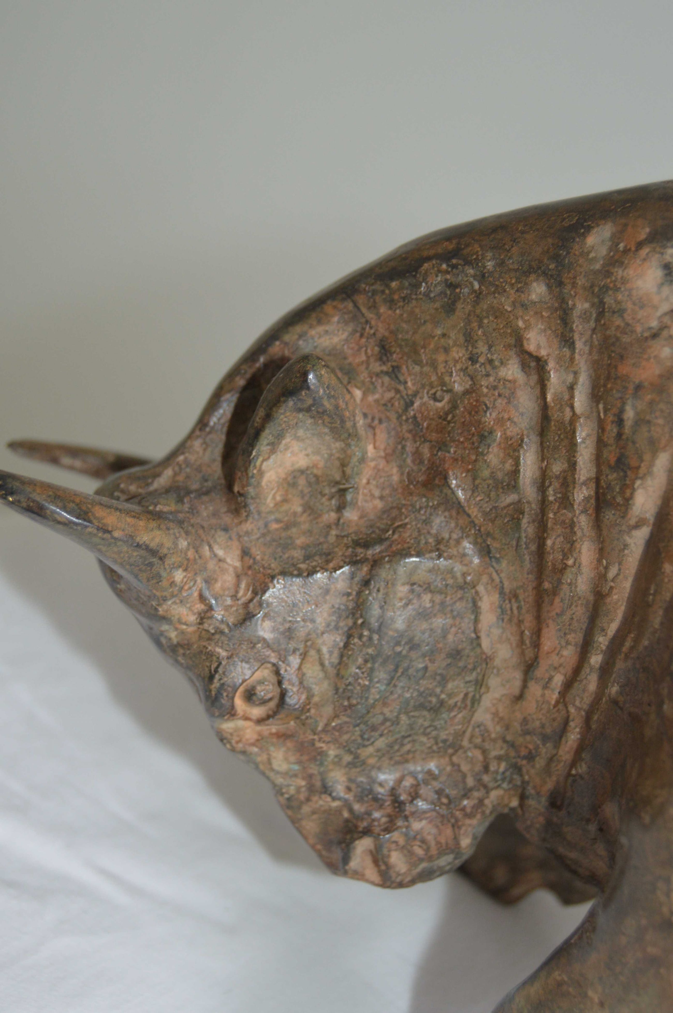 Prachtige aanvallende stier vervaardigd in volledig massief brons door de bekende Franse beeldende kunstenaar Pierre Chenet. Zeer gedetailleerd. Tevens gesigneerd door de kunstenaar. Het beeld is gemaakt in de 20e eeuw, jaren ' 80. In uitstekende staat. Het zal verzekerd en aangetekend verzonden worden.