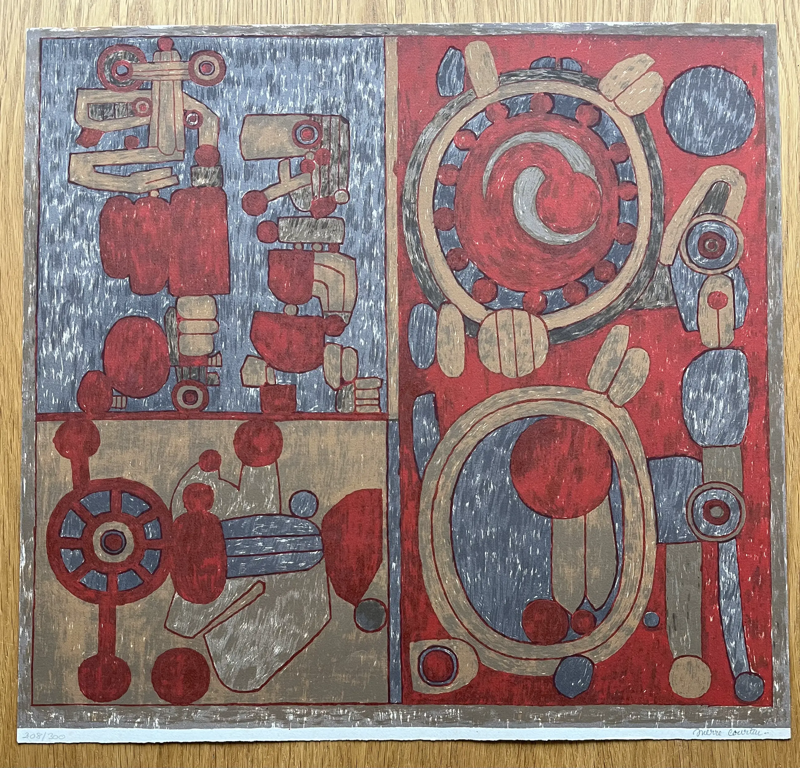 Karakteristiek werk van de Franse kunstenaar Pierre Courtin. Litho op Arches papier, met potlood gesigneerd en genummerd (208/300). In goede conditie.