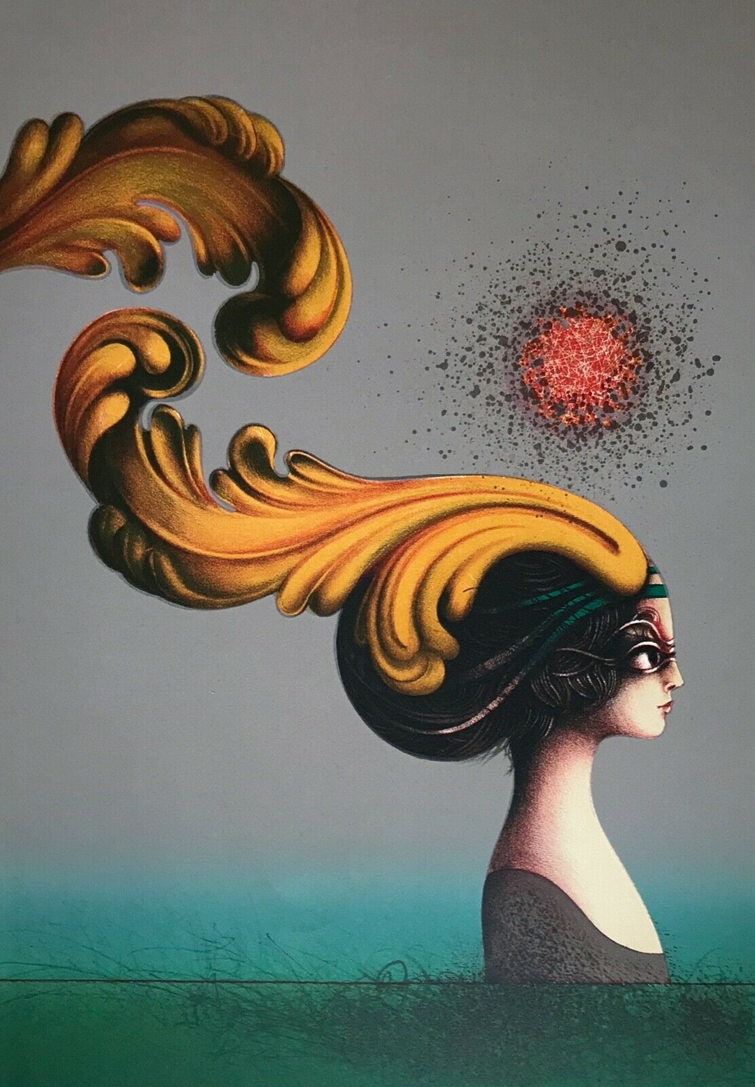 Zeldzame, originele kleuren lithografie, handgesigneerd,