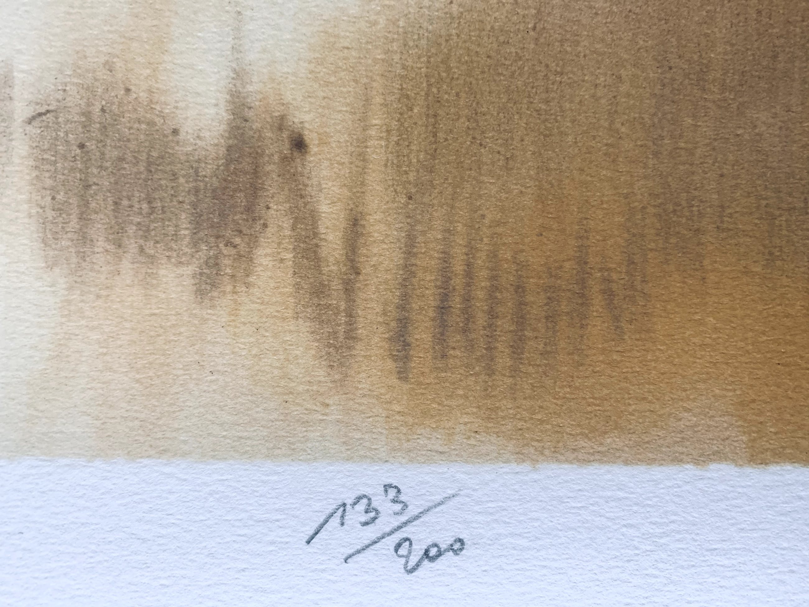 Conditie: uitstekend. Klein scheurtje onderkant vel, zie foto. Oplage: 200. Nummer 133. Nummers op de foto kunnen afwijken. Papiersoort: Arches. Afmetingen: Afbeelding: 47 x 39 cm. Wordt verzekerd verzonden in een stevige kartonnen koker. Gecombineerde zending t/m 4 lithografieën.