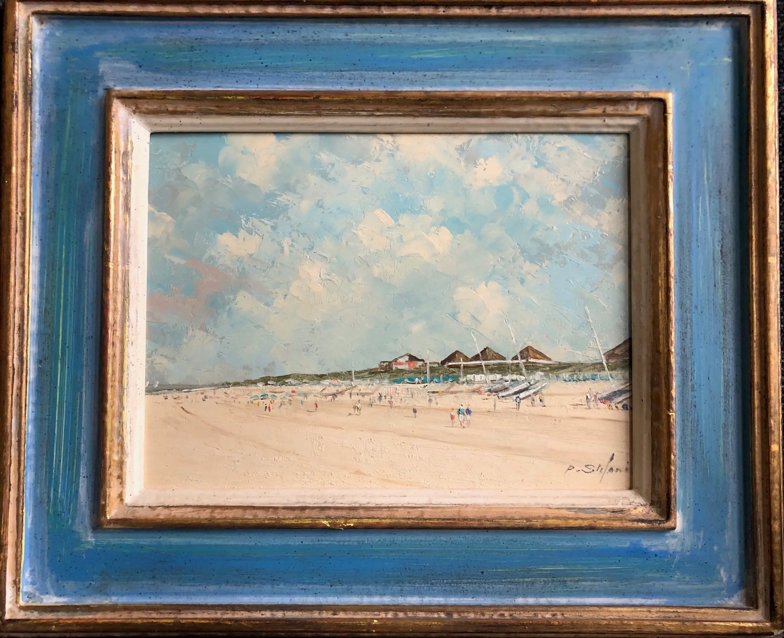 Prachtig tafereel met strandwandelaars in het voor- of najaar, in lichtlagunenblauw.