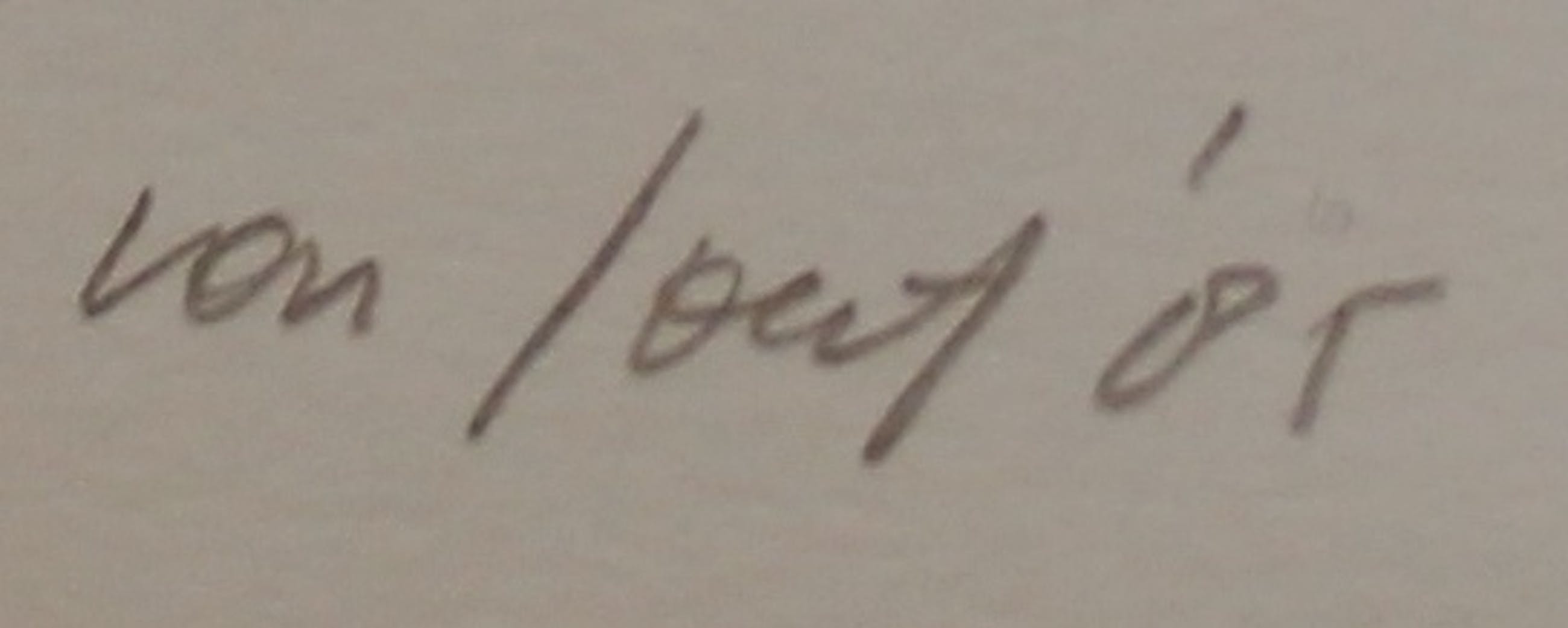In goede staat. Links bovenin de hoek zit een kleine vouw. Goed ingelijst, valt dit in de lijst/onder de passepartout.